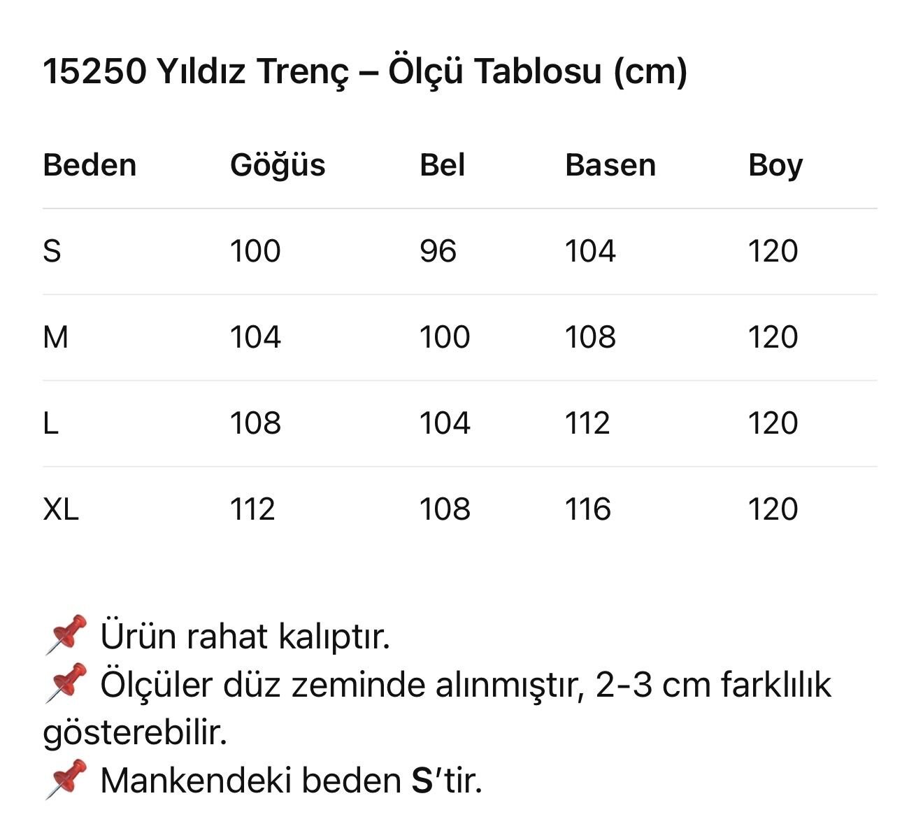 Ürünümüz tam kalıptır. Manken üzerindeki S bedendir. (Manken kilo 64, boy 167 cm)