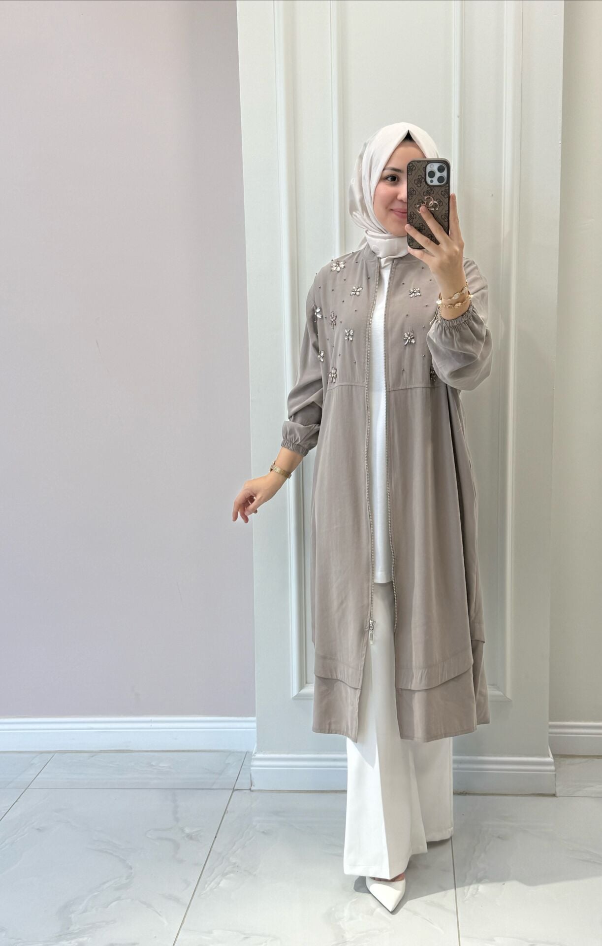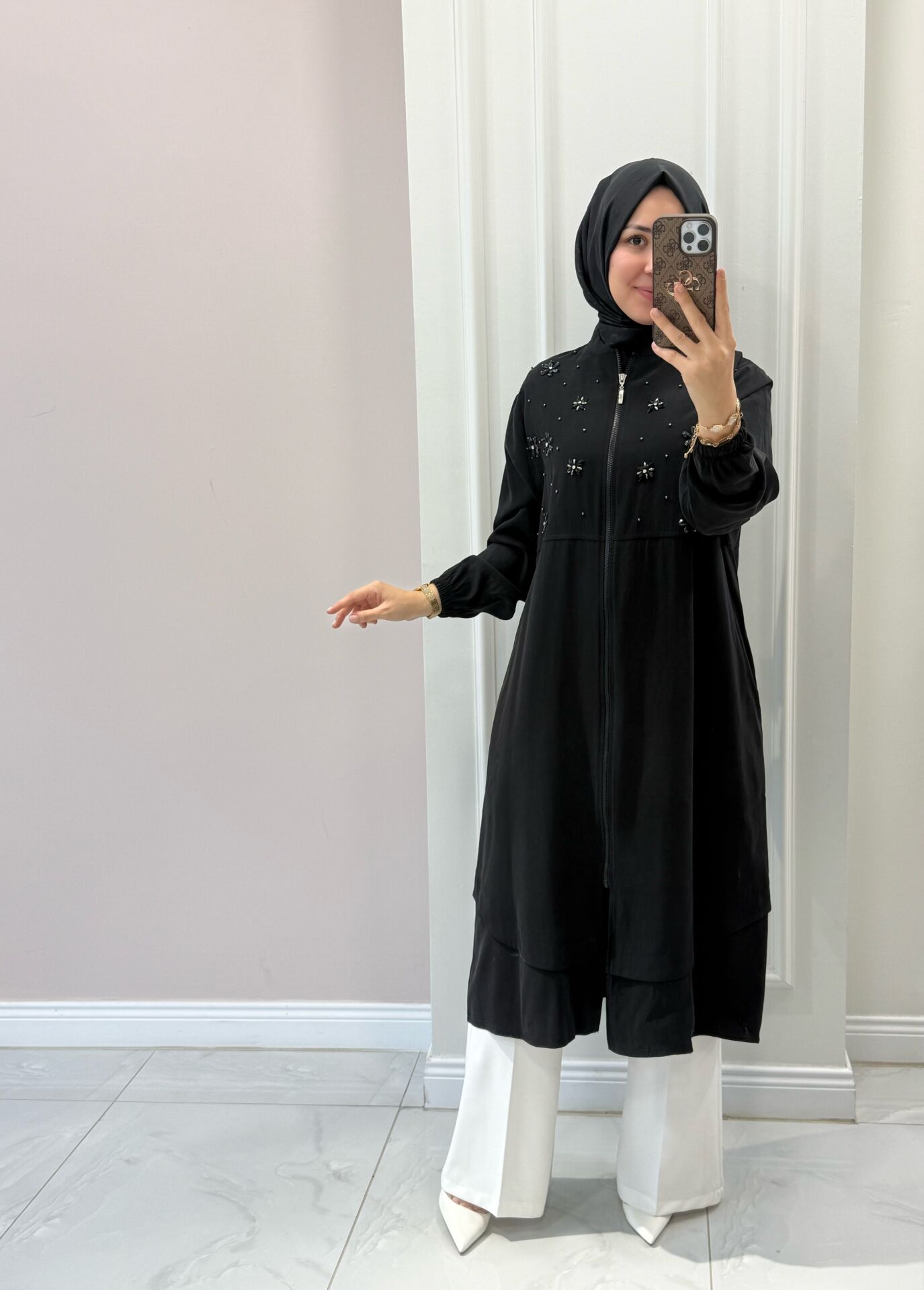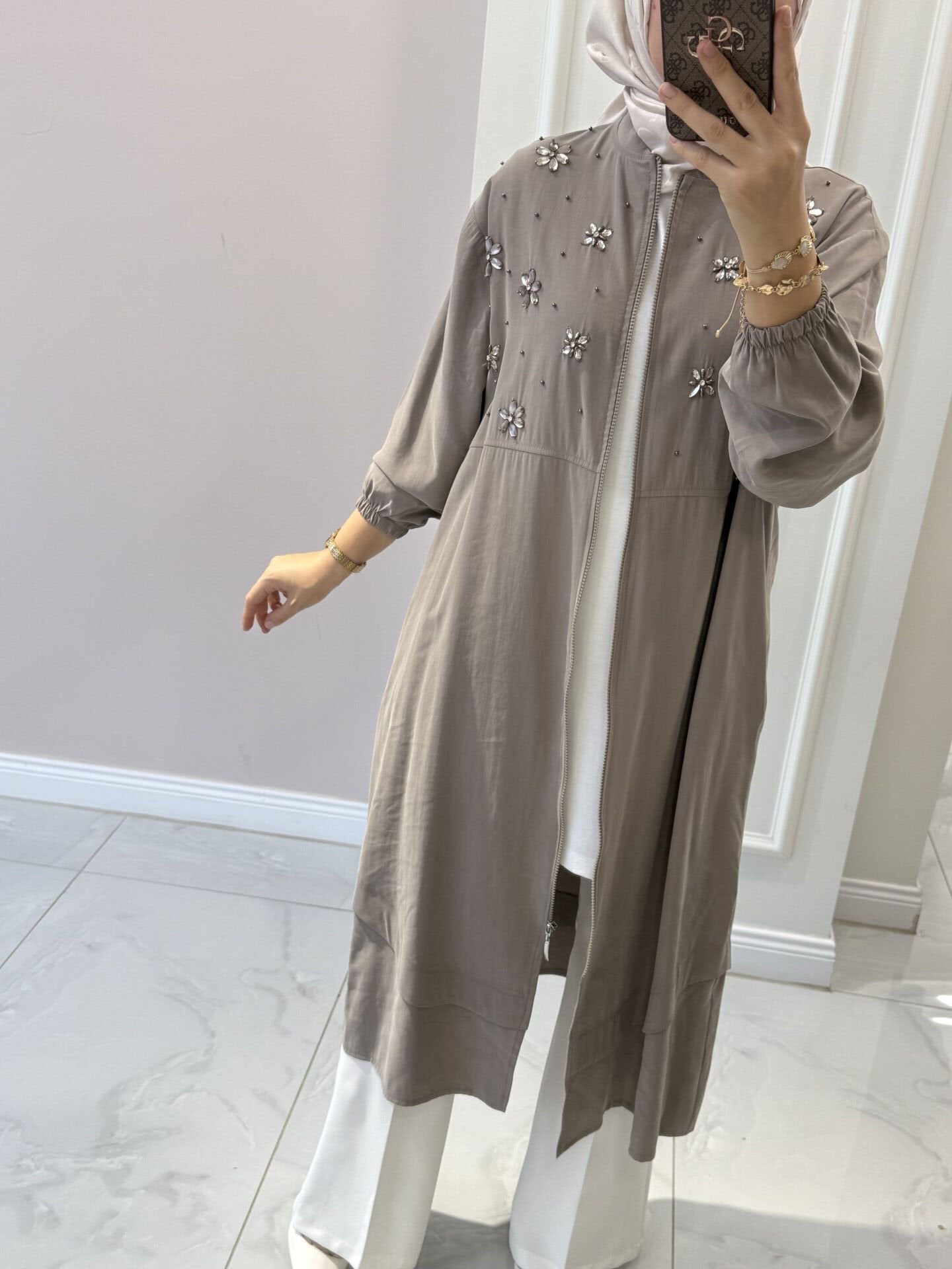 Manken üzerindeki 40 bedendir. Normalde giydiğiniz bedenden bir beden küçük tercih edebilirsiniz.