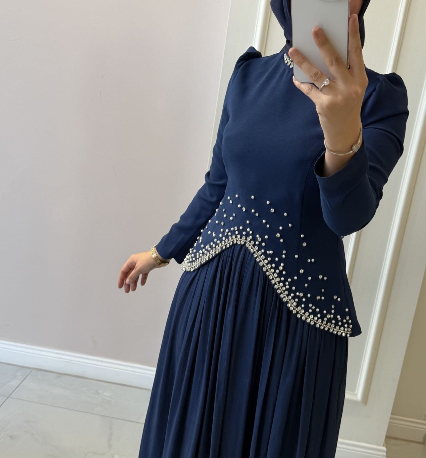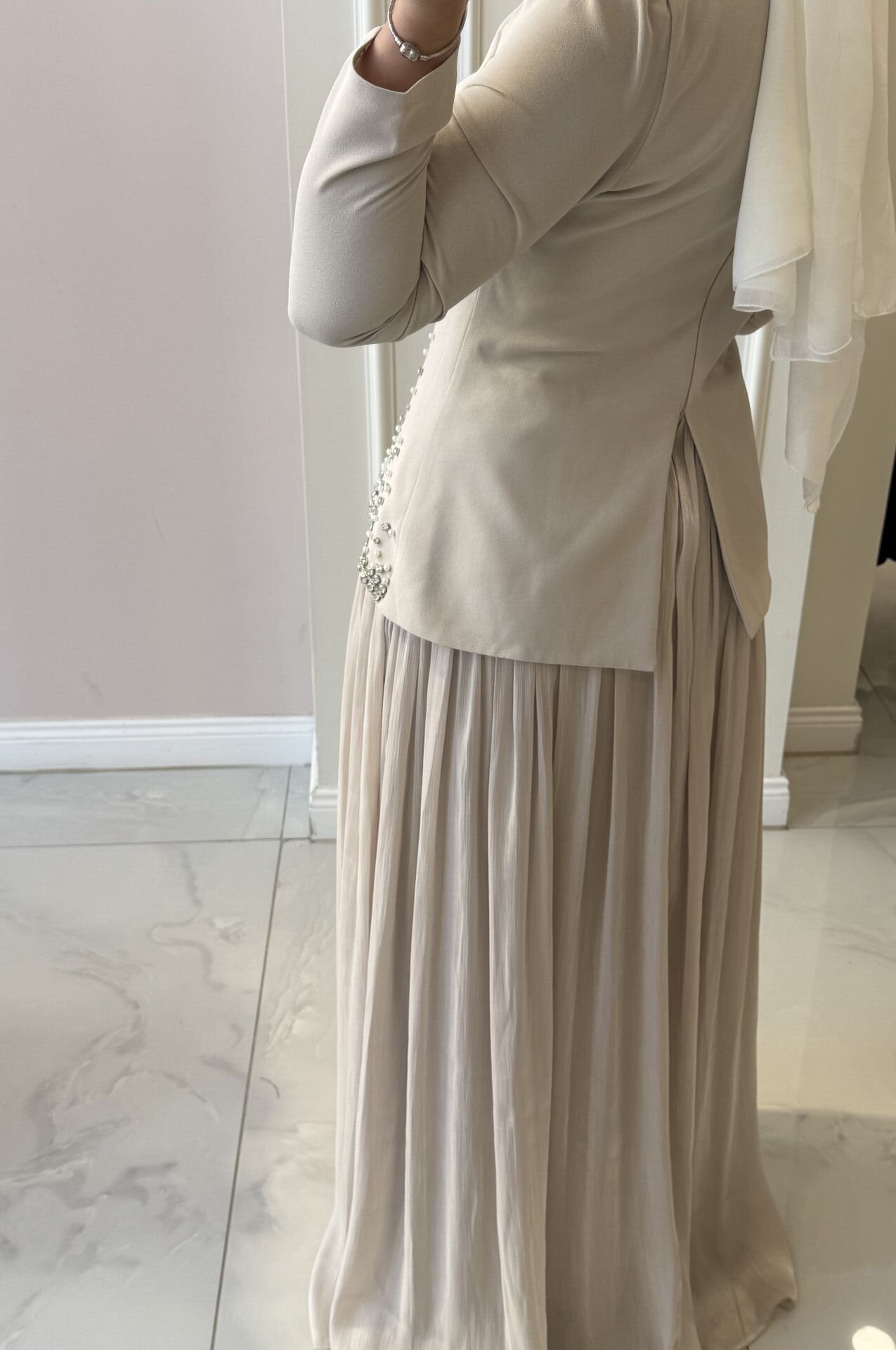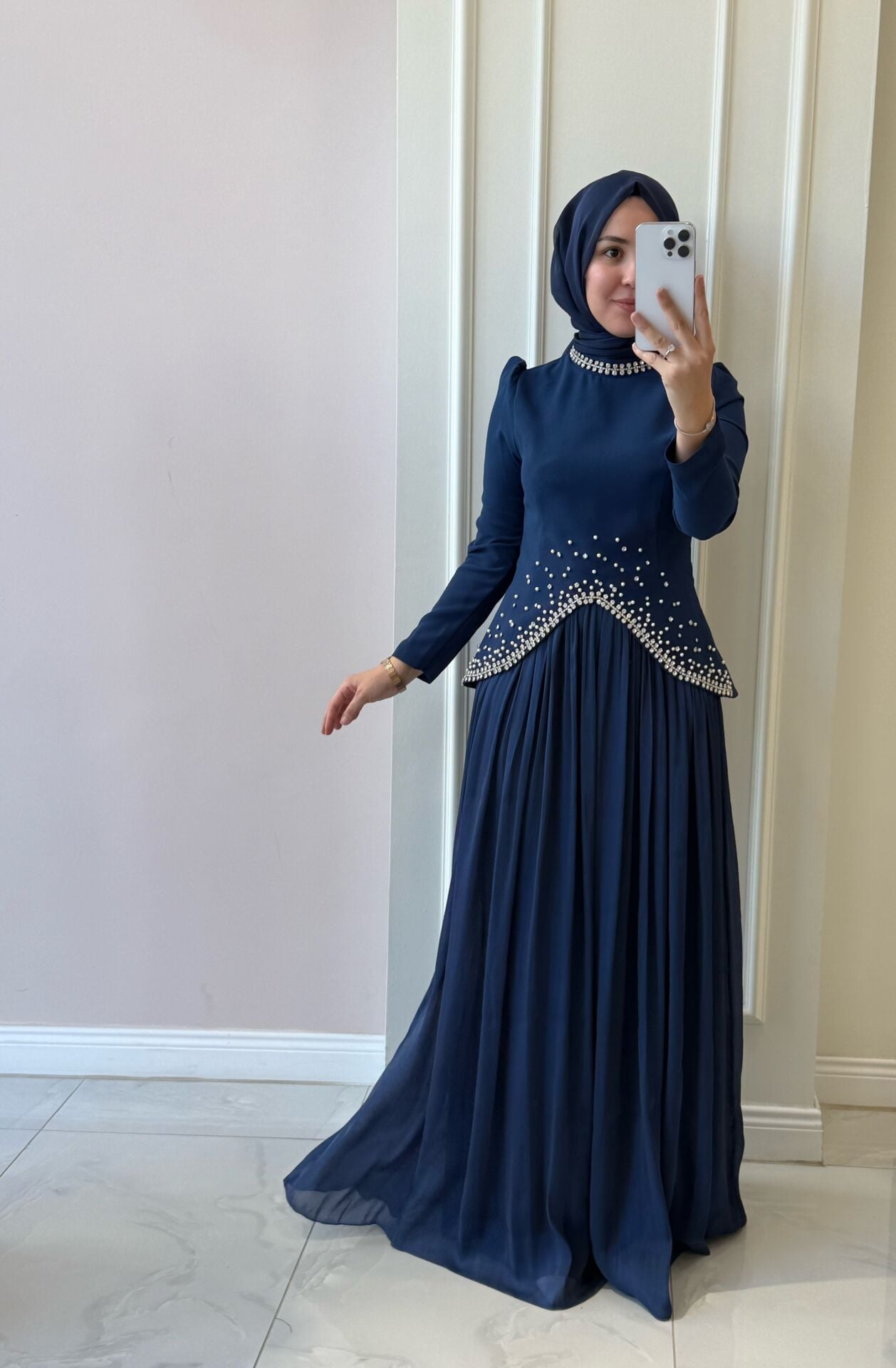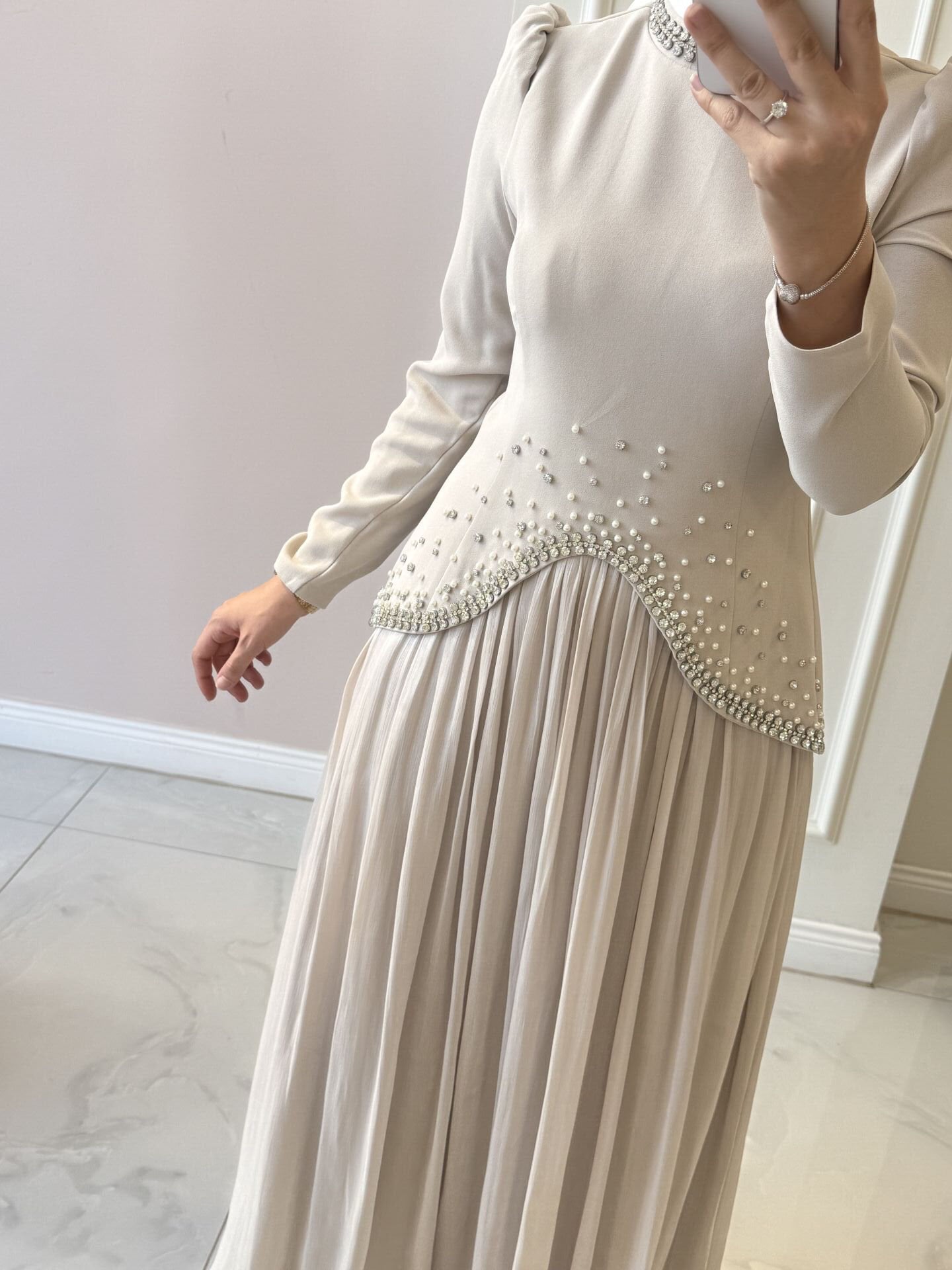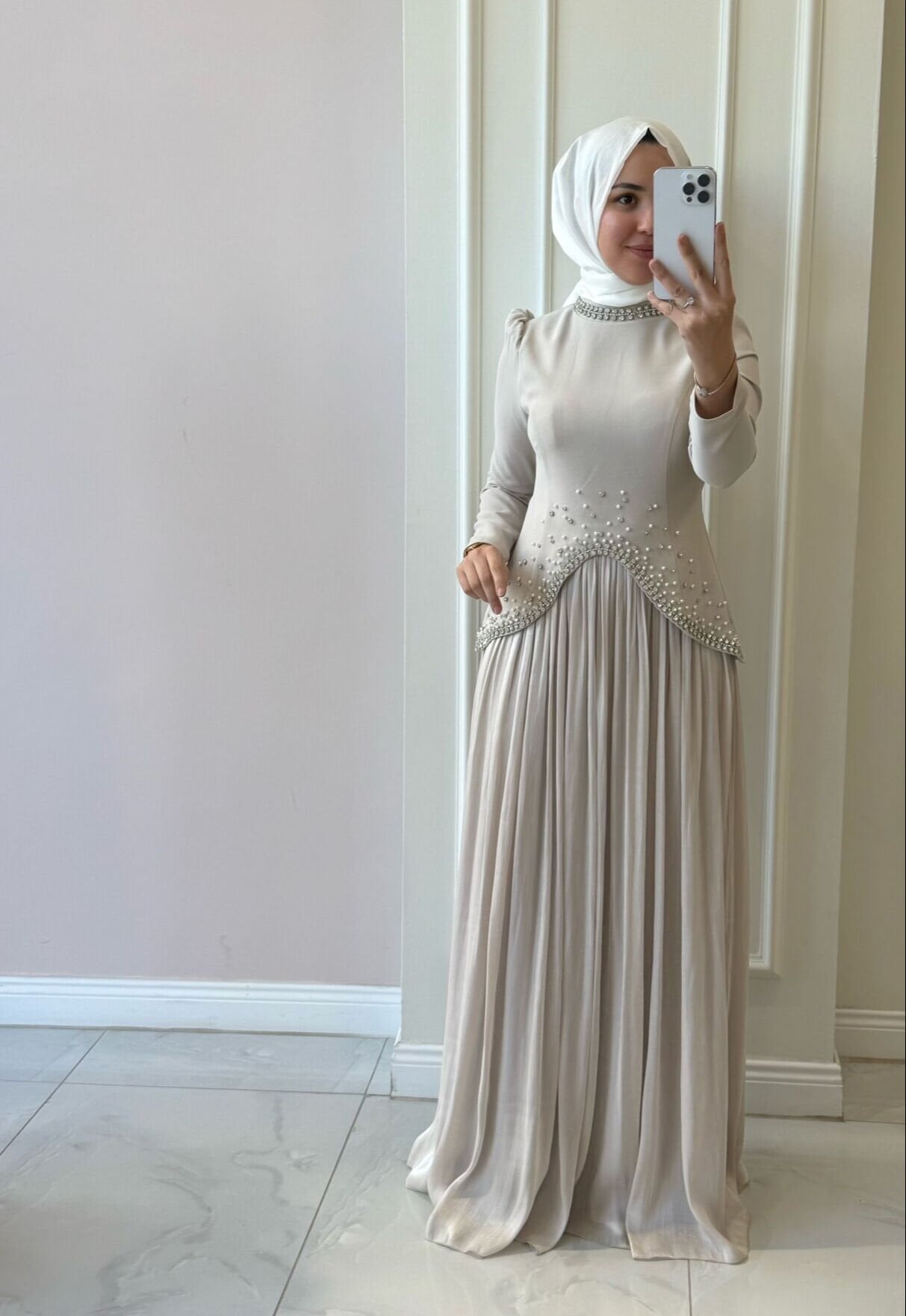 Üst kısmı krep kumaştır. Alt kısmı şifon kumaştır içi astarlıdır.