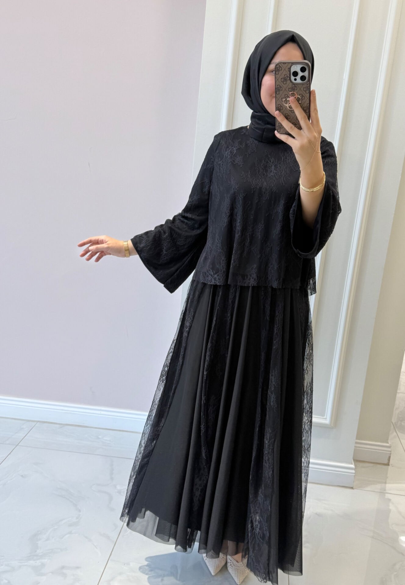 Tül Dantel kumaştır. İçi astarlıdır. Etek beli lastiklidir.