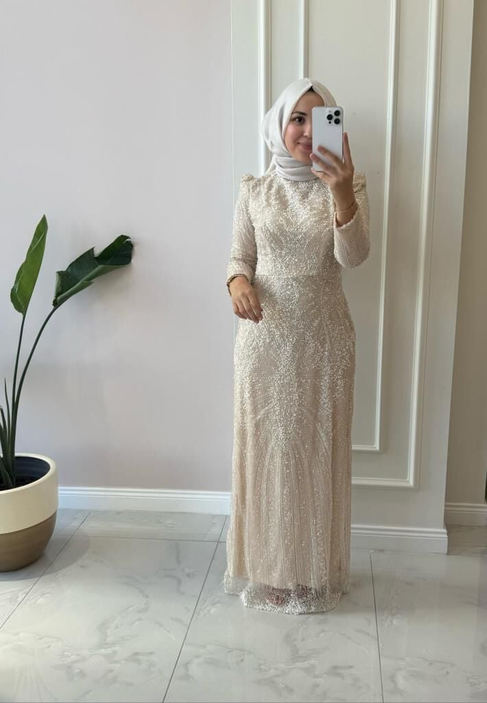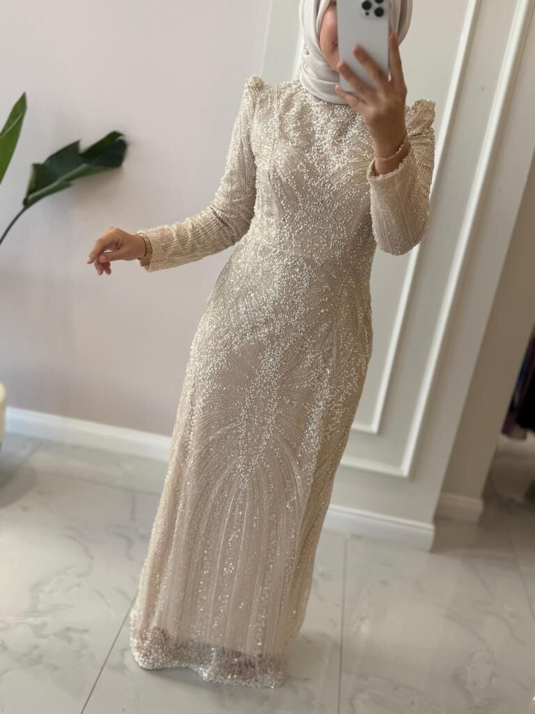 Ürünümüzün inci ve taş işlemeli tül kumaştır. İçi astarlıdır.