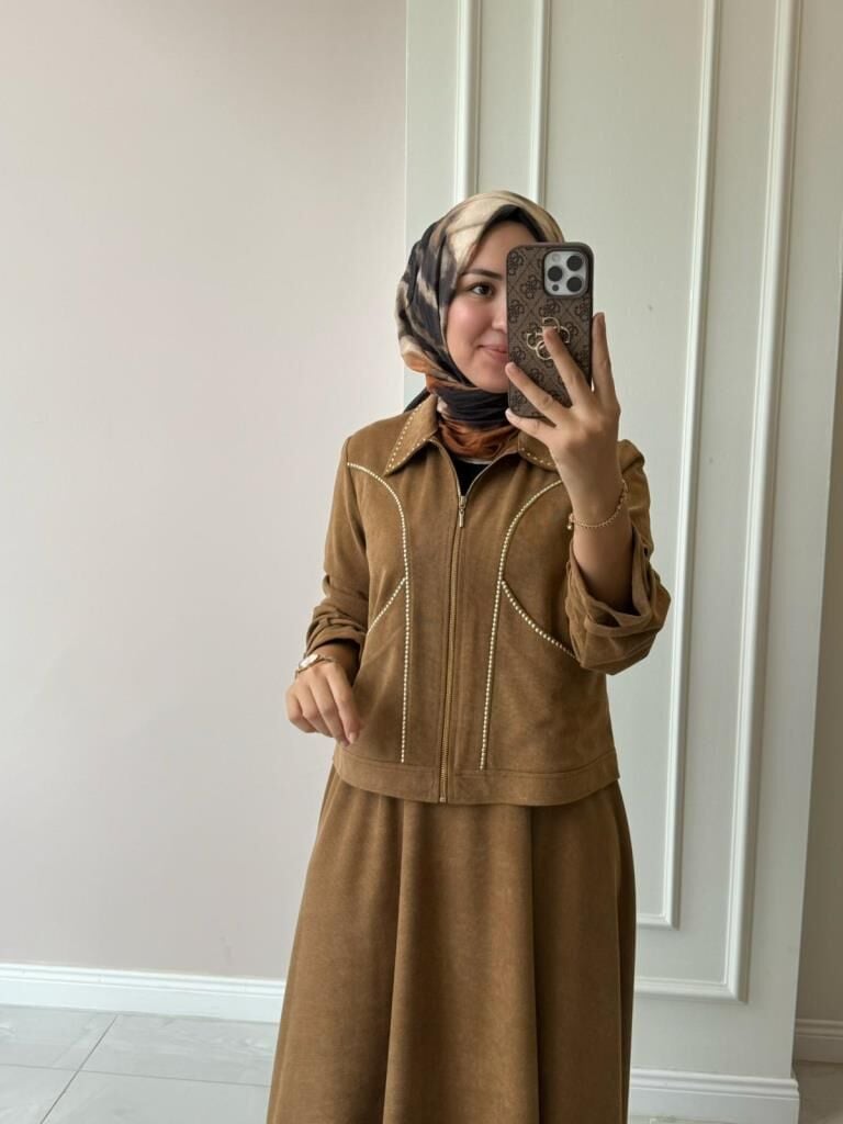 Ürünümüz tam kalıptır. Manken üzerindeki 38 bedendir.