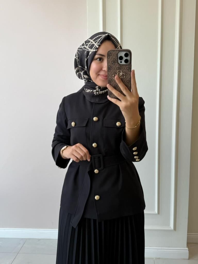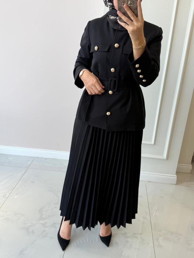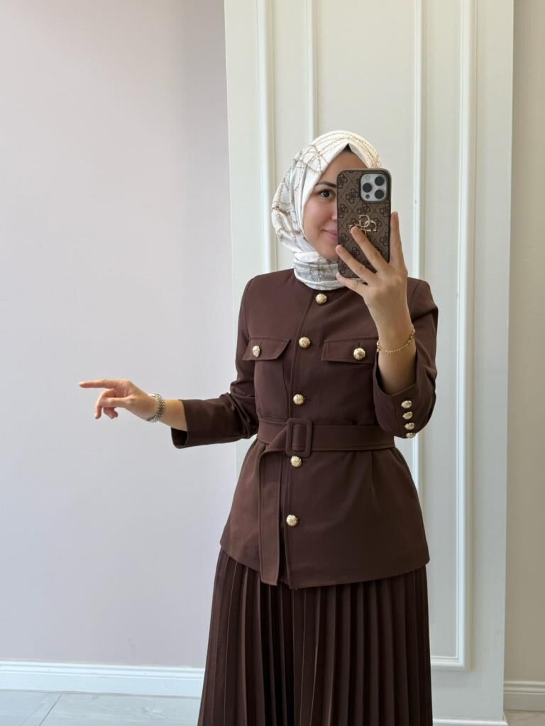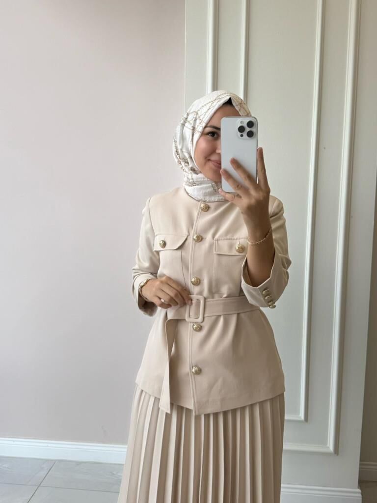 Ceketin içi astarlıdır. Etek beli lastiklidir.