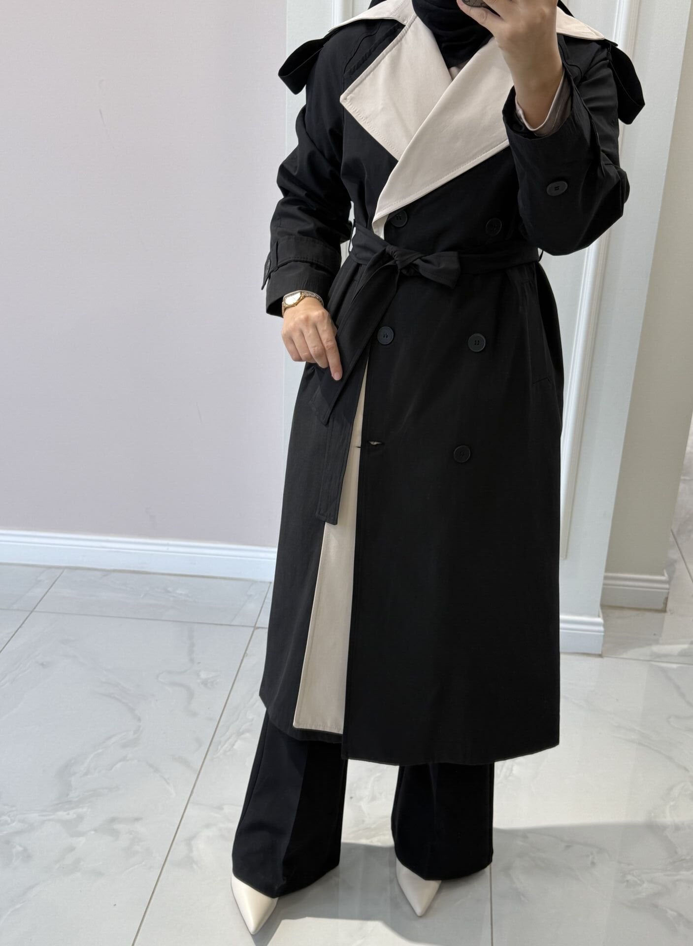 32445 Çift Renkli Trenç