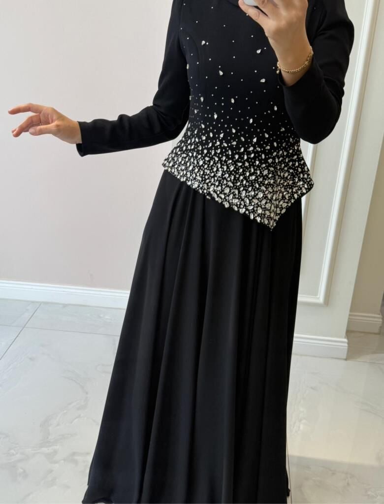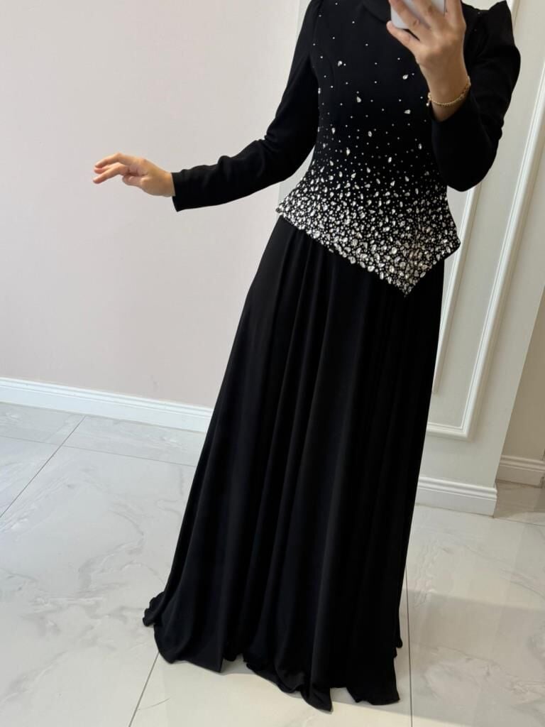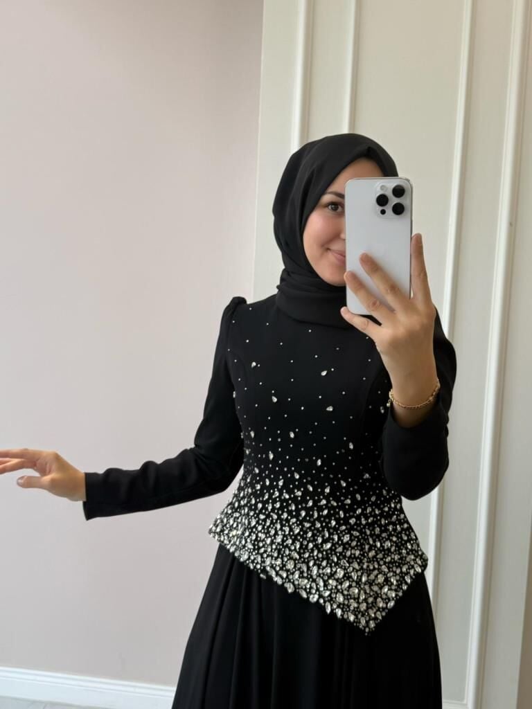 Ürünümüzün üst kısmı krep kumaş, etek kısmı içi astarlı şifon kumaştır.