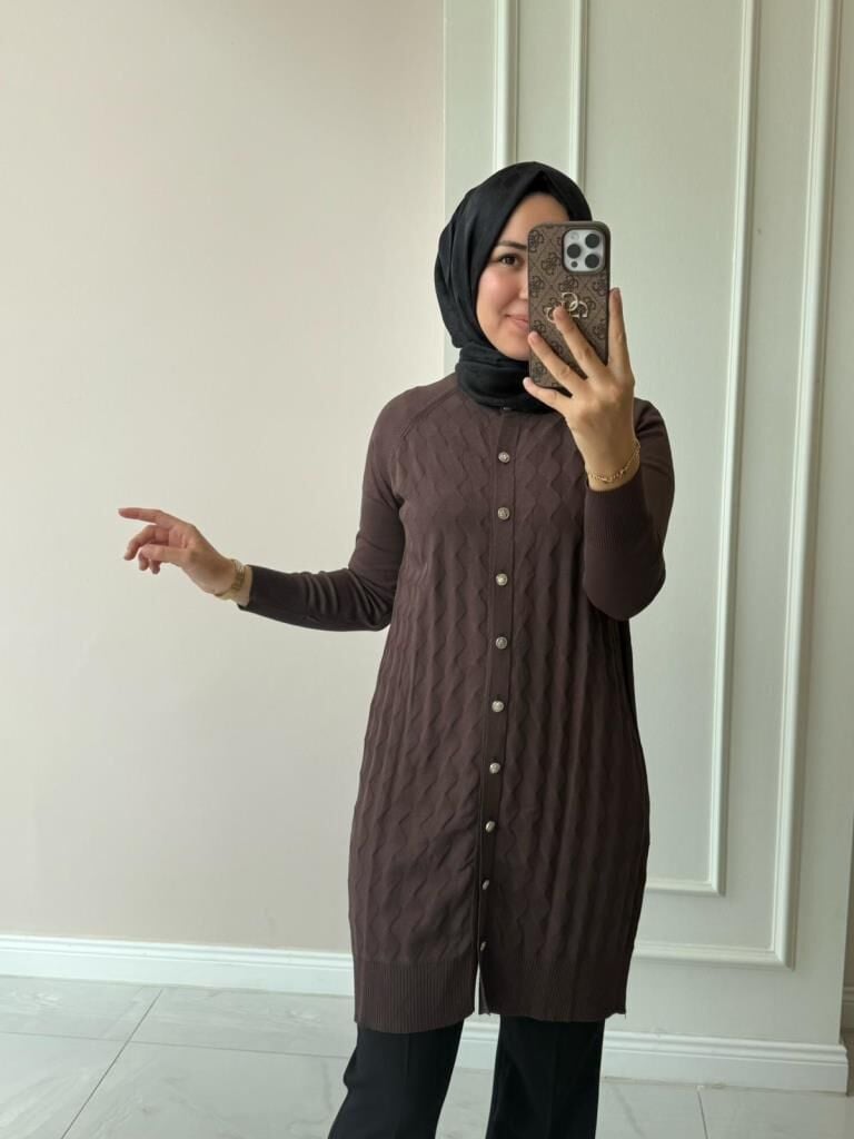 Kadın Nuss 305 Baklava Desen Düğmeli Hırka