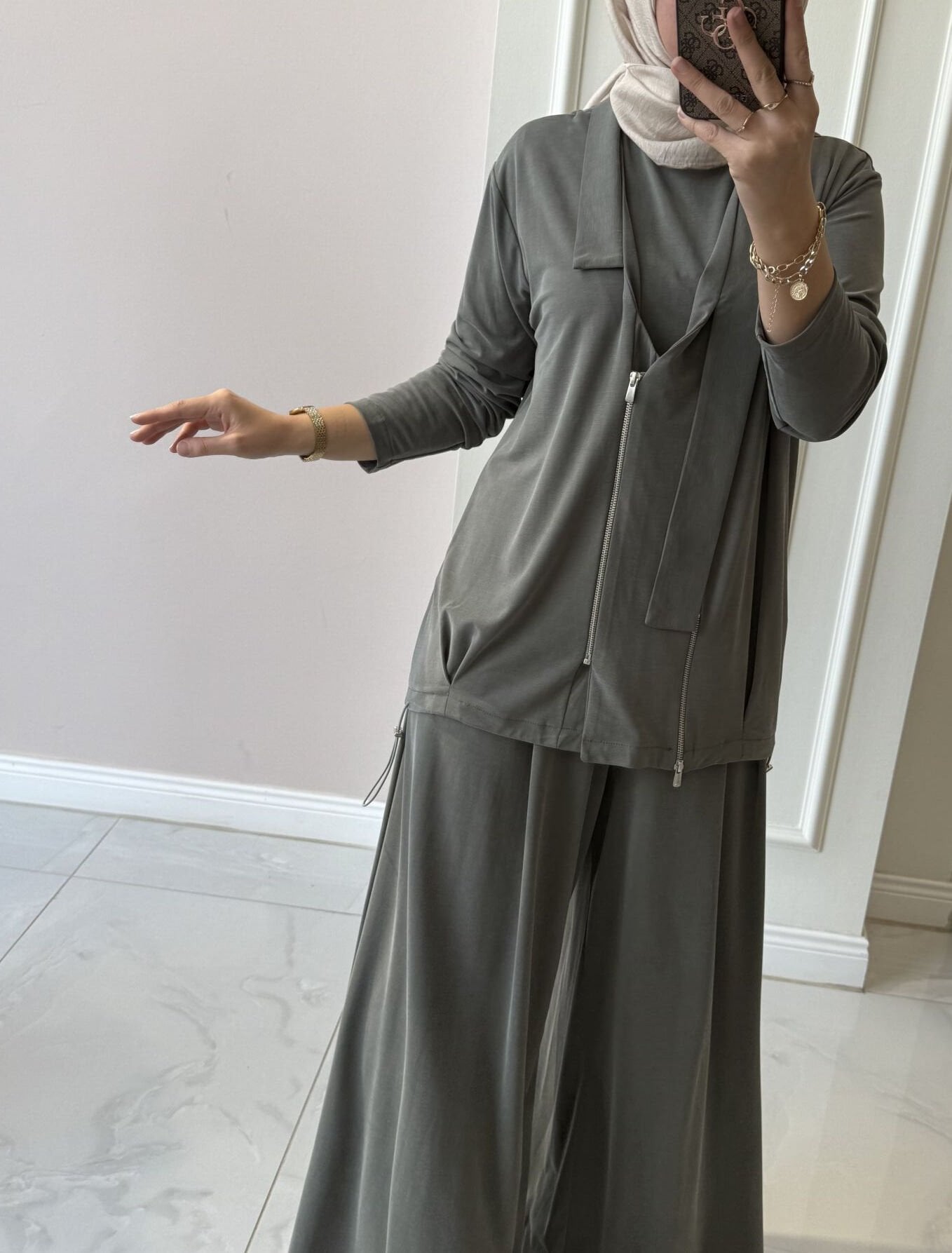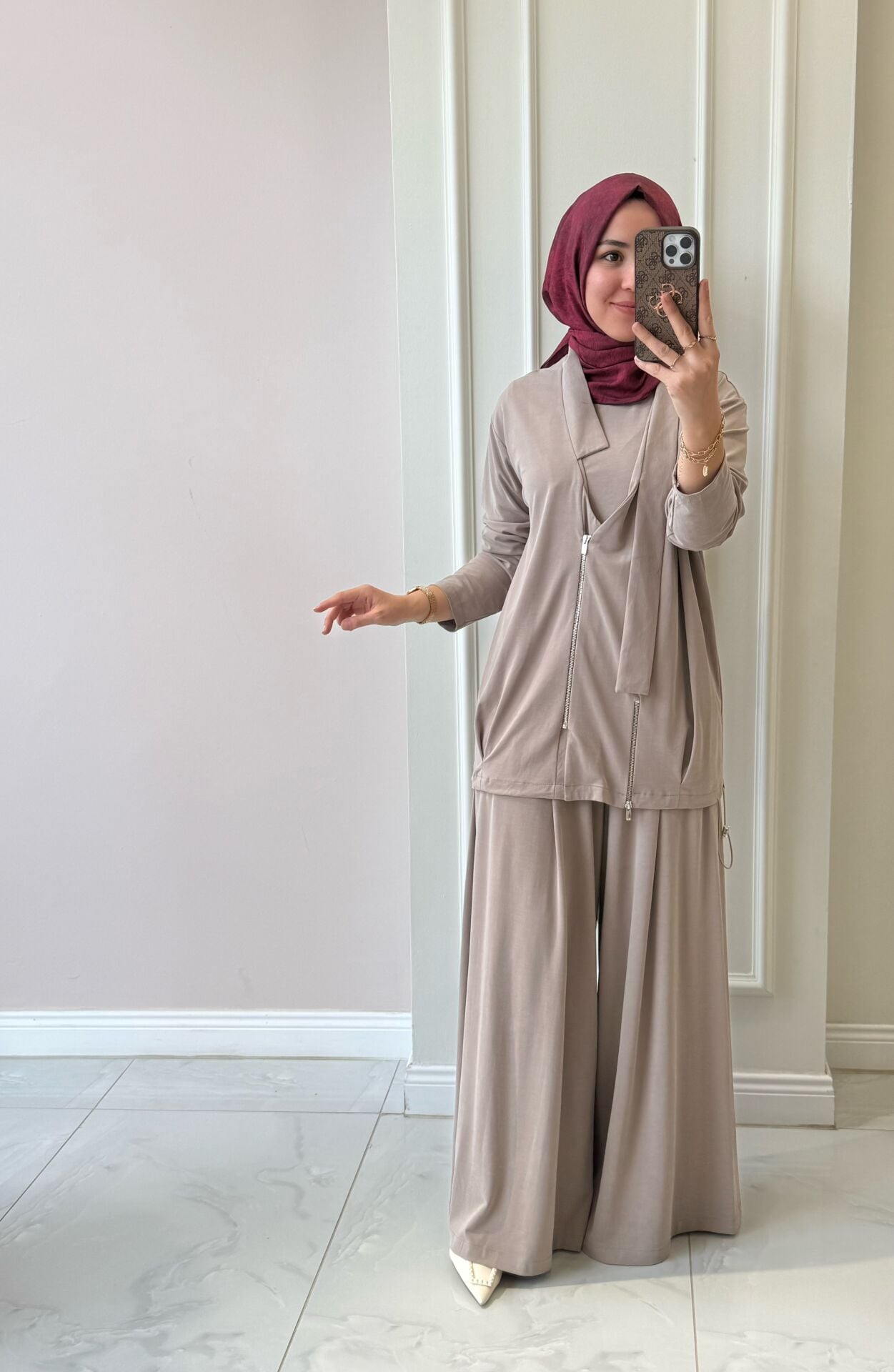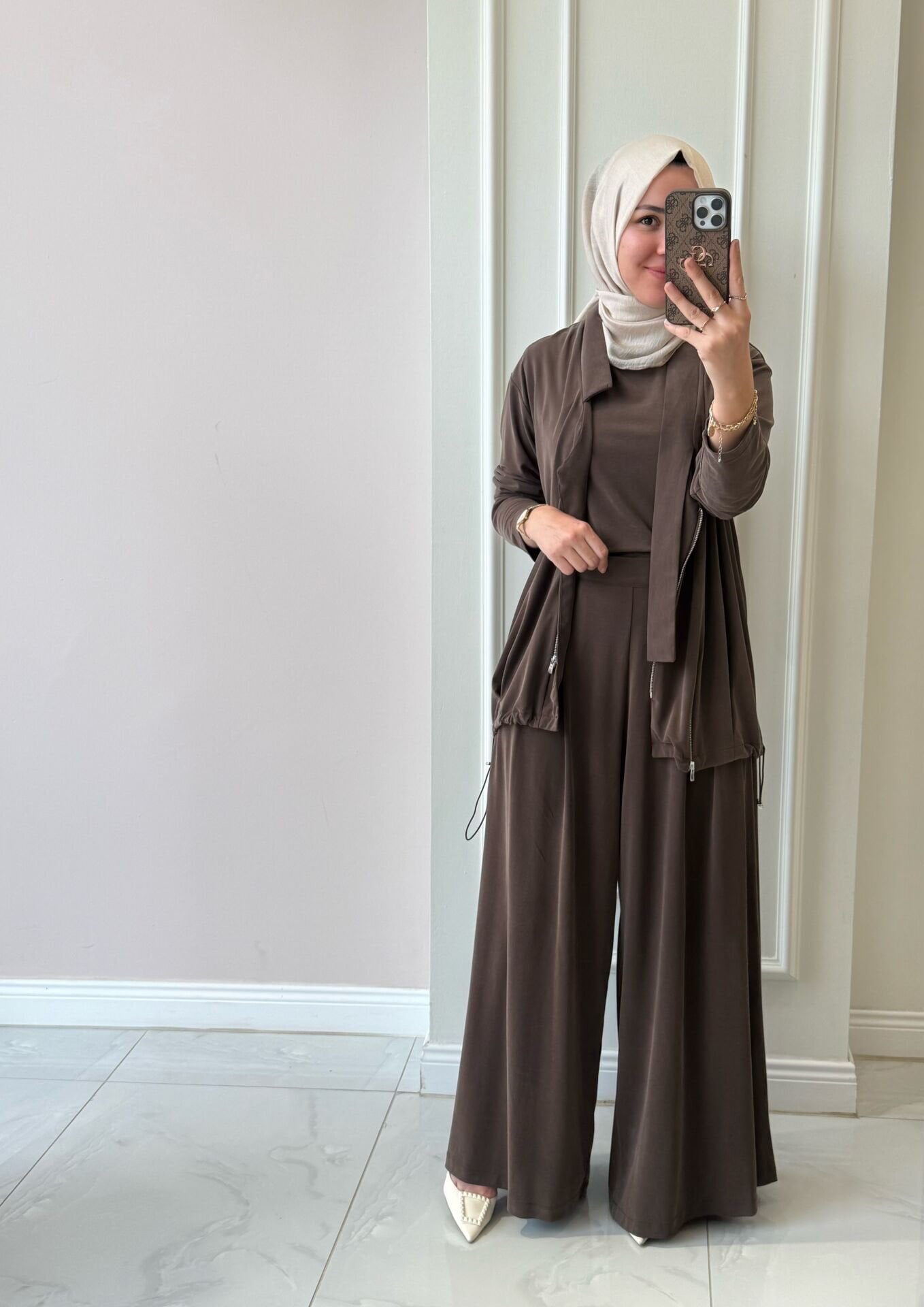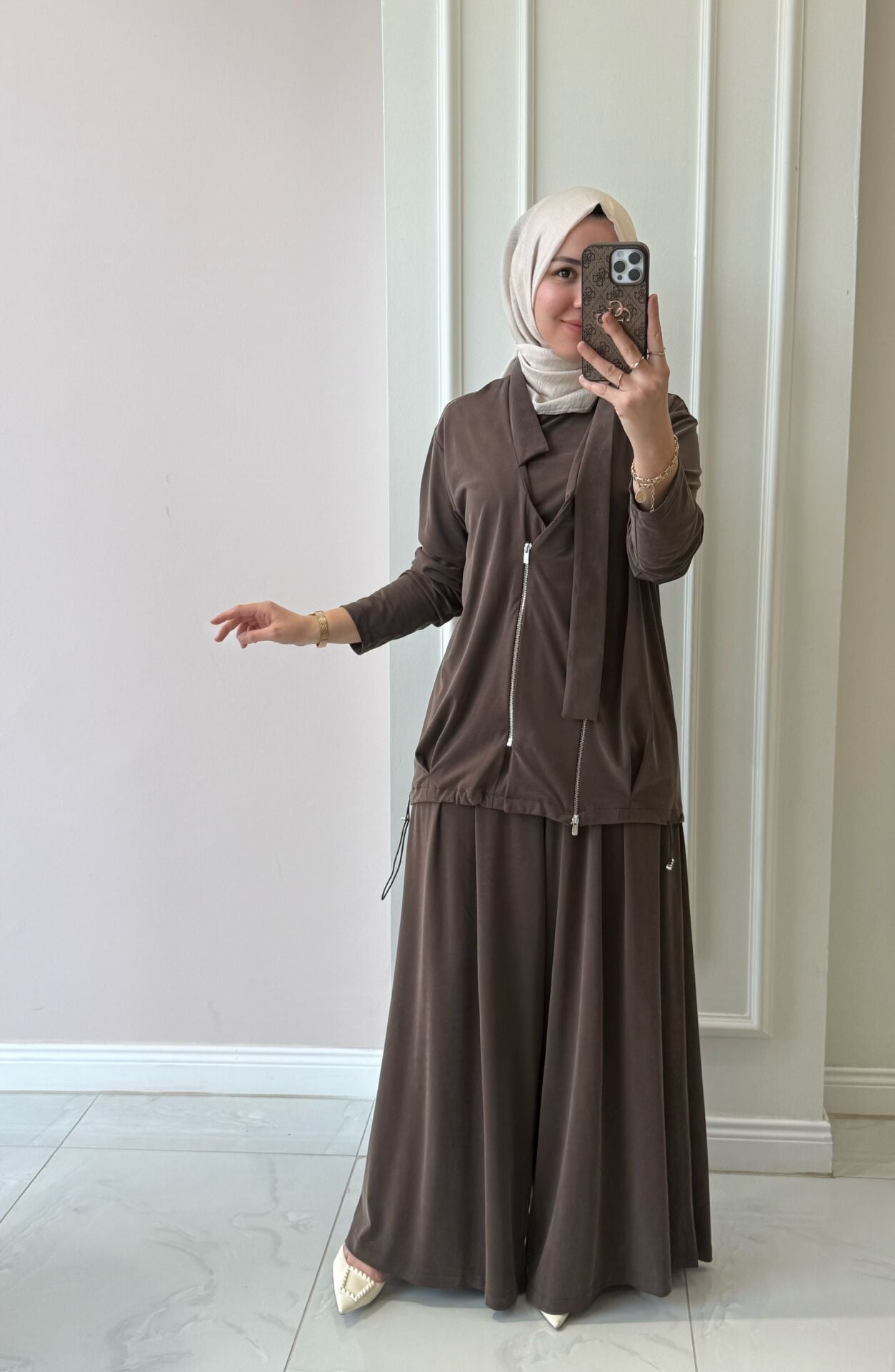 Ürünümüz 3 parçadır. İçlik sıfır koldur. İçlik boyu 53 cm, Hırka boyu 73 cm'dir.
