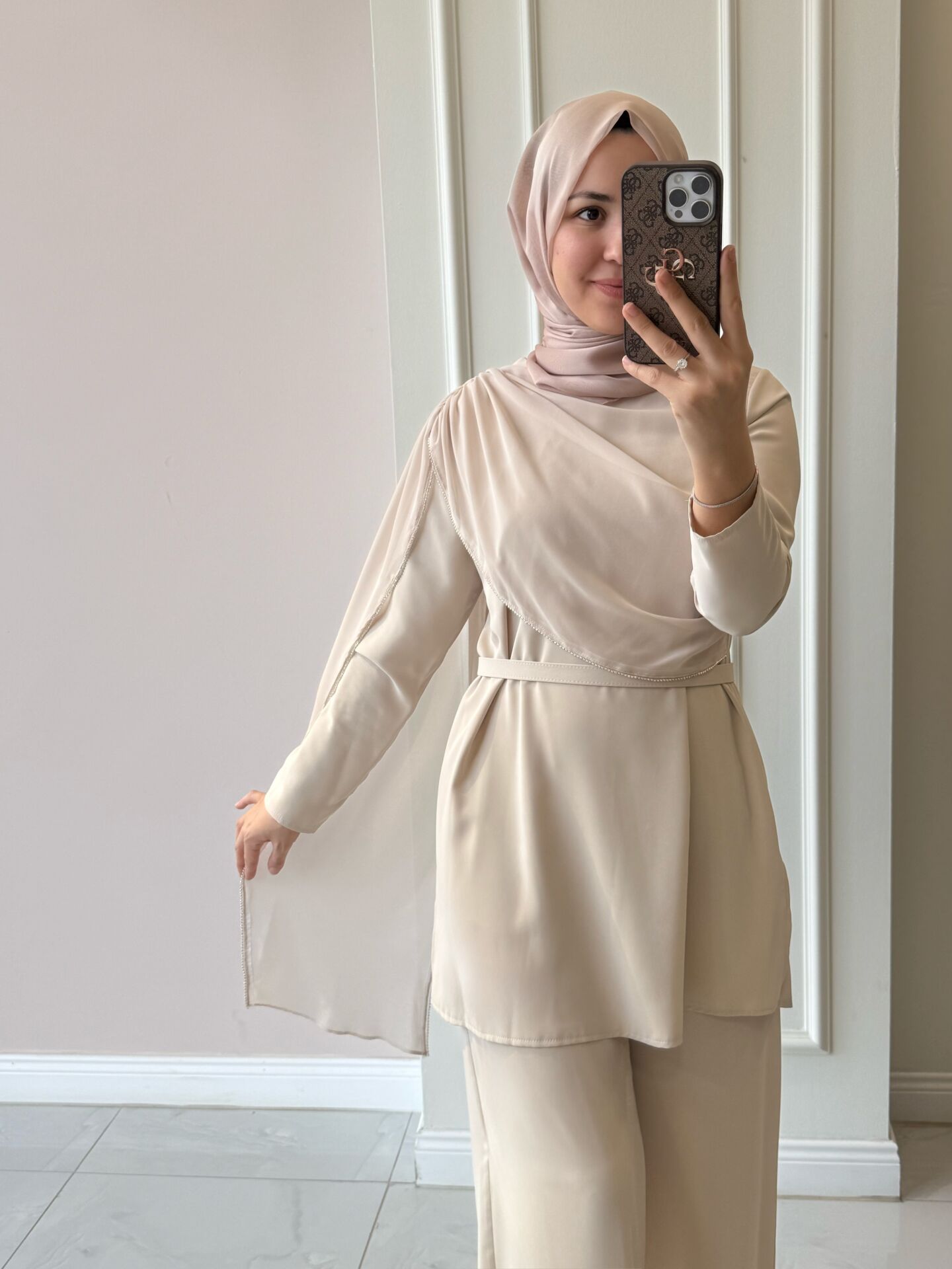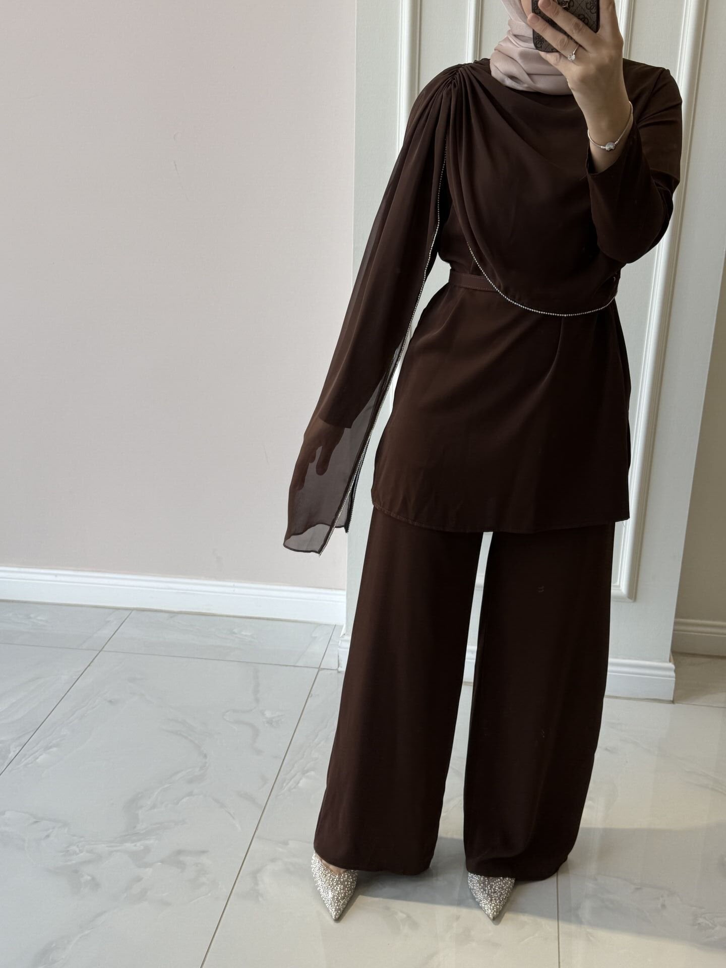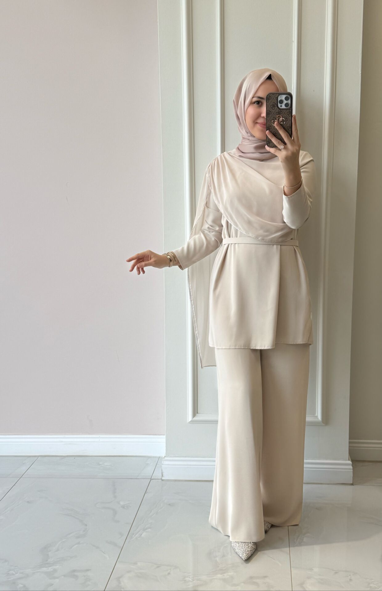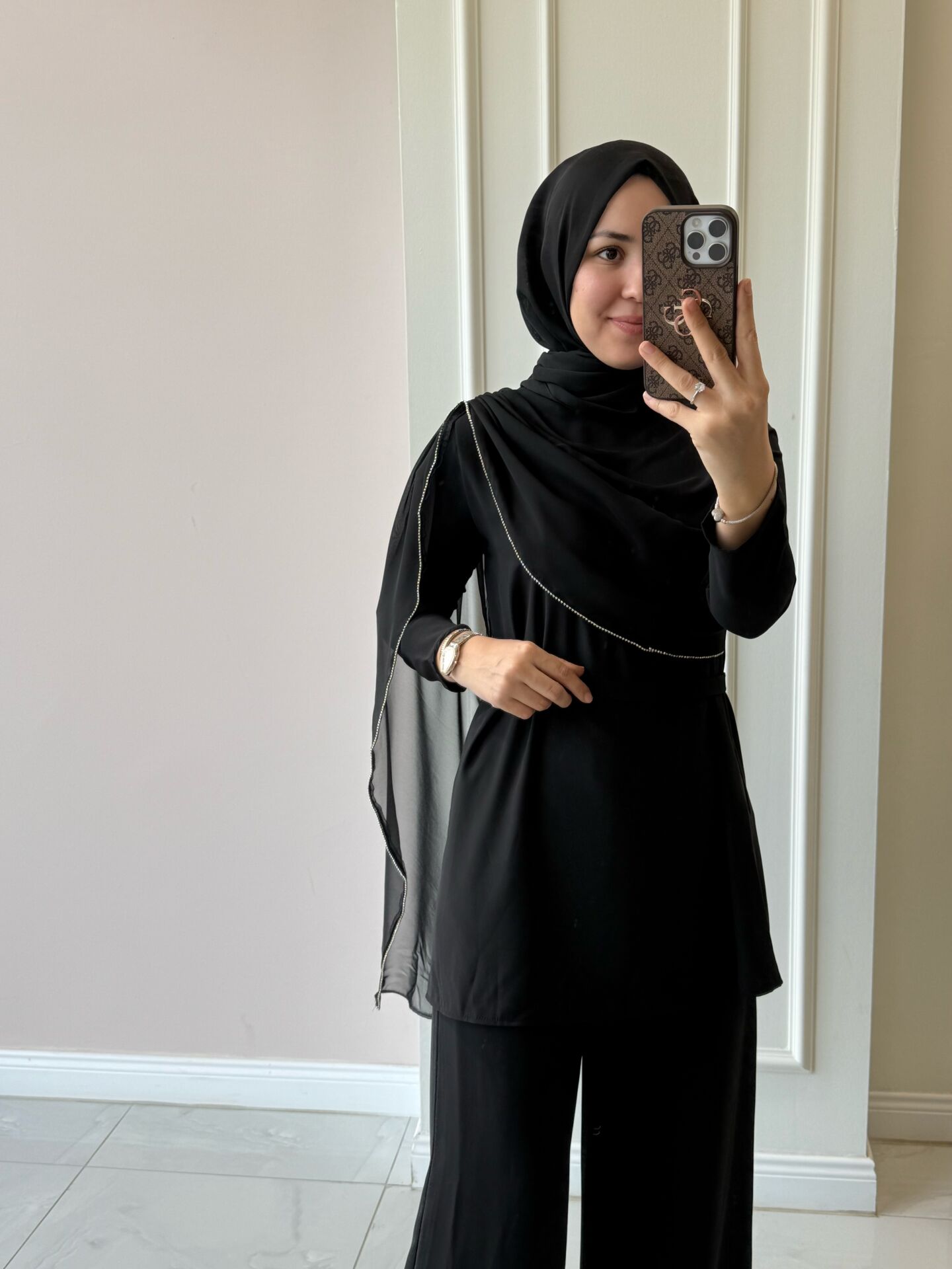Ürünümüz krep kumaştır. Üst pelerini şifon kumaştır.