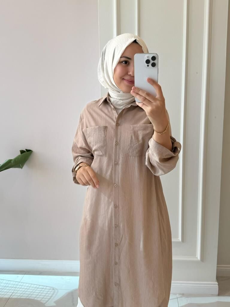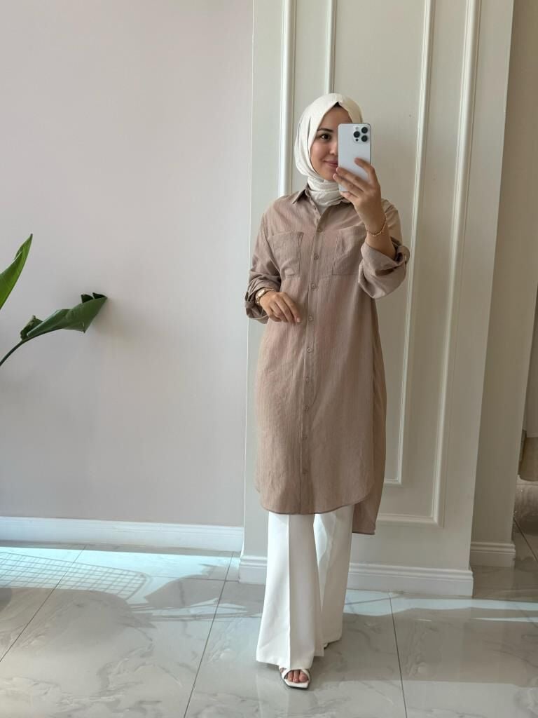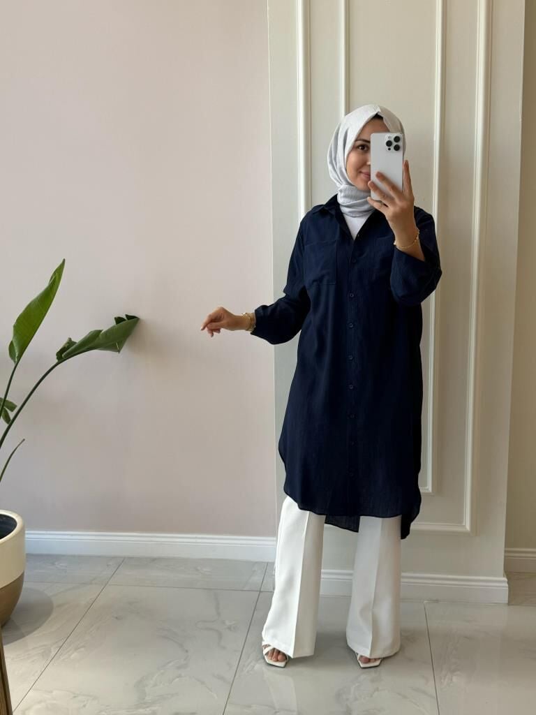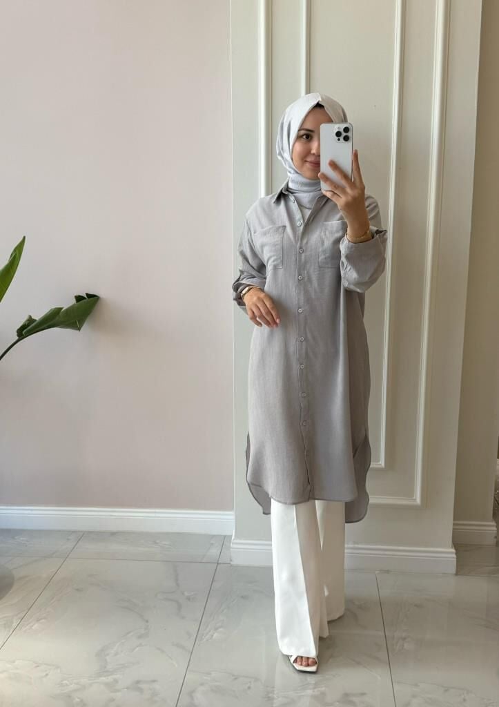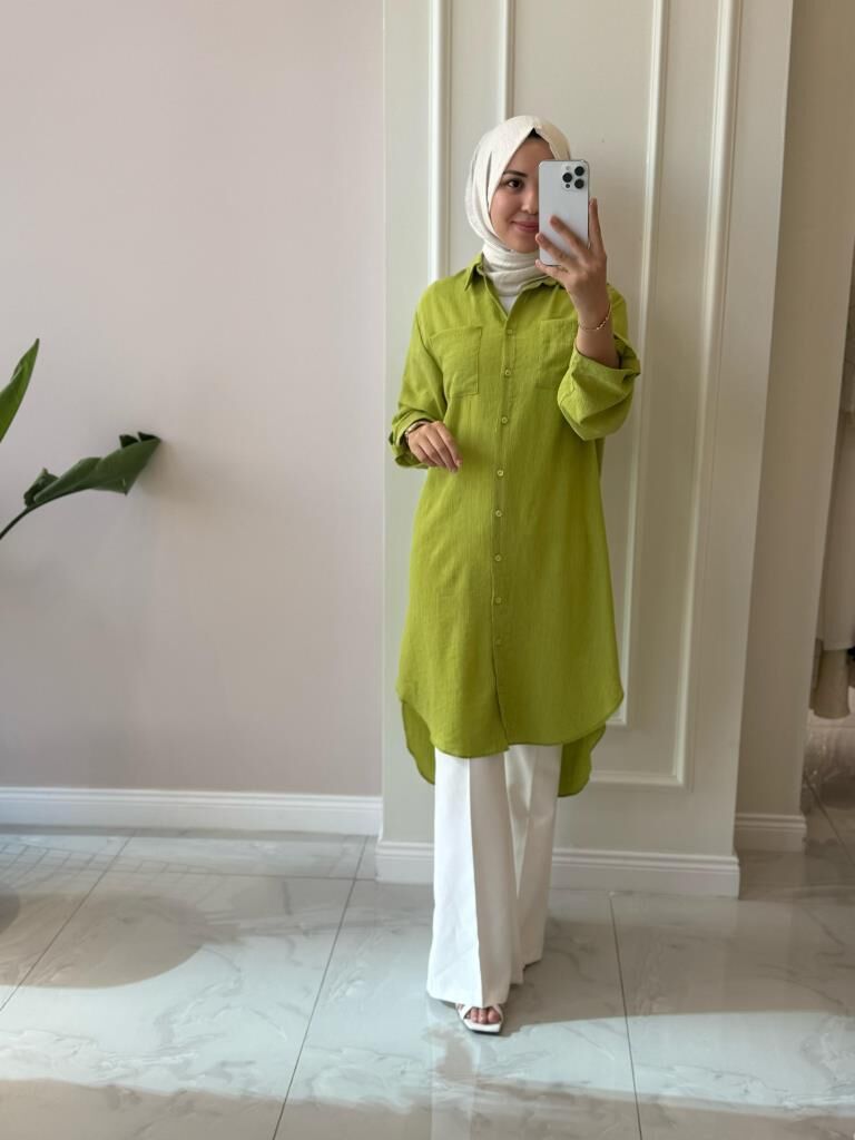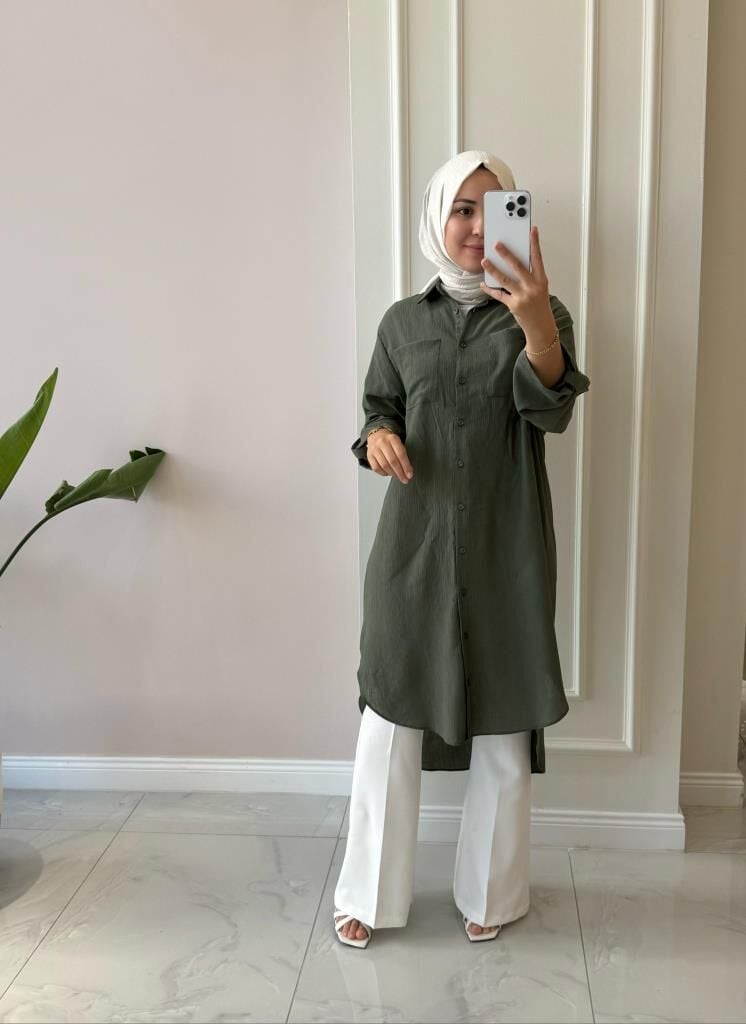 Kadın 10686 Düğmeli Uzun Tunik