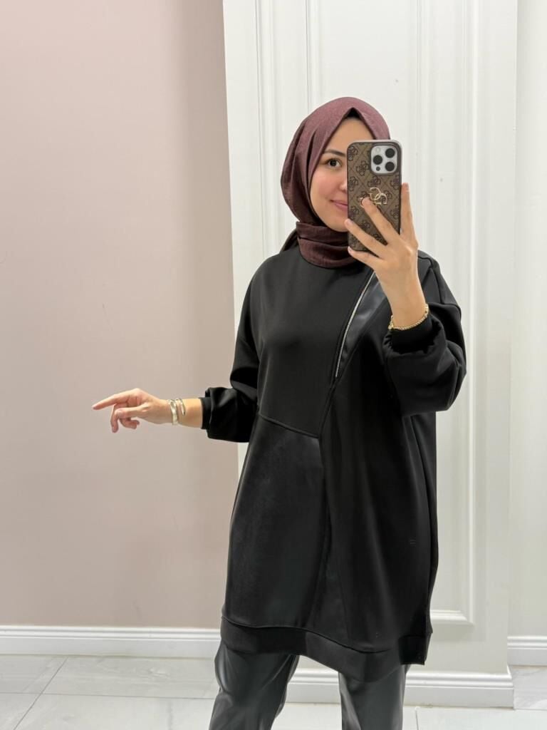 Kadın 10728 Deri Detaylı Tunik