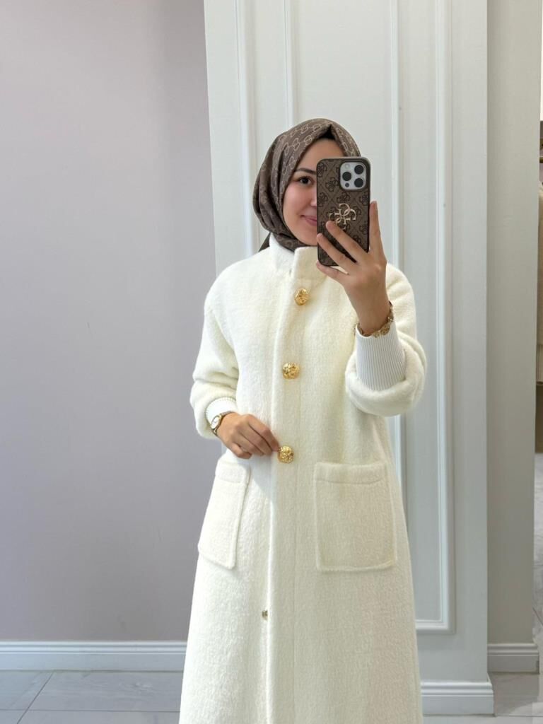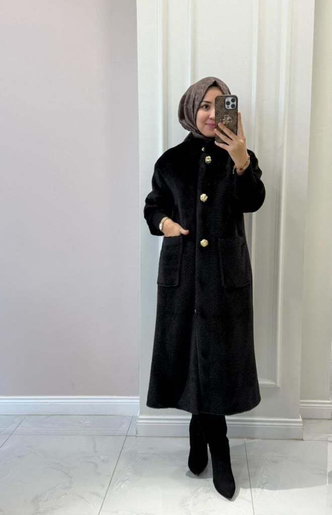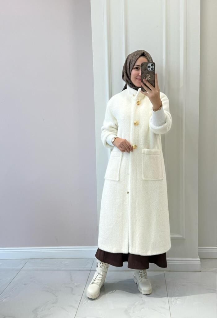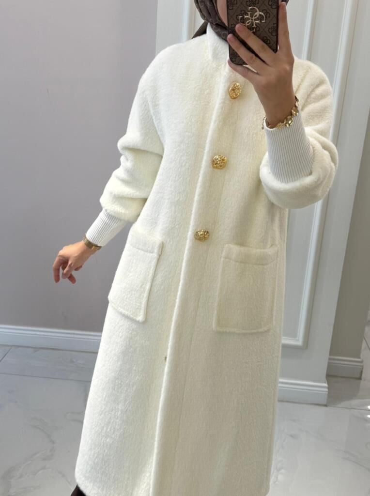 Angora kürk kumaştır.İçi astarlıdır.Boyu 120 cm'dir.