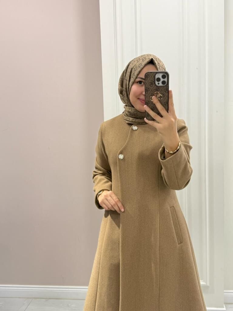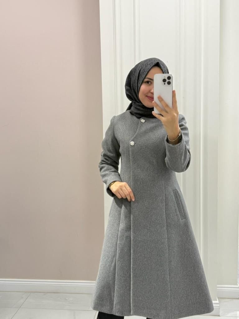 Kadın 2429009 Broş Düğme Detaylı Kaşe Kaban