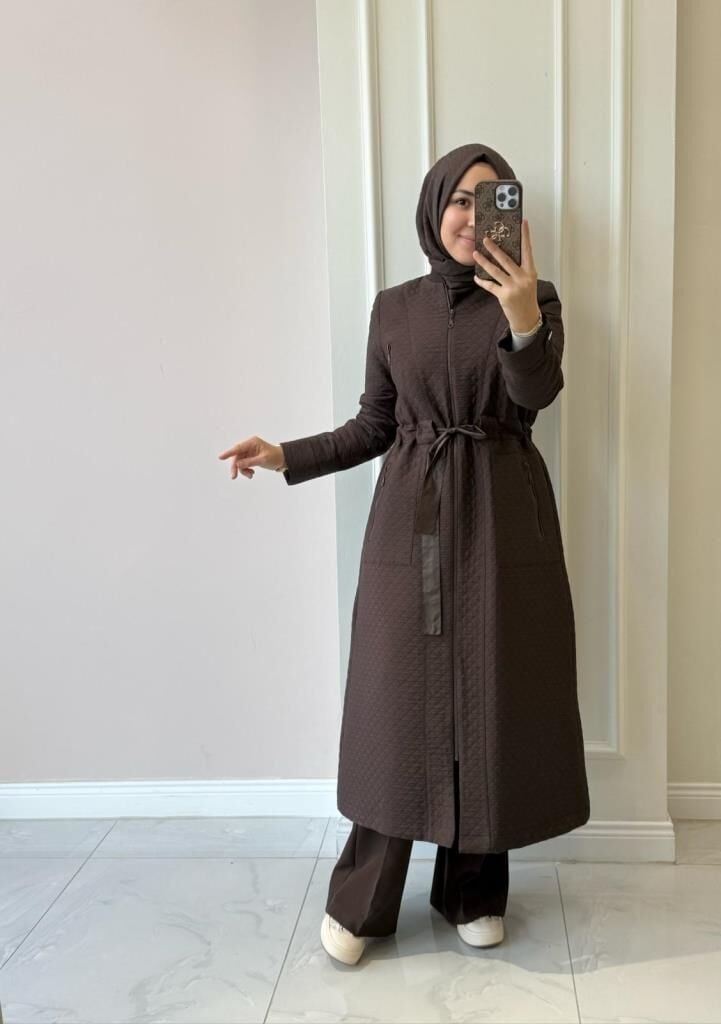 Modelimiz 167cm boyunda, 63 kg'dir.38 beden tercih etmiştir.