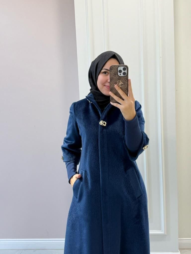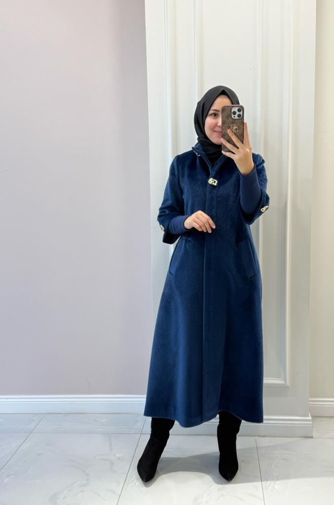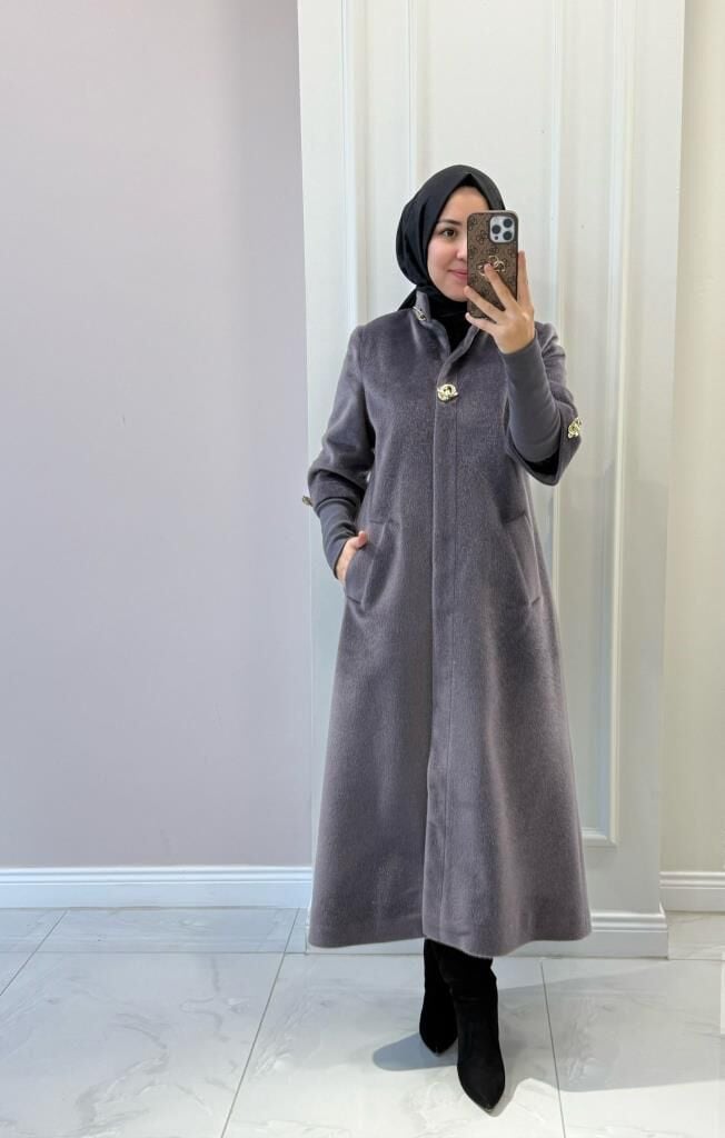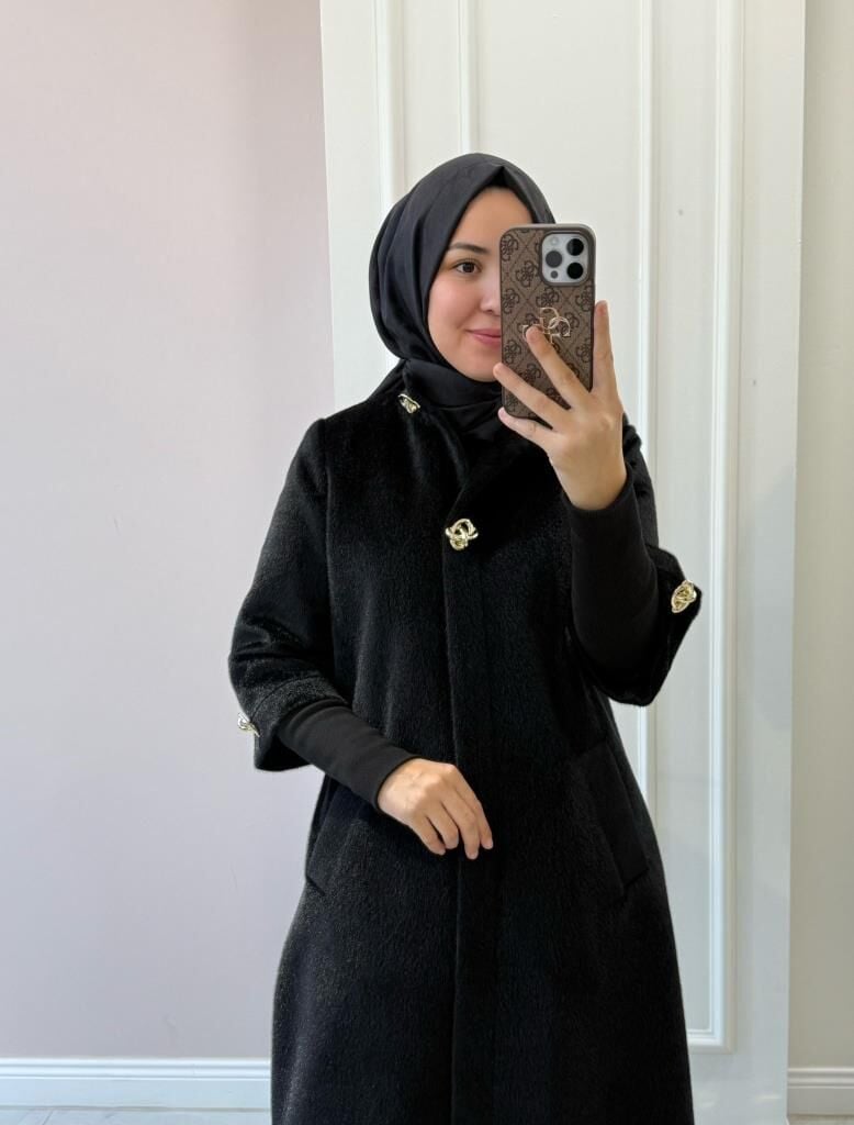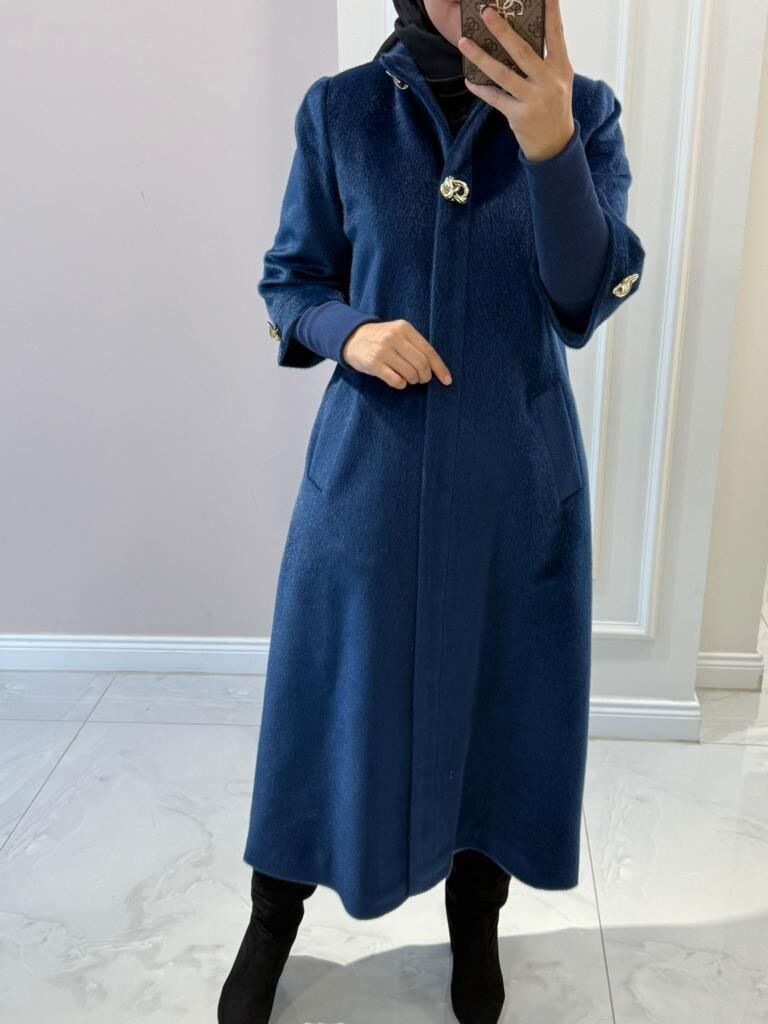 Kadın 36307 Düğmeli Tay Tüyü Kaban