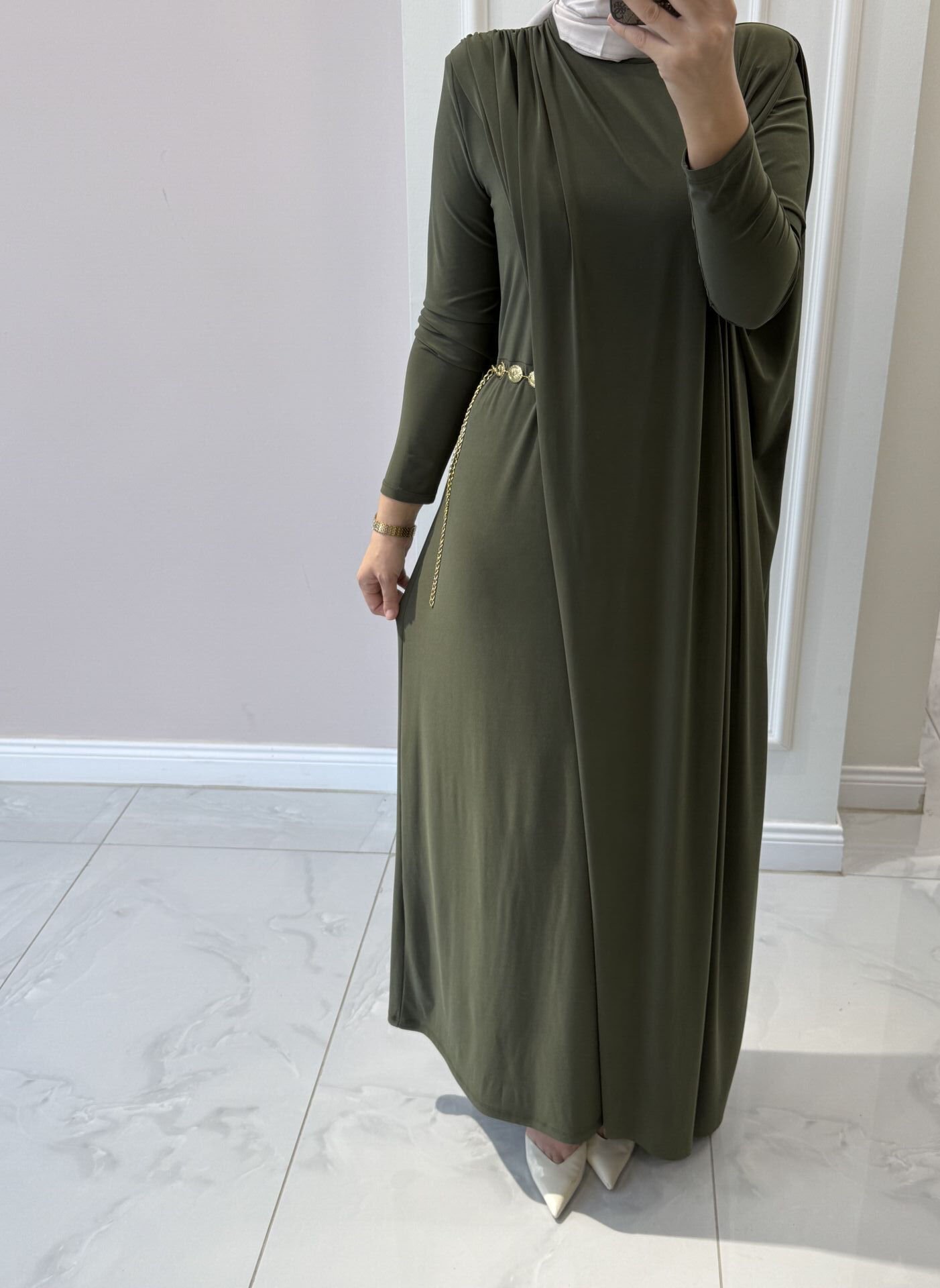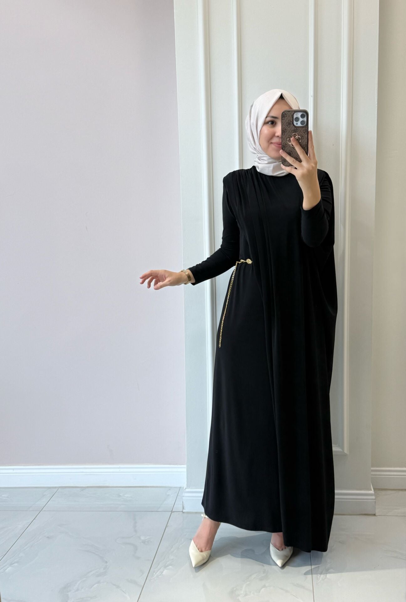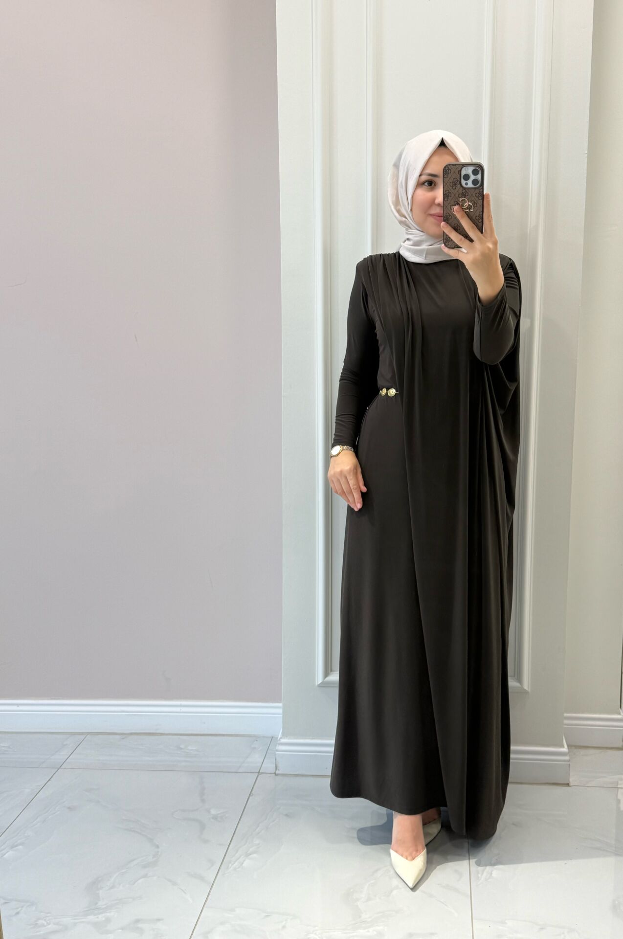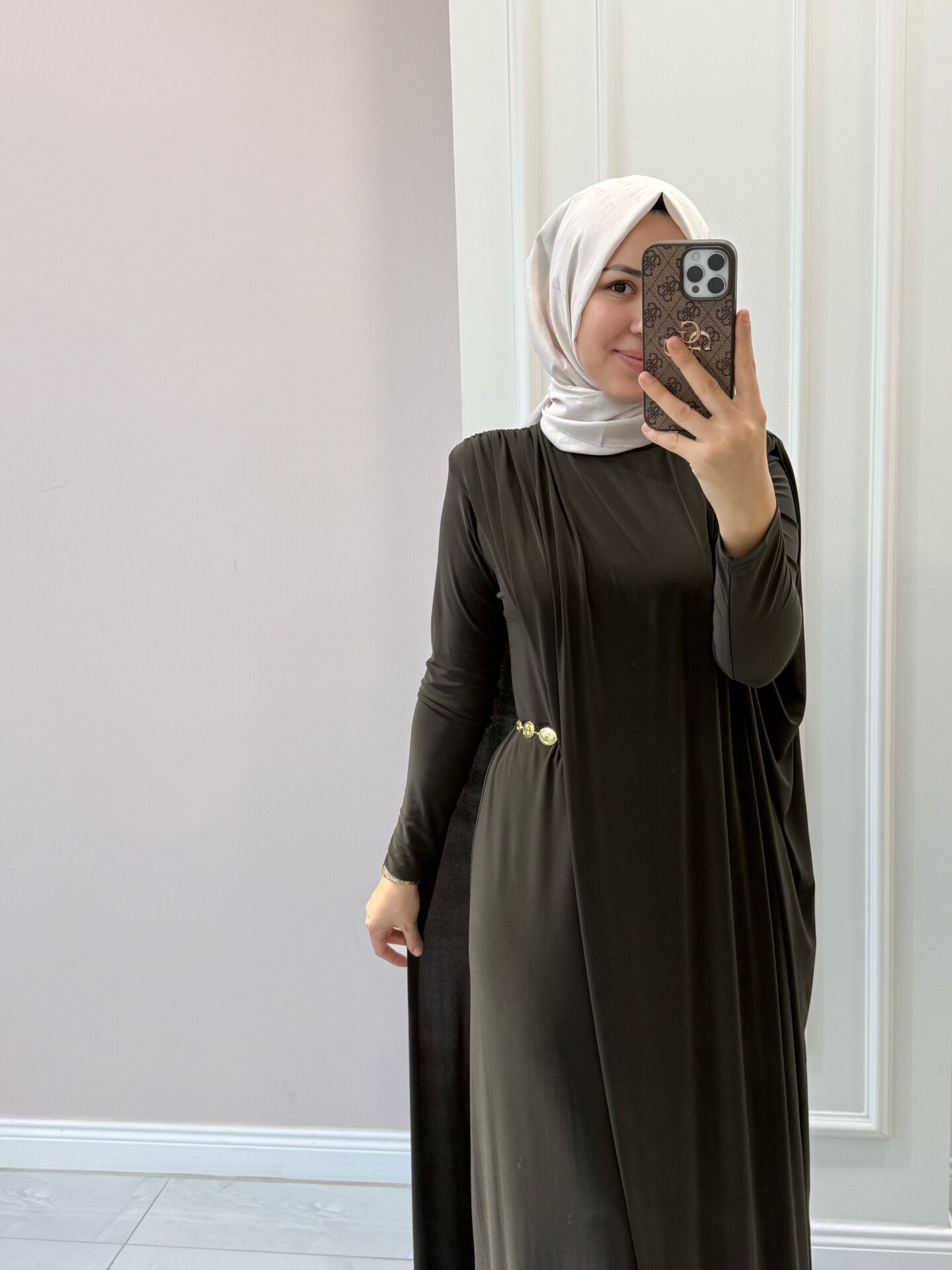 Likralı sandy kumaştır (Yumuşak dokulu, esnek, dökümlü ve kırışmayan bir kumaş türüdür)