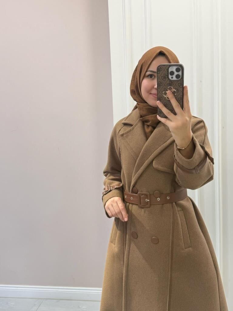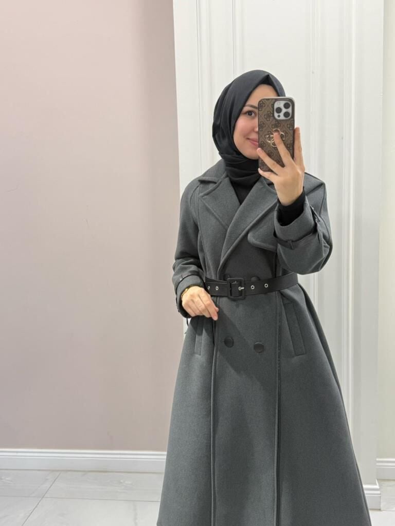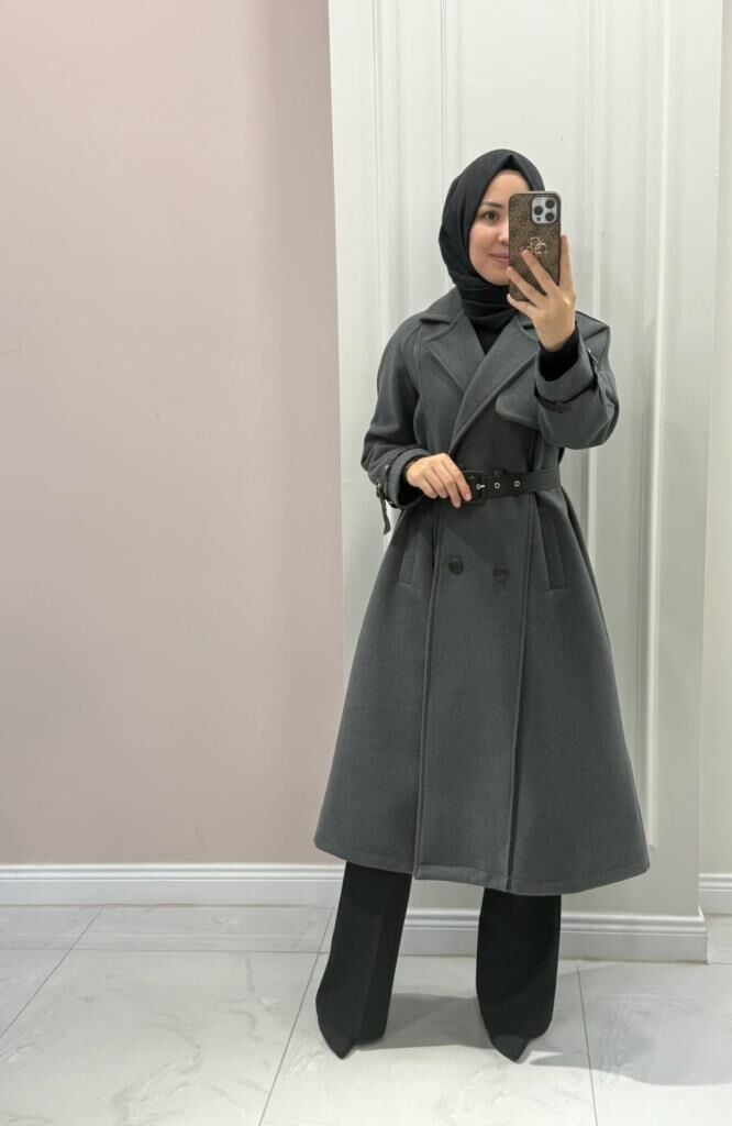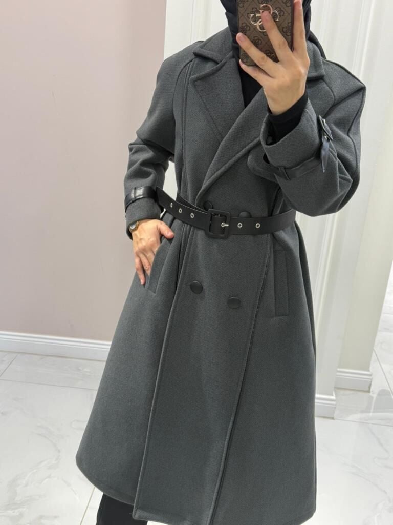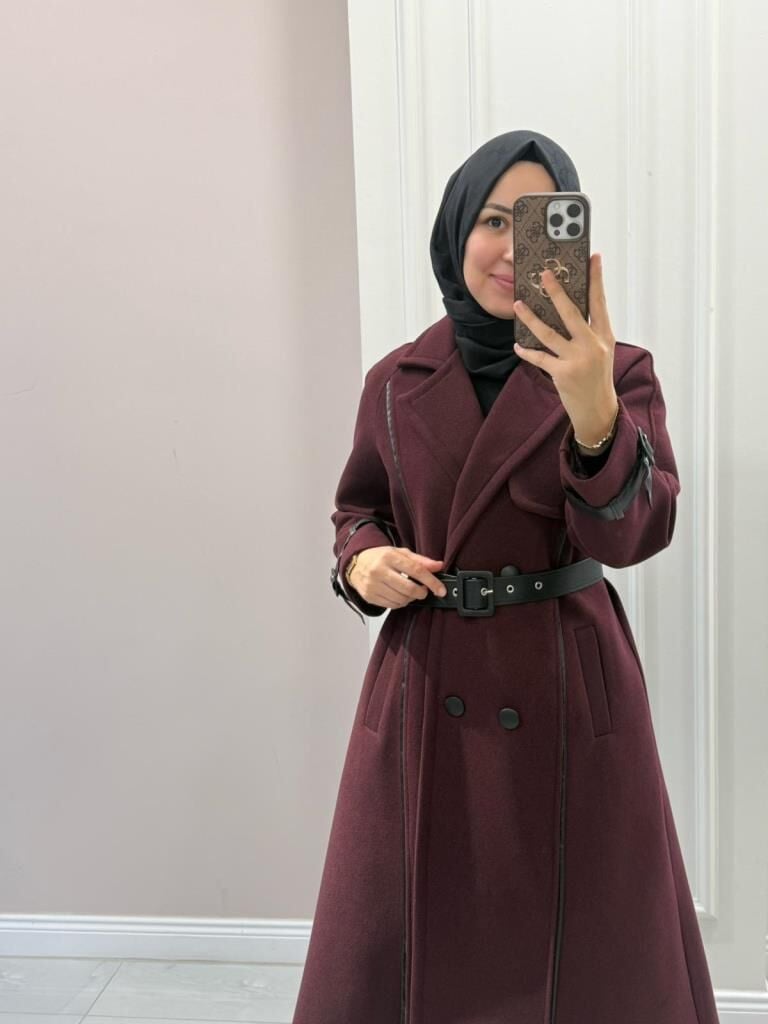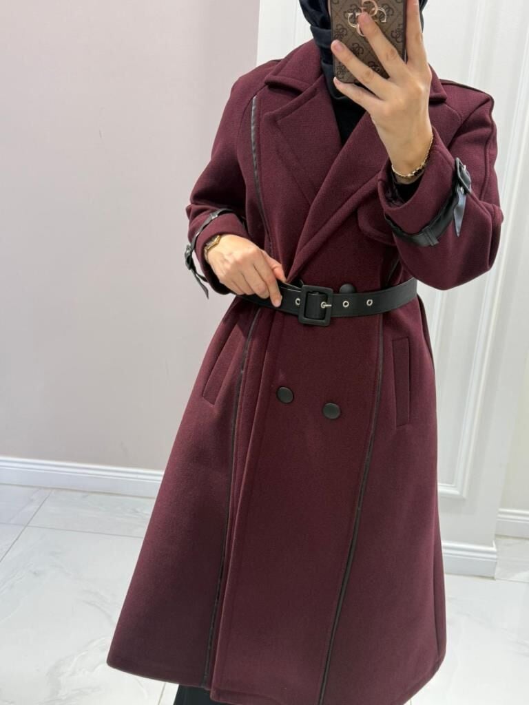 6517 Şerit Detaylı Kaşe Kaban