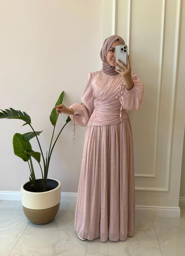 Ürünümüzün sedefli şifon kumaştır. İçi astarlıdır.