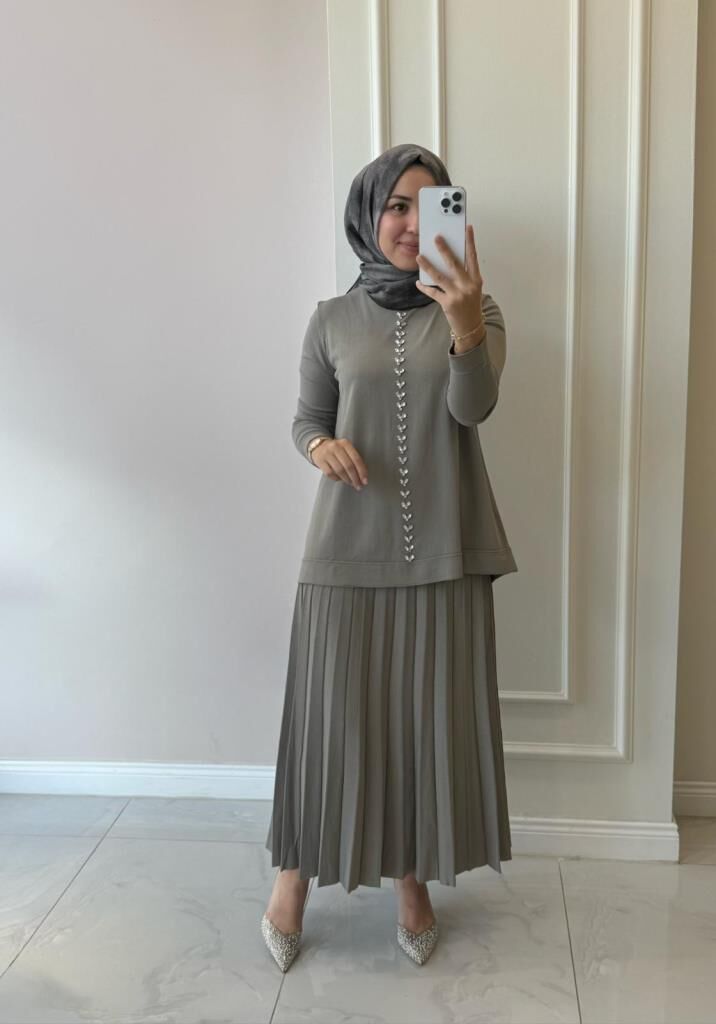 Kadın Nuss 1351 Piliseli Etekli Triko Takım