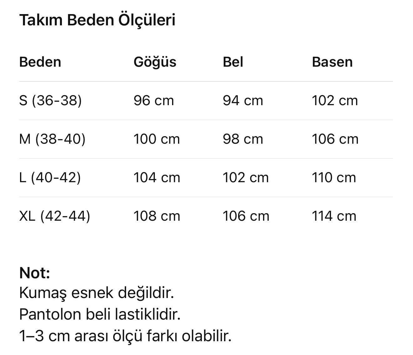 Pantolon boyu 105 cm