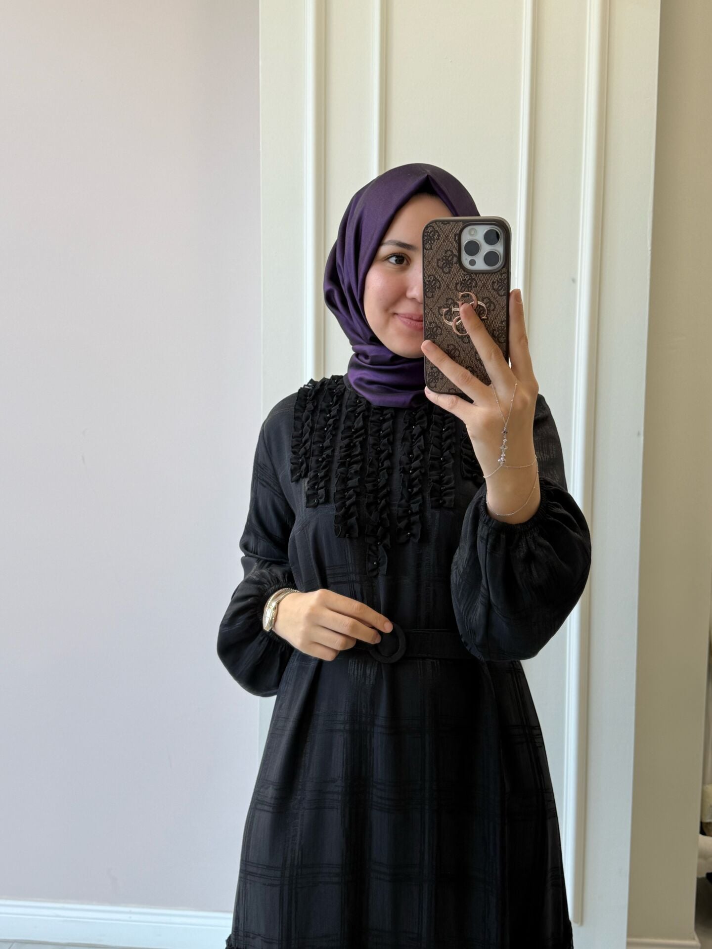 Elbisemiz rahat kalıptır. Manken üzerindeki 40 bedendir.