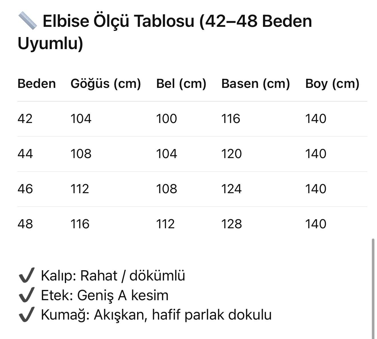 Elbise boyu 140 cm'dir.