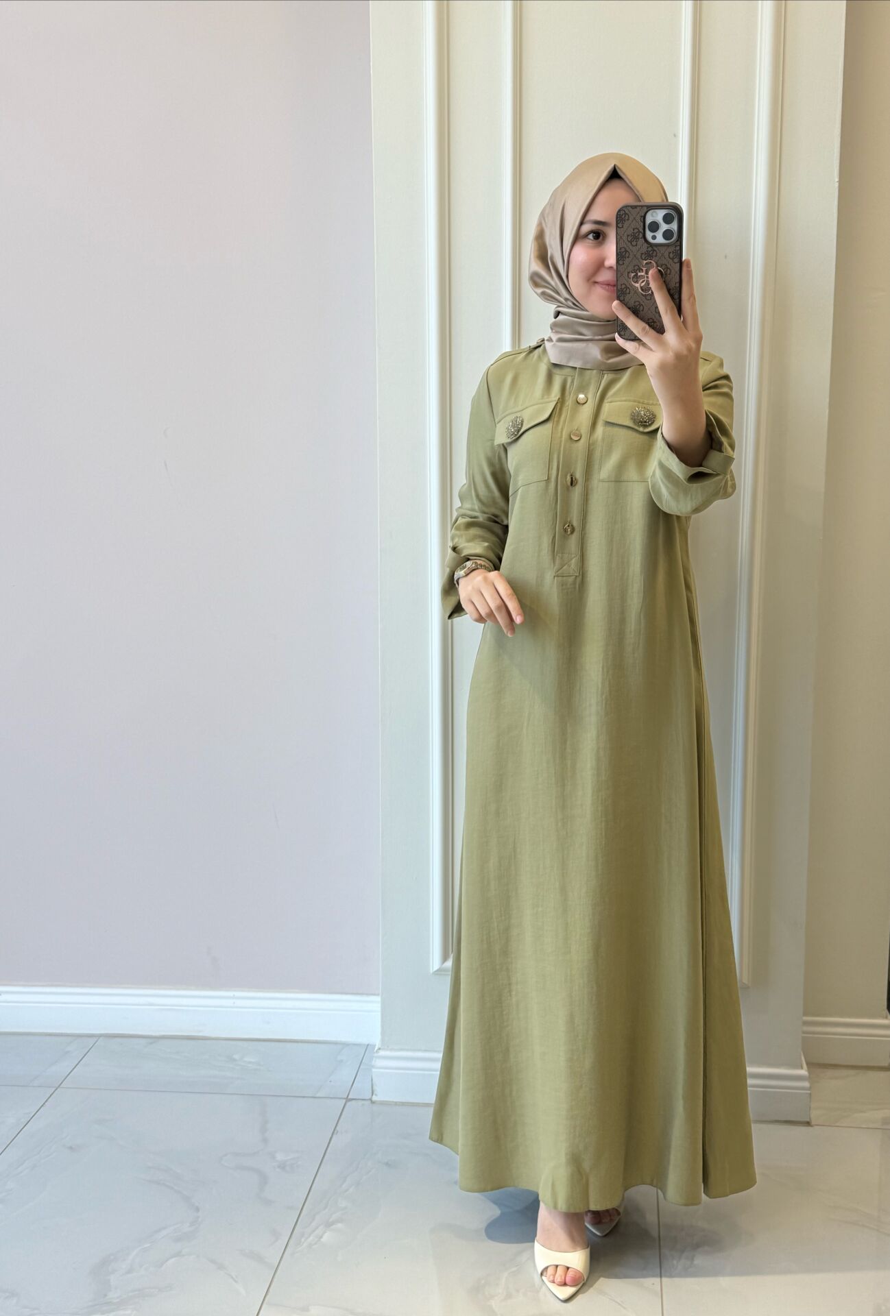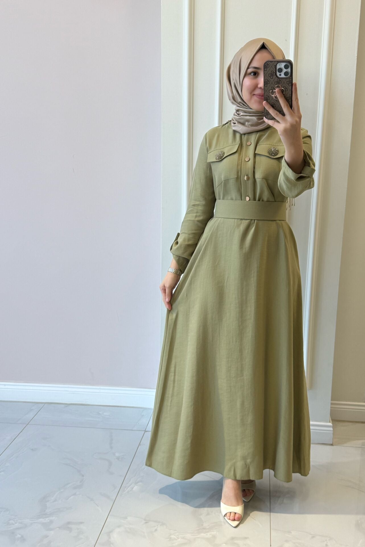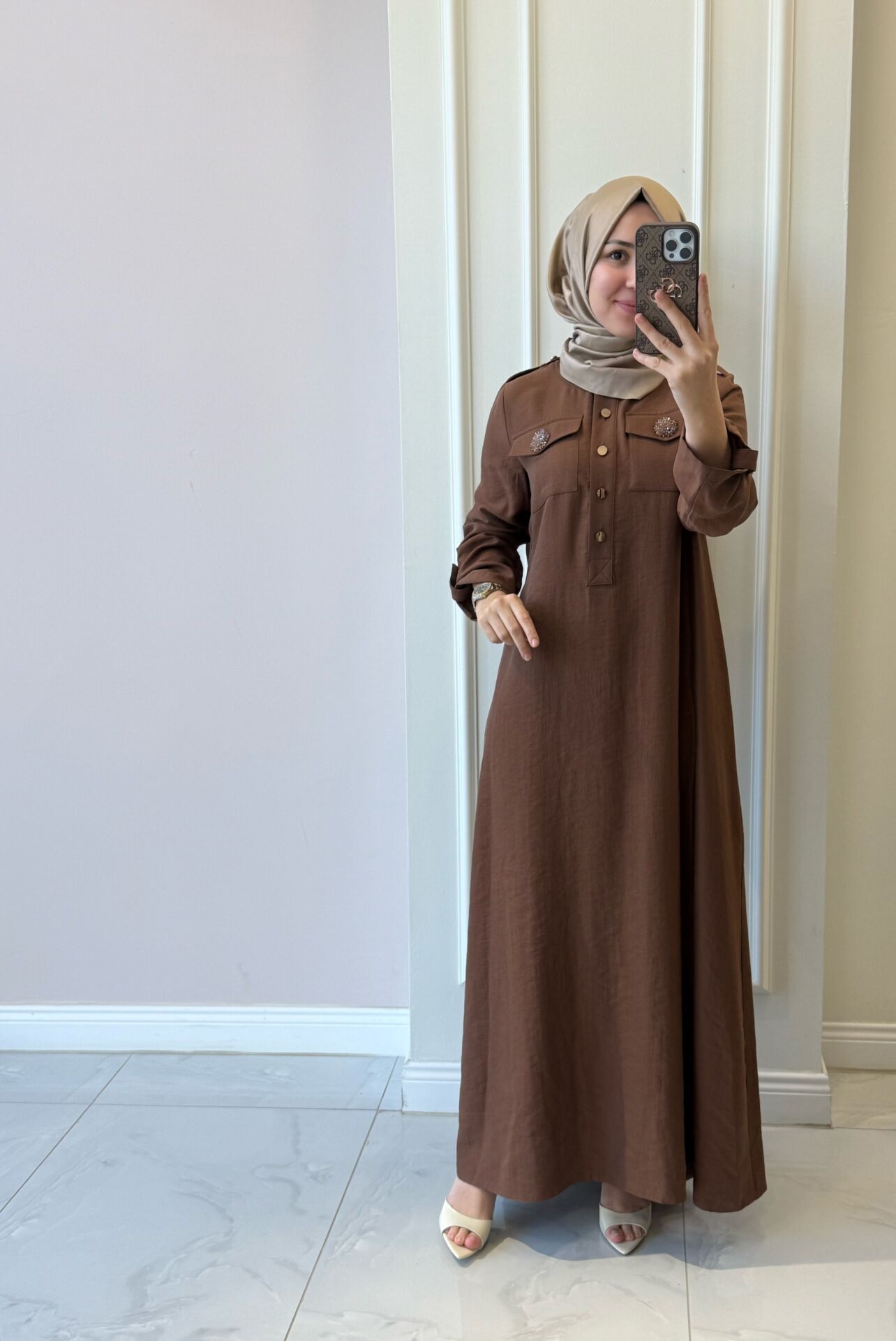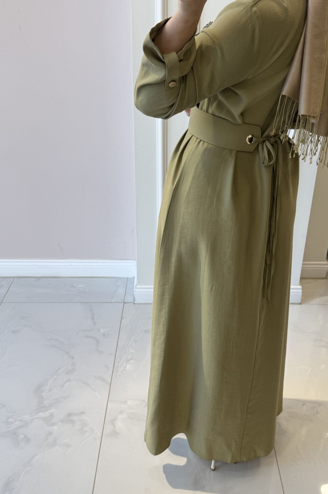Elbisemiz tam kalıptır. Manken üzerindeki 38 bedendir.