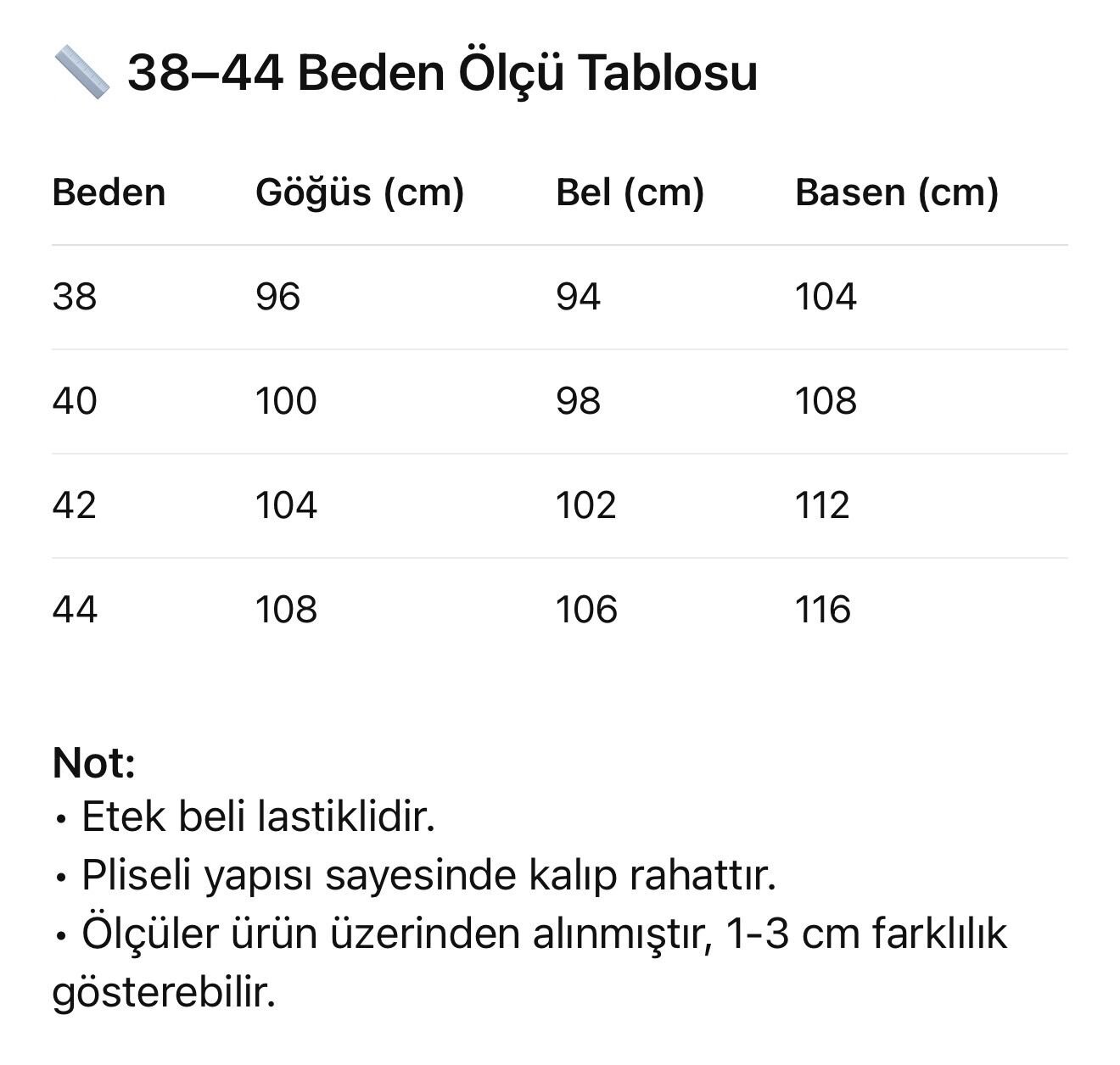 Etek beli lastiklidir. İçi astarlıdır.
