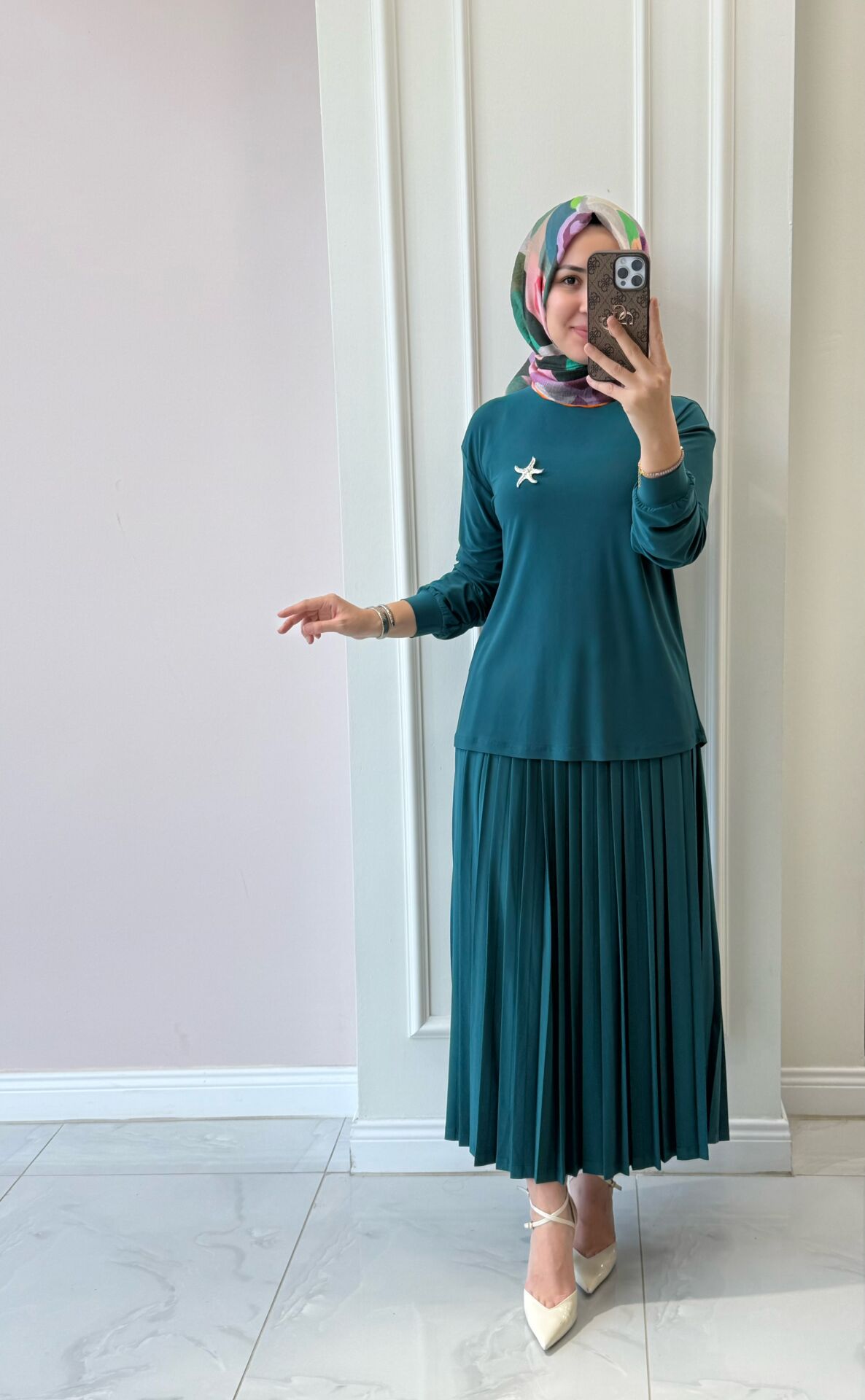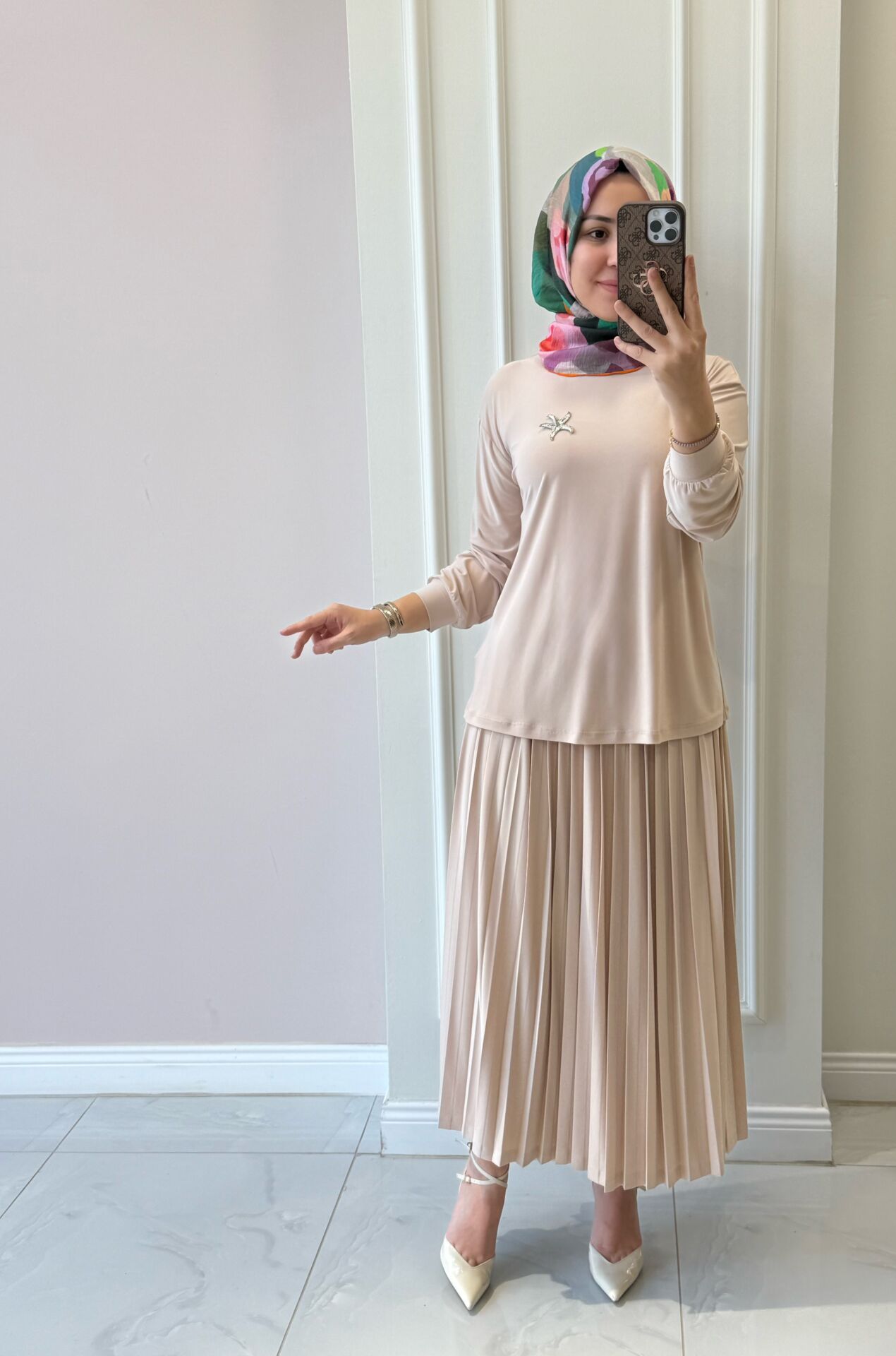 Takımımız tam kalıptır. Manken üzerindeki 38 bedendir.