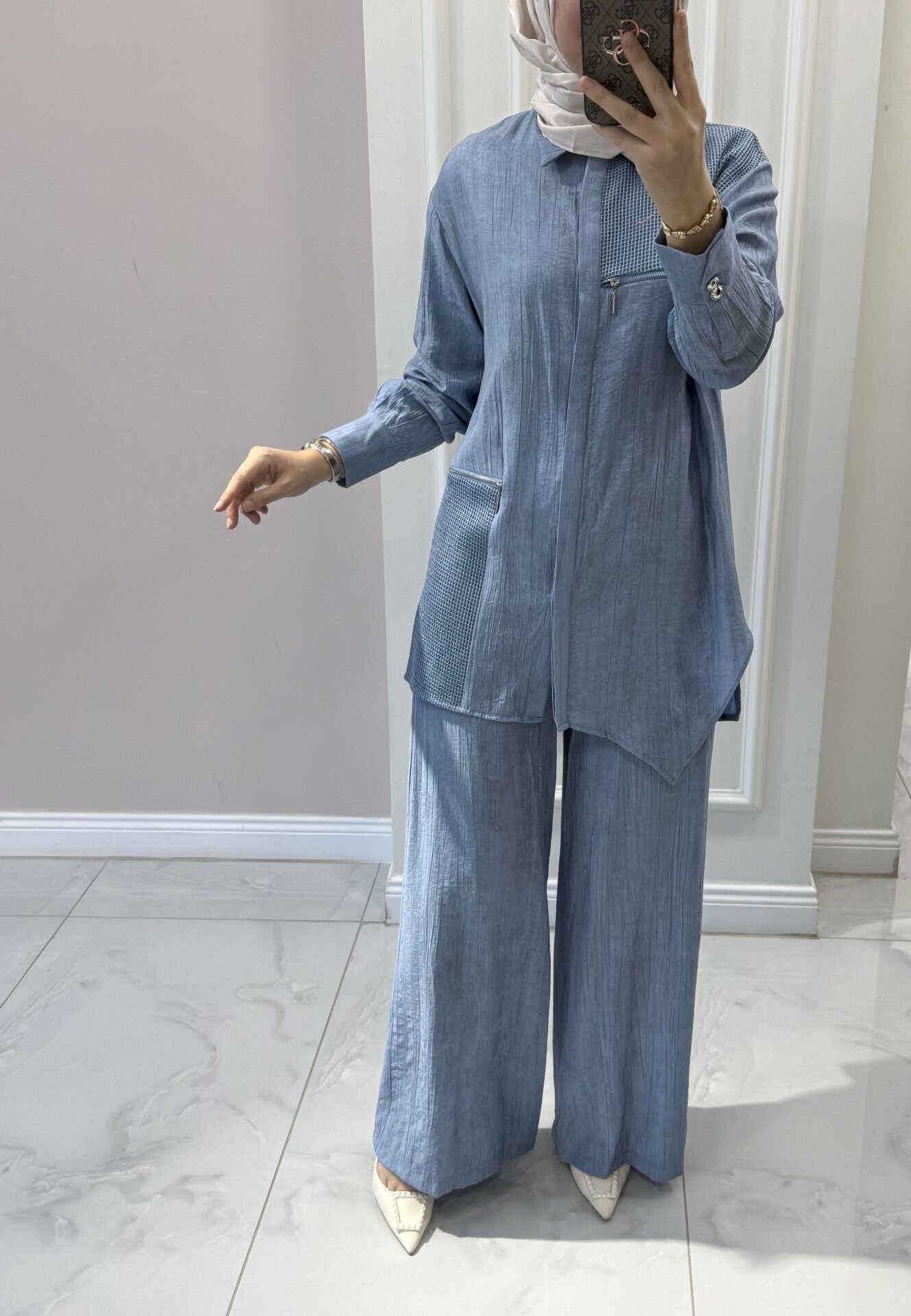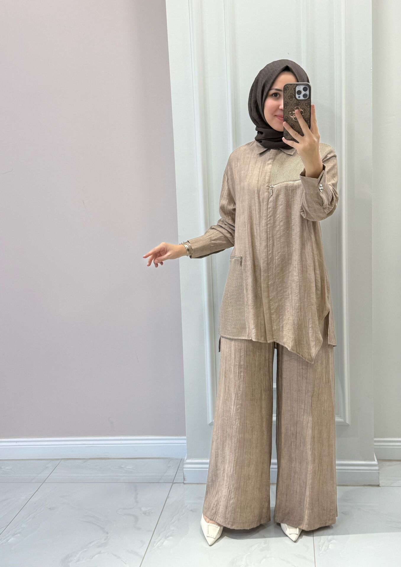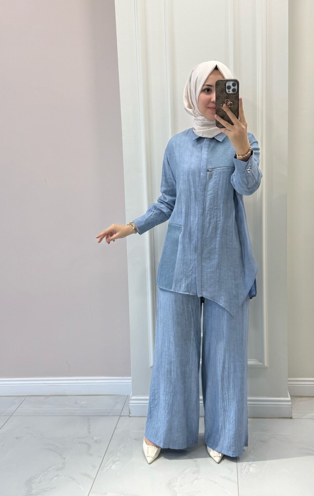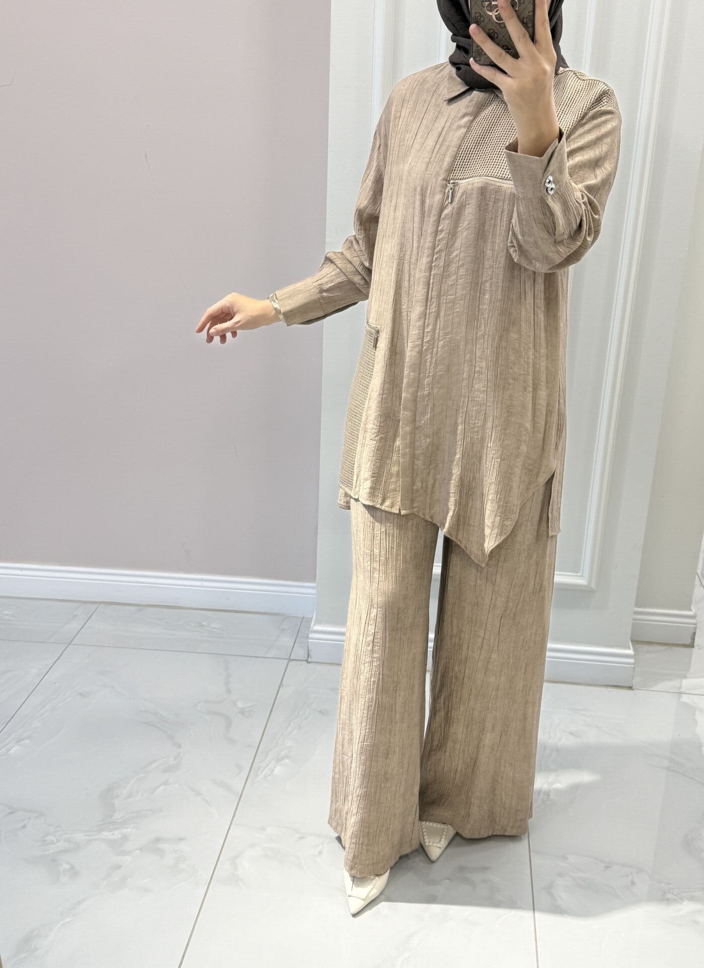 Ürünümüz tam kalıptır. Manken üzerindeki 38 bedendir.