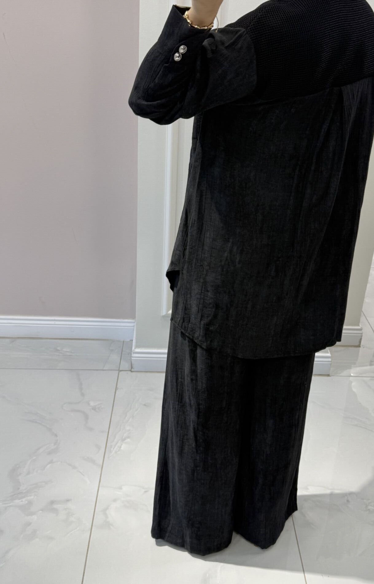 Pantolon beli lastikli ve ceplidir.