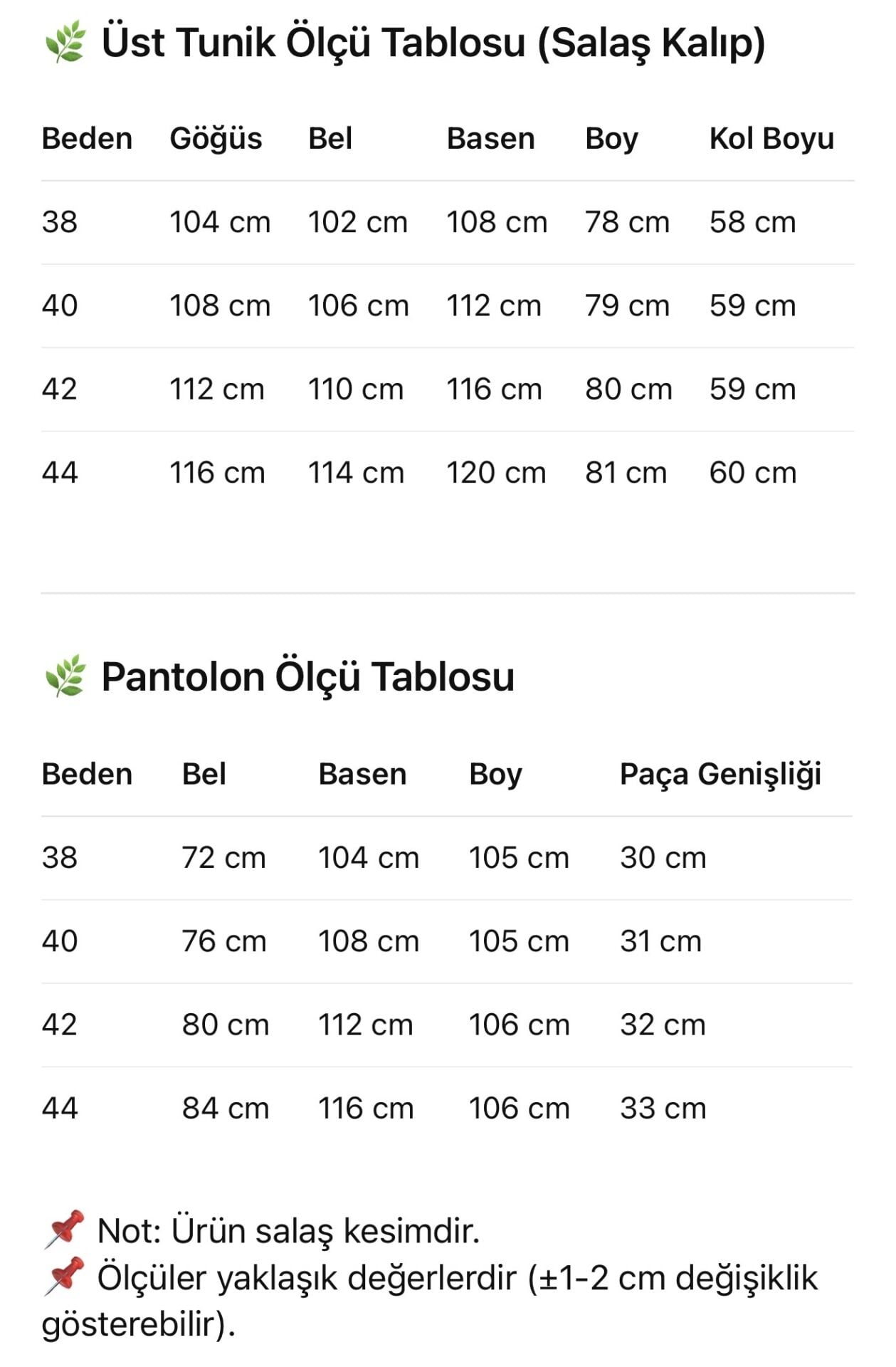 Pantolon boyu 105 cm