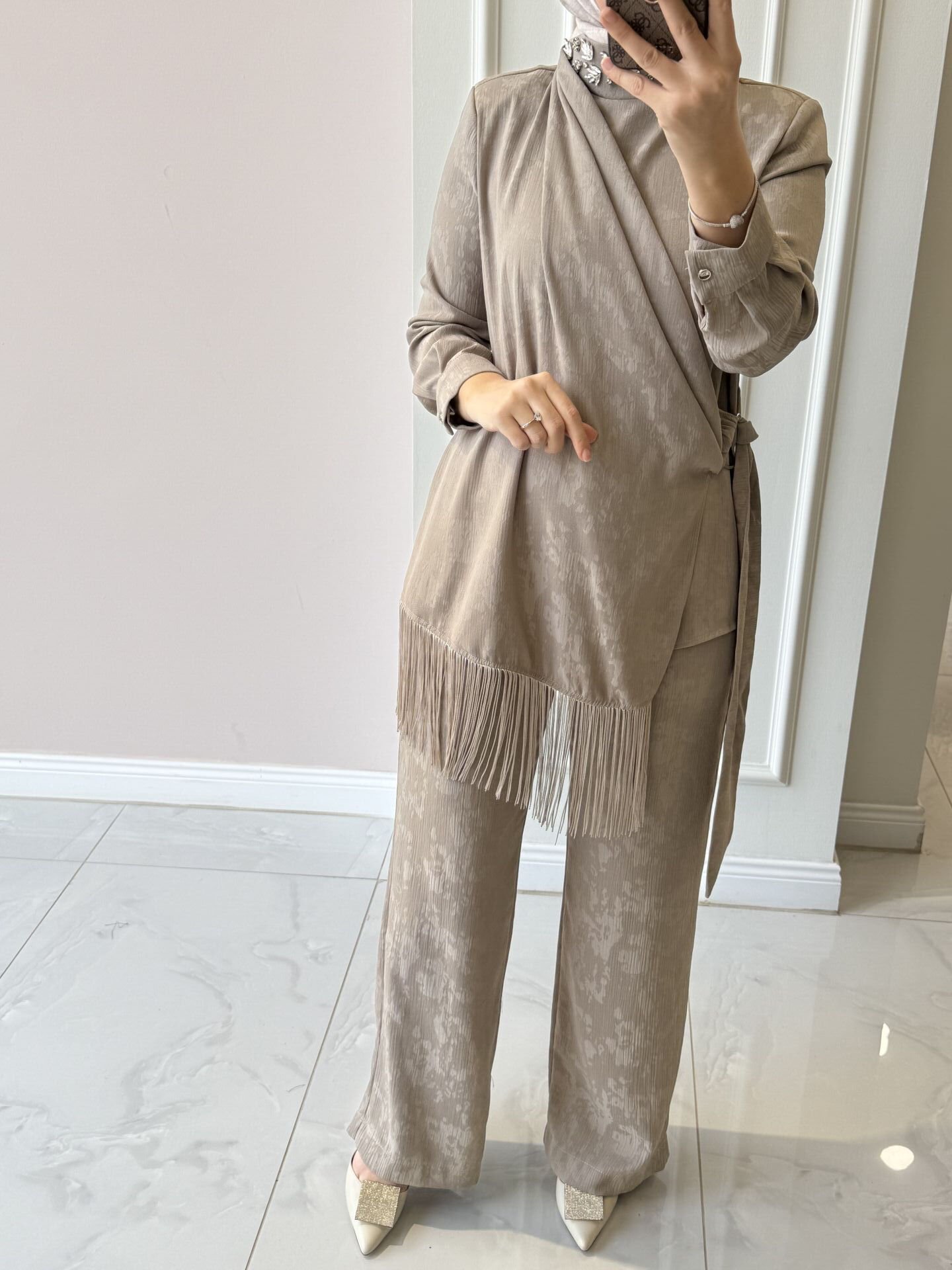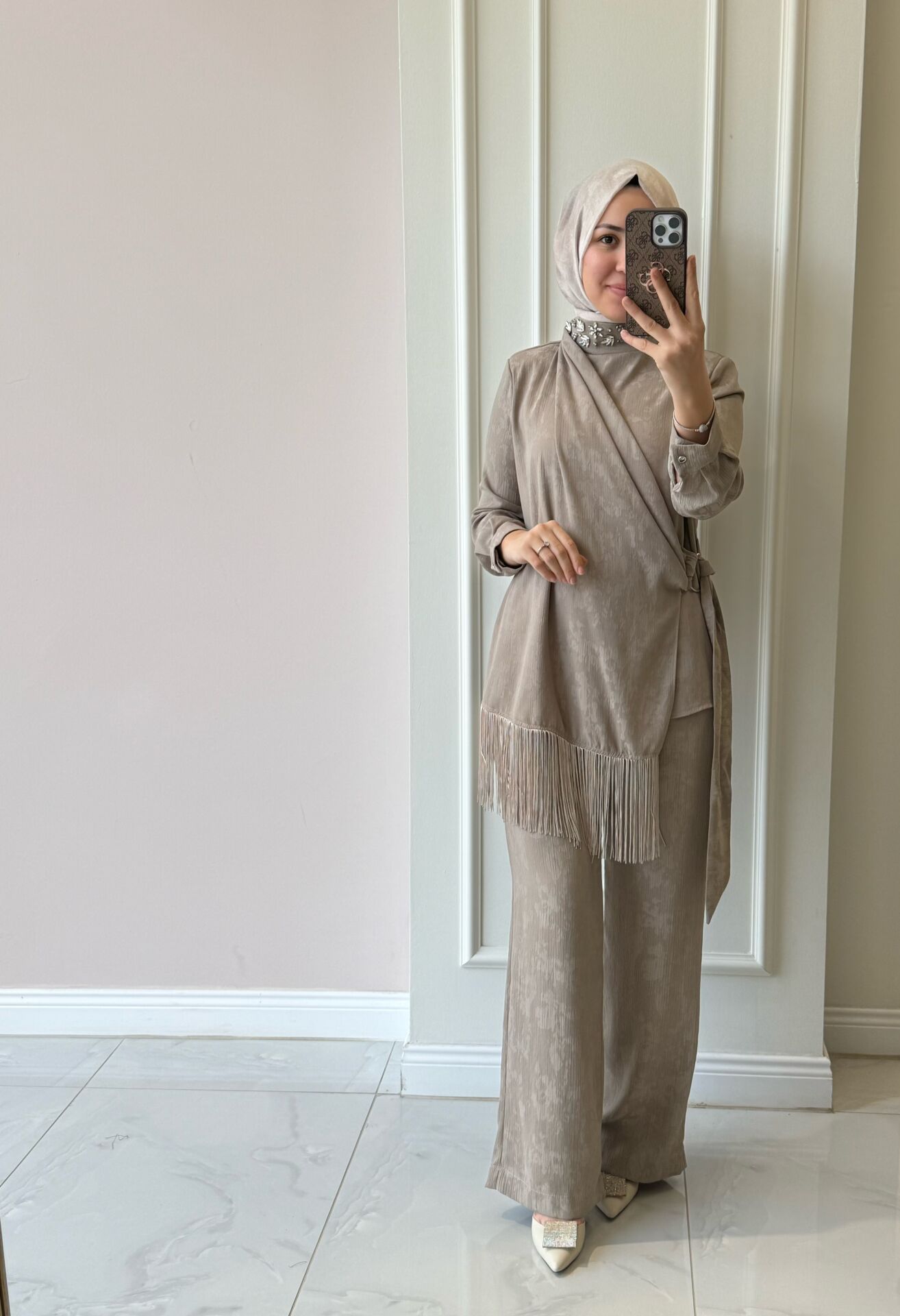 Ürünümüz tam kalıptır. Manken üzerindeki 38 bedendir.