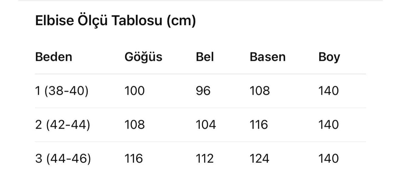 Elbise boyu : 140 cm (Ceplidir)