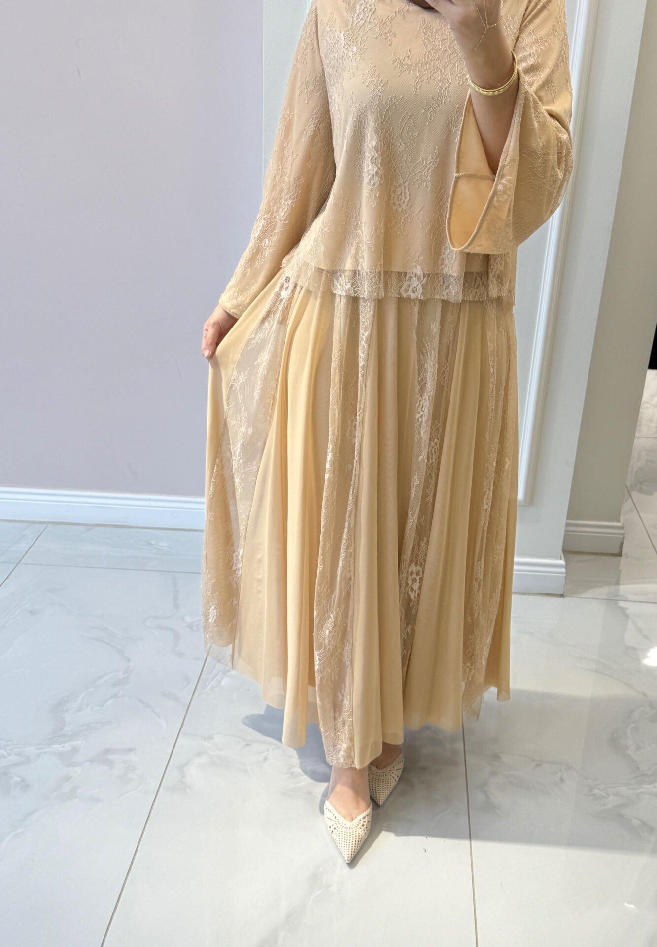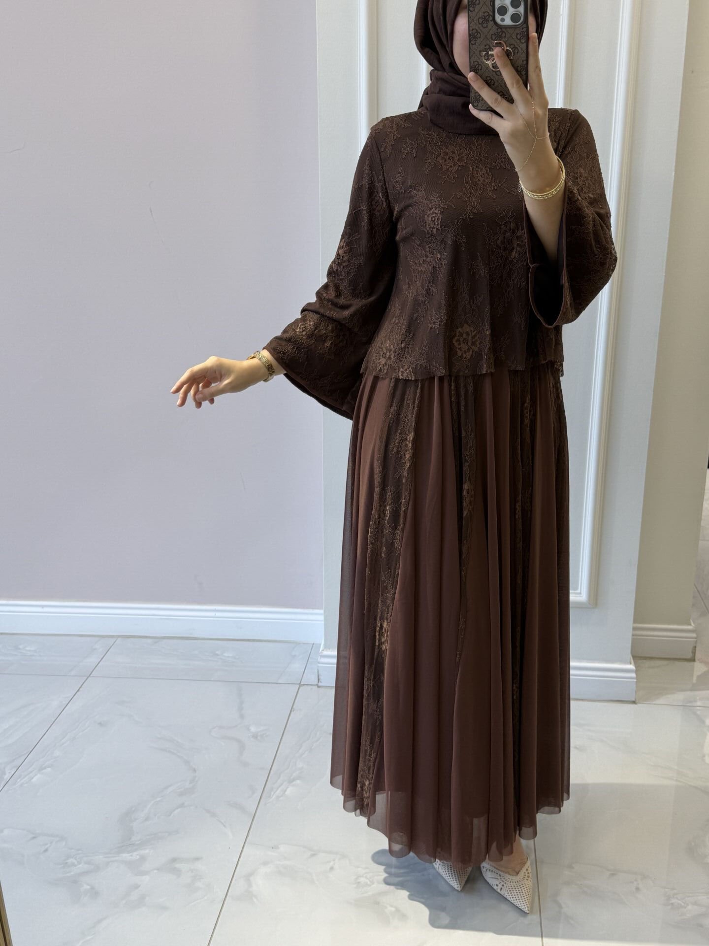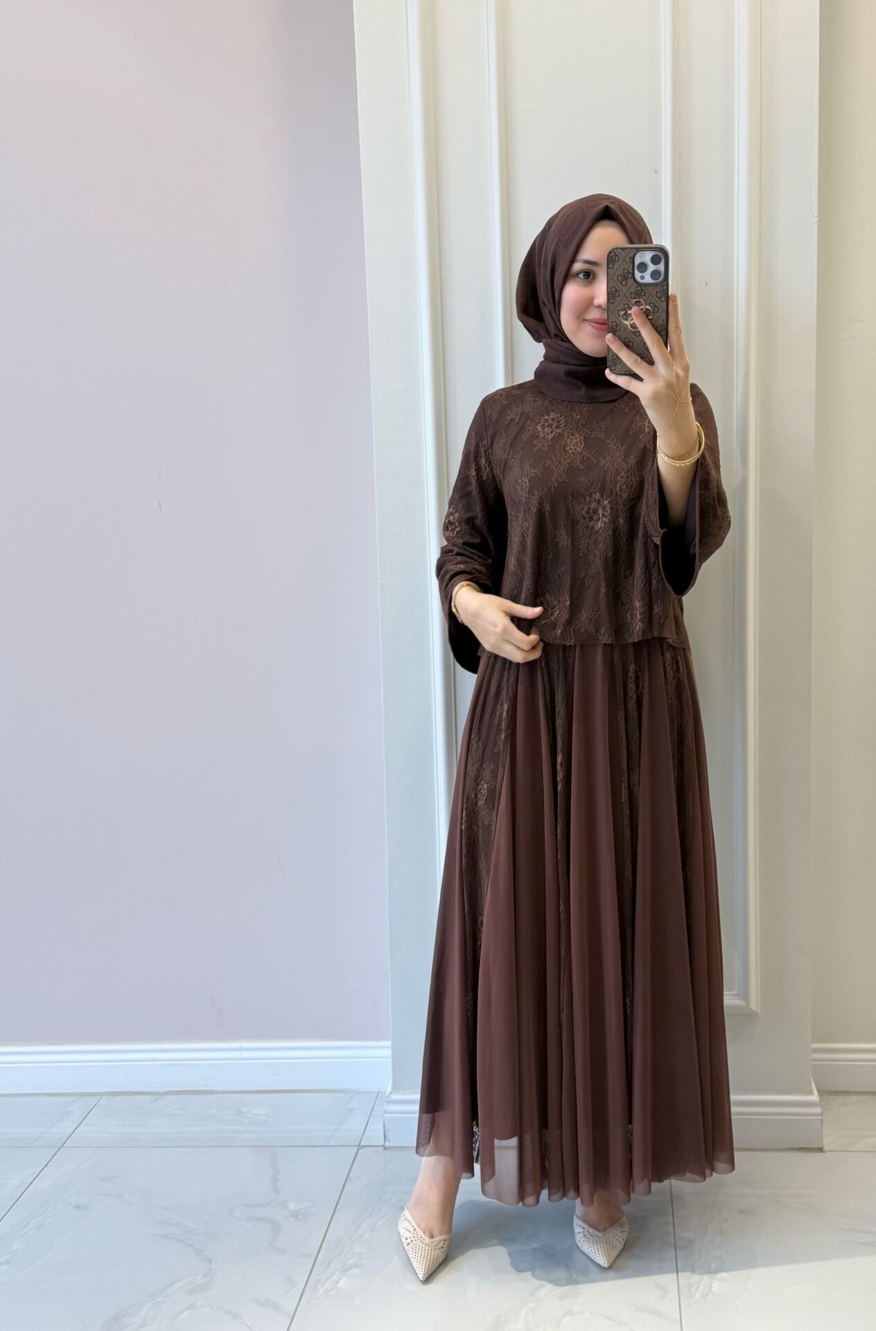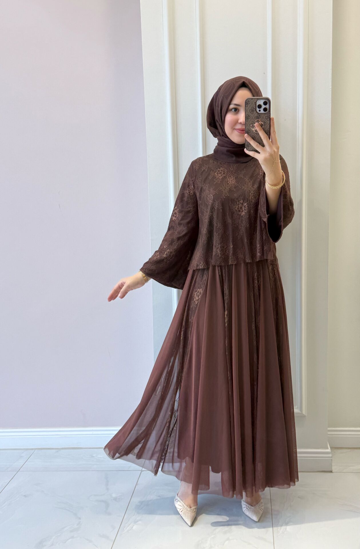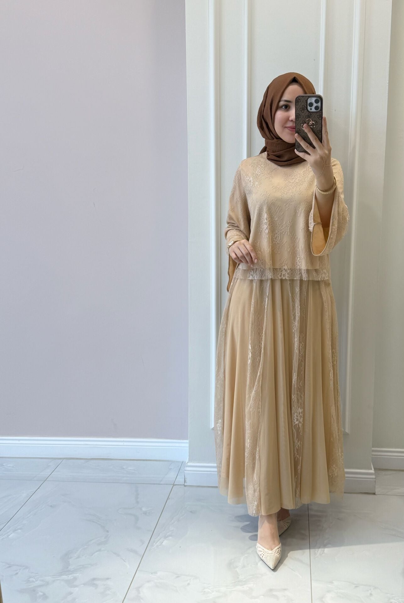 Tül Dantel kumaştır. İçi astarlıdır. Etek beli lastiklidir.