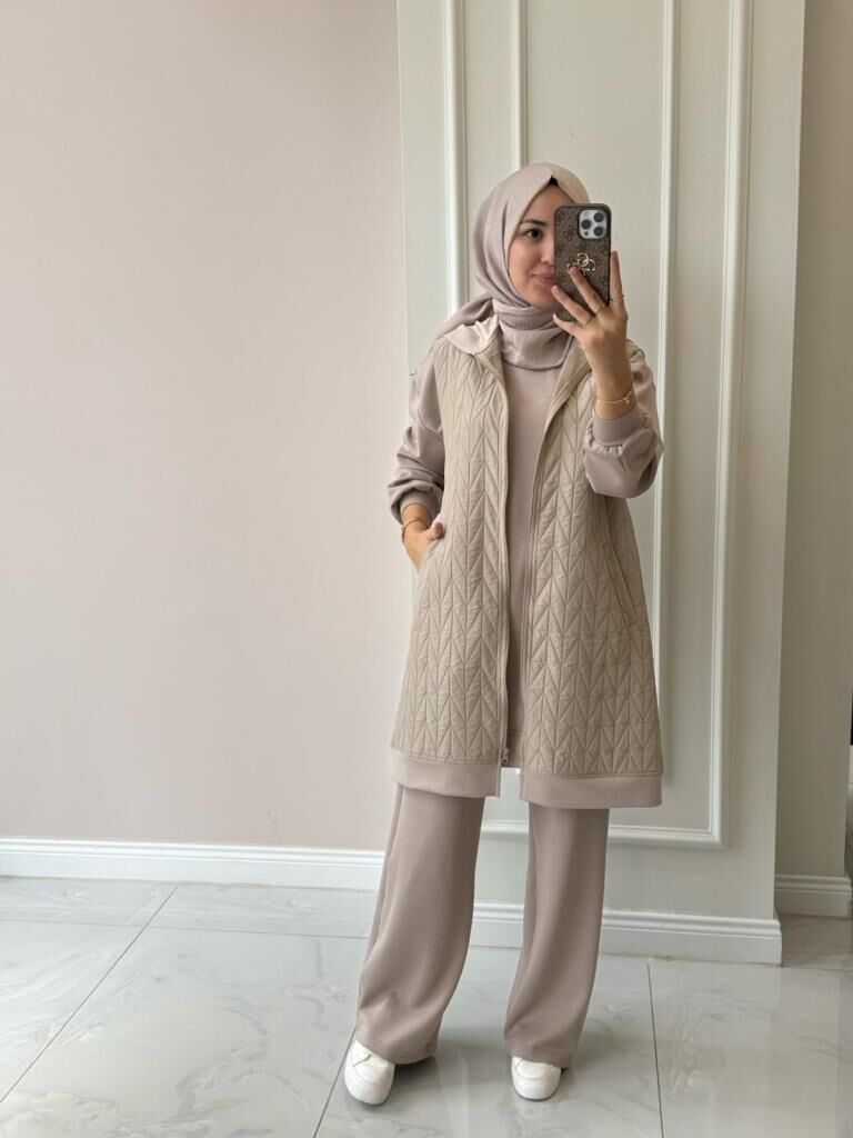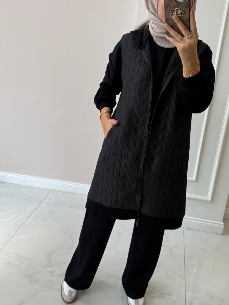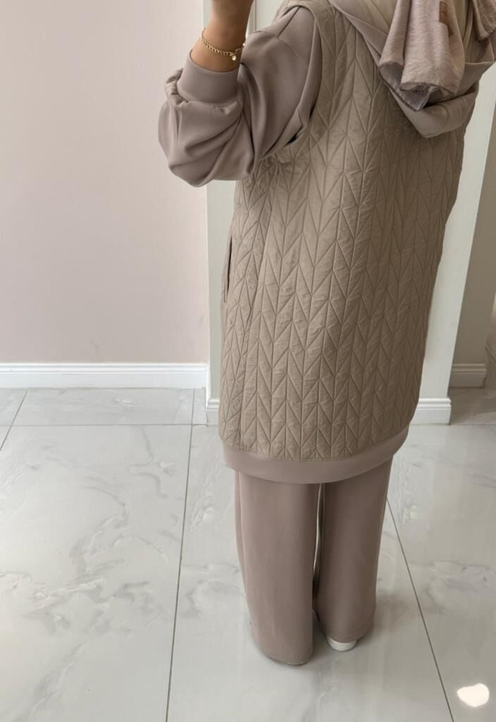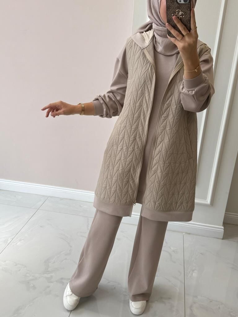 İç takımı modal kumaştır. Yeleği kapitone kumaştır.