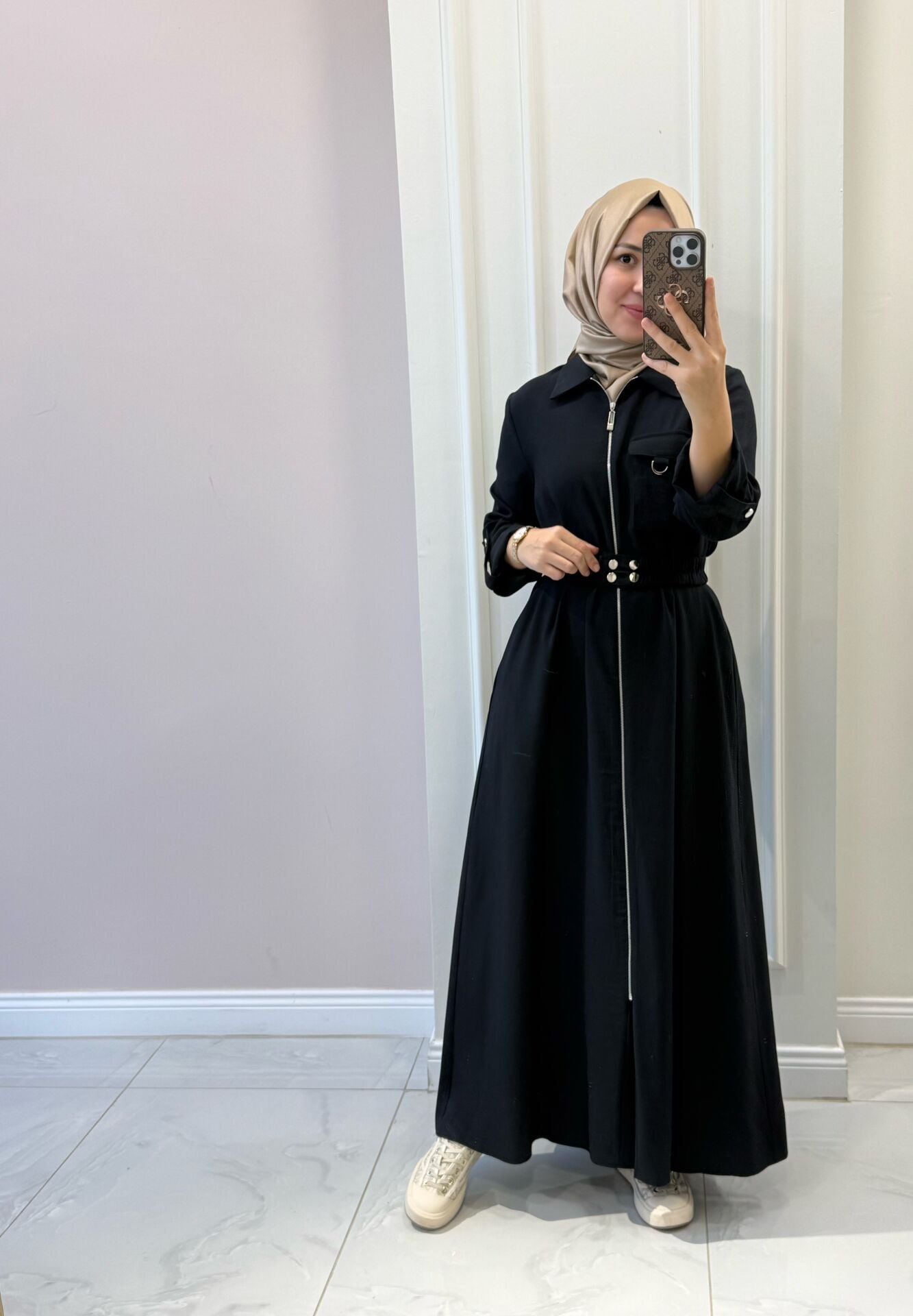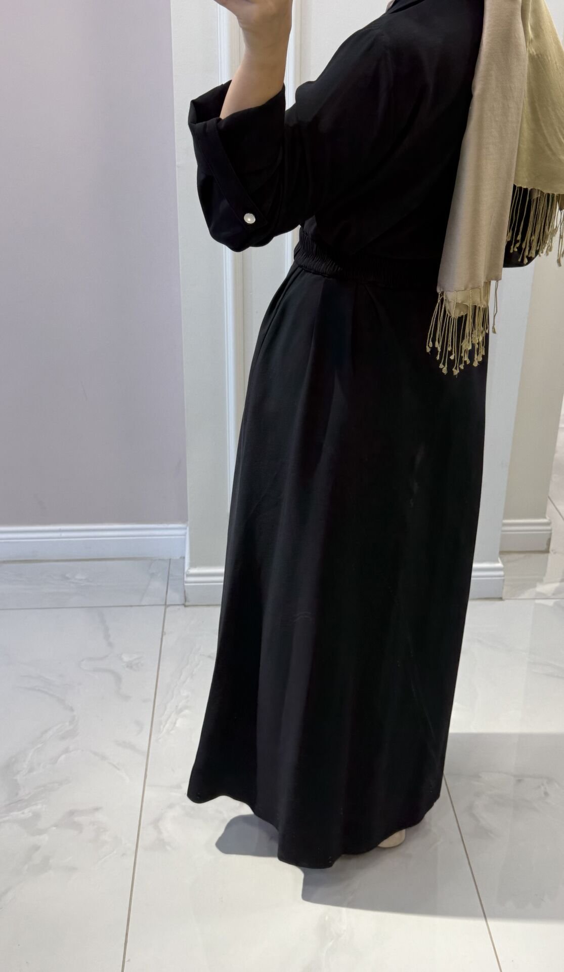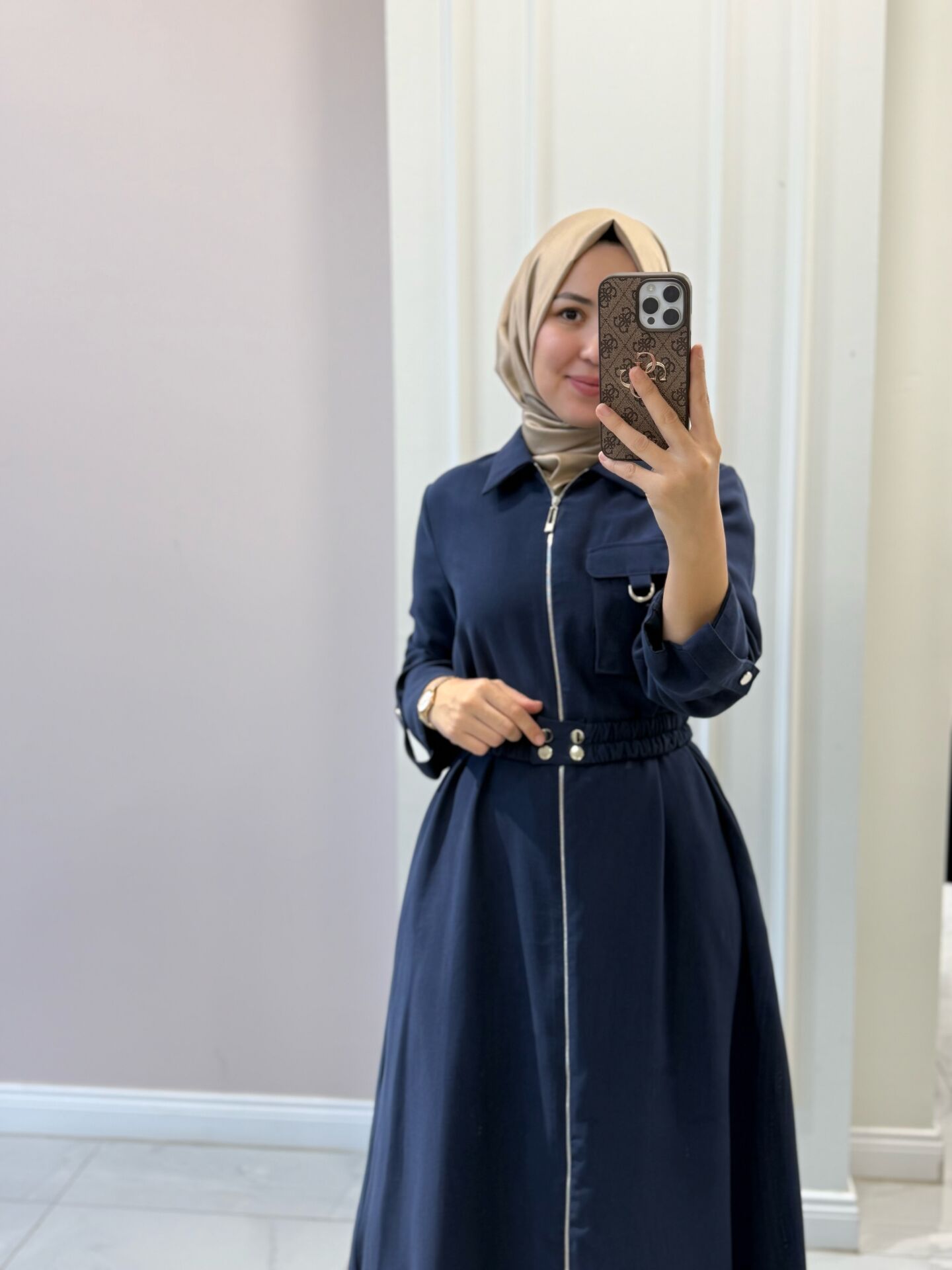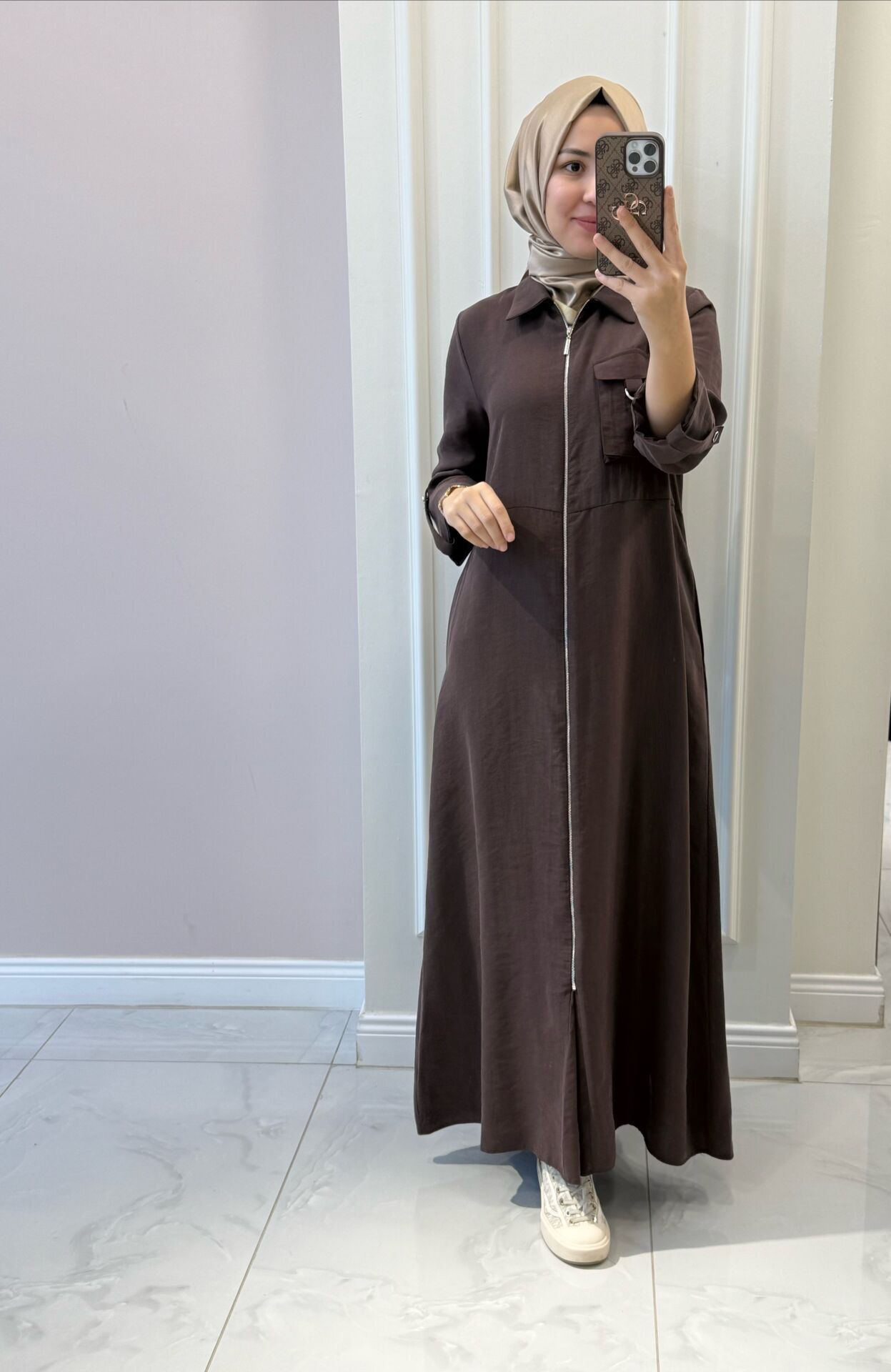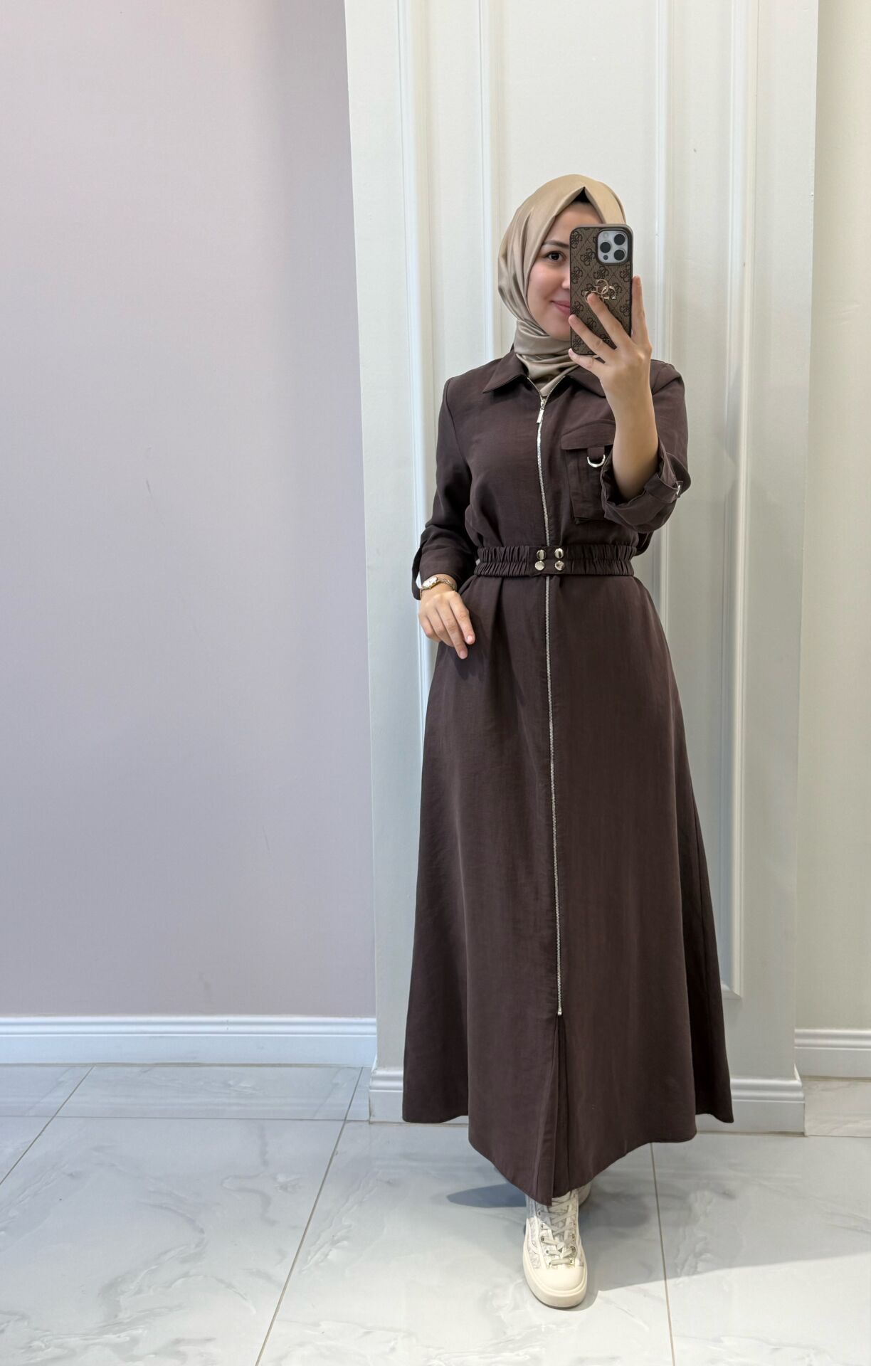 Elbisemiz tam kalıptır. Manken üzerindeki M bedendir.