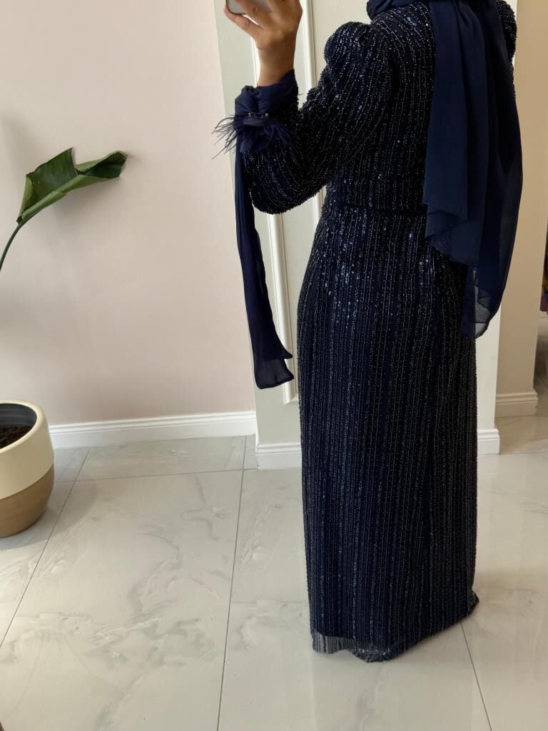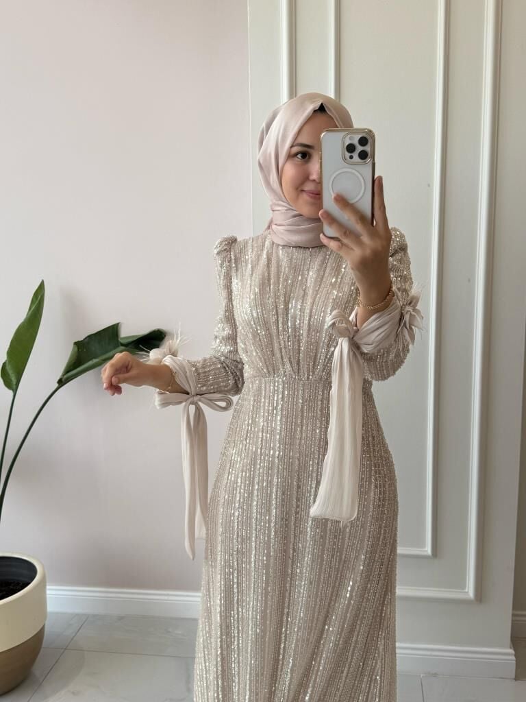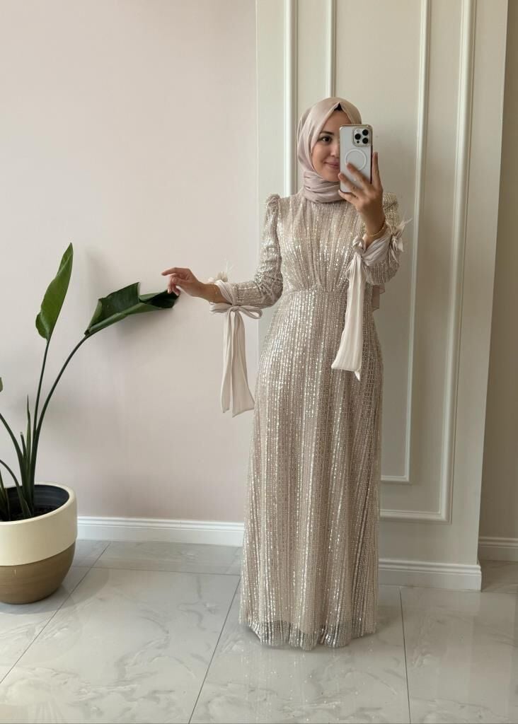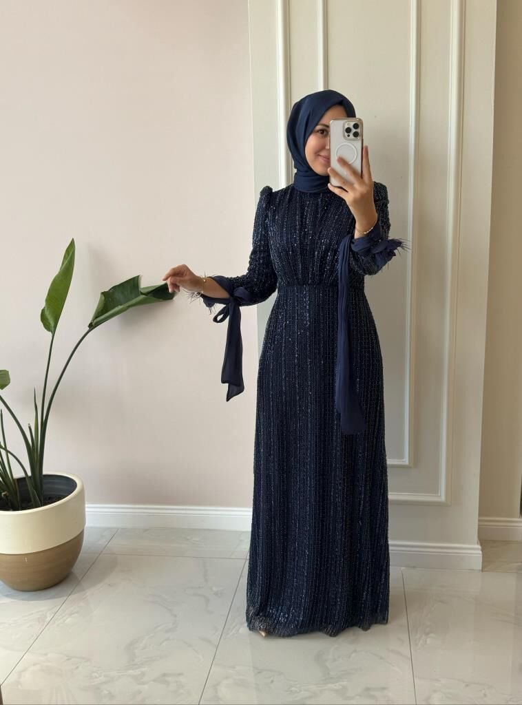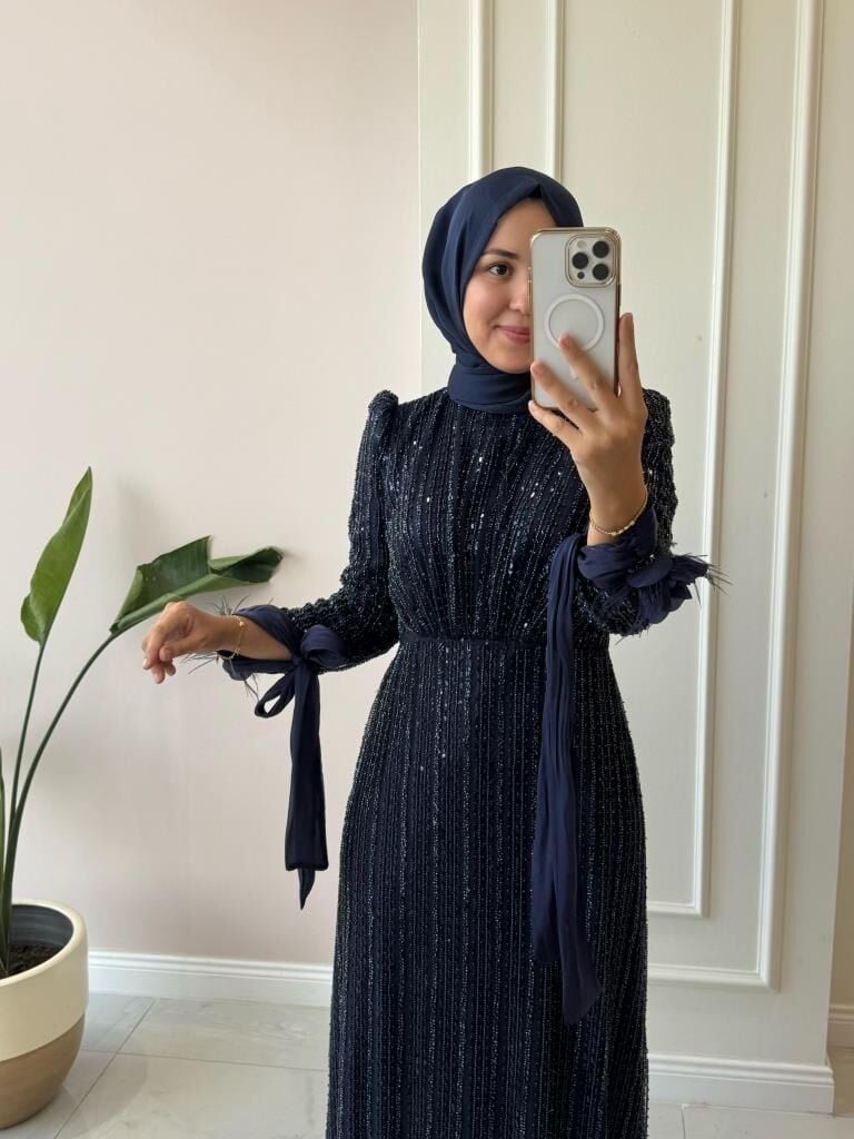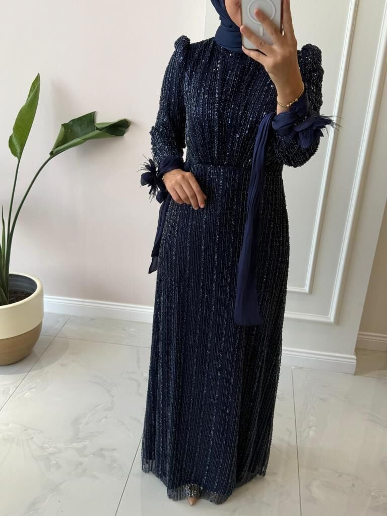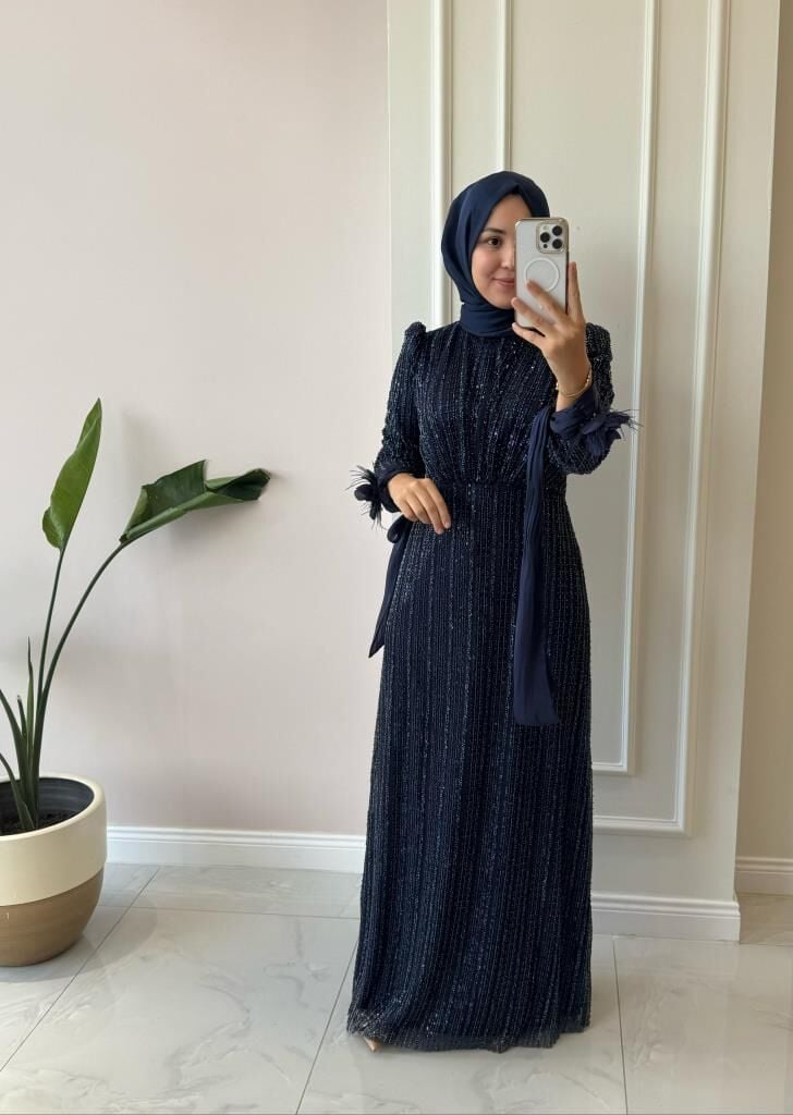 Ürünümüzün boncuk işlemeli tül kumaştır. İçi astarlıdır.