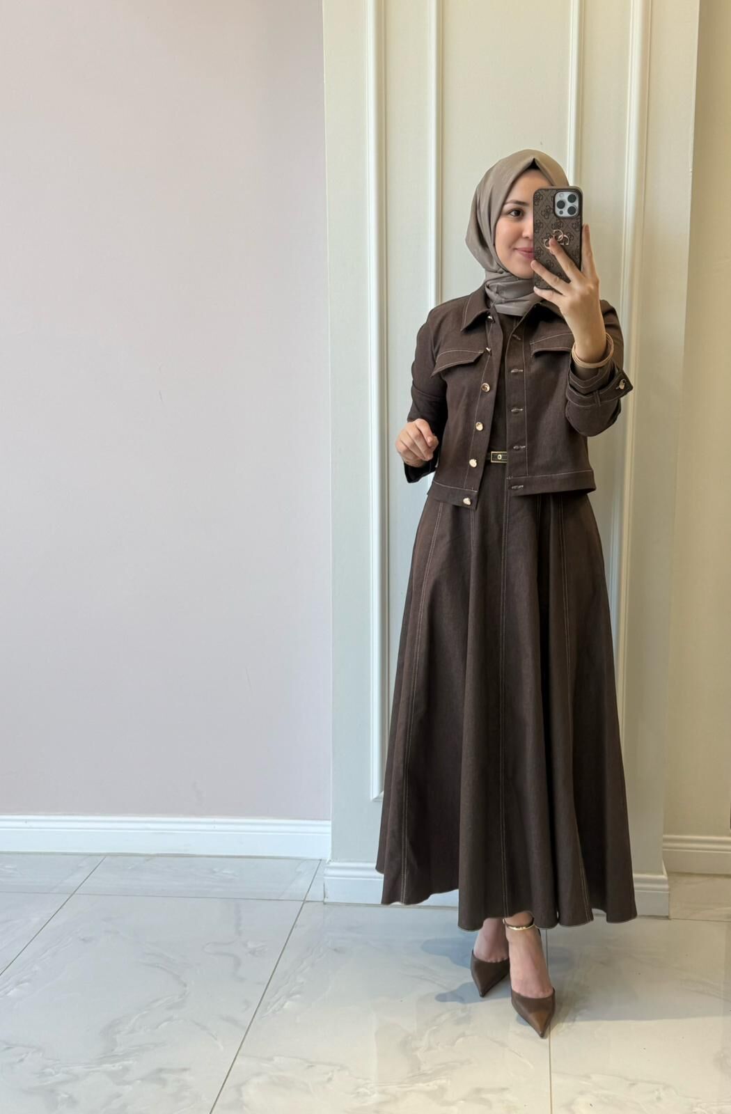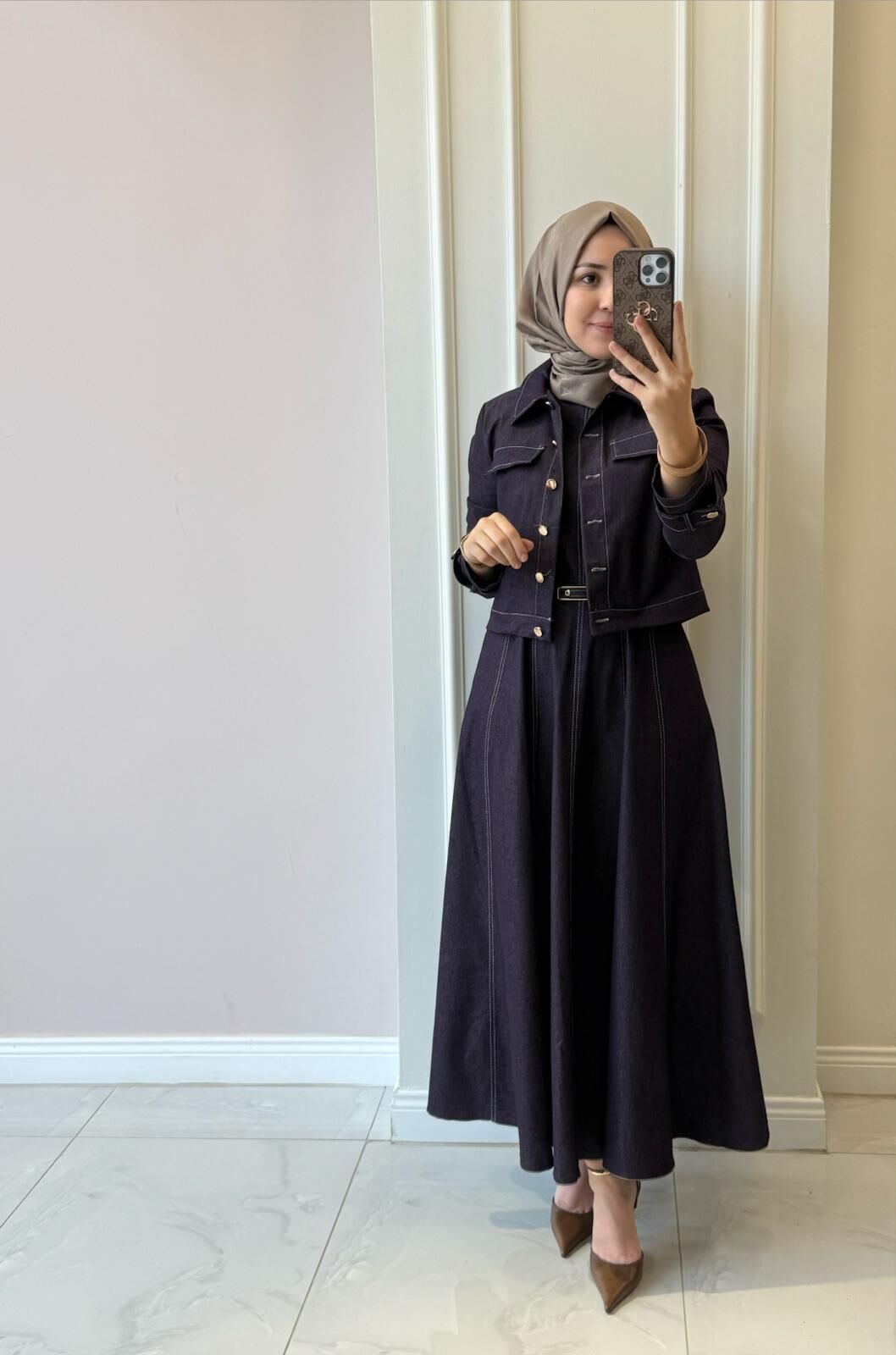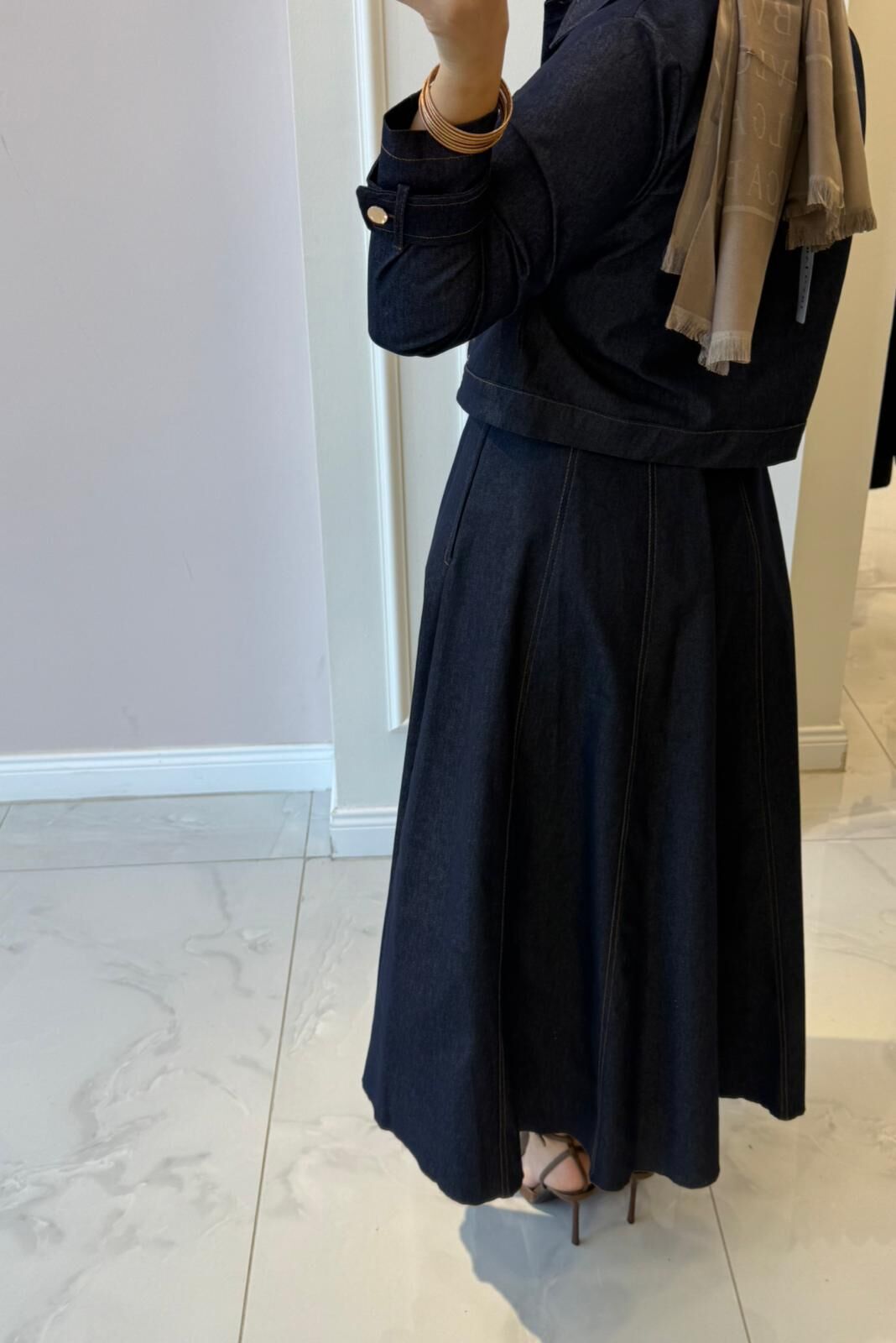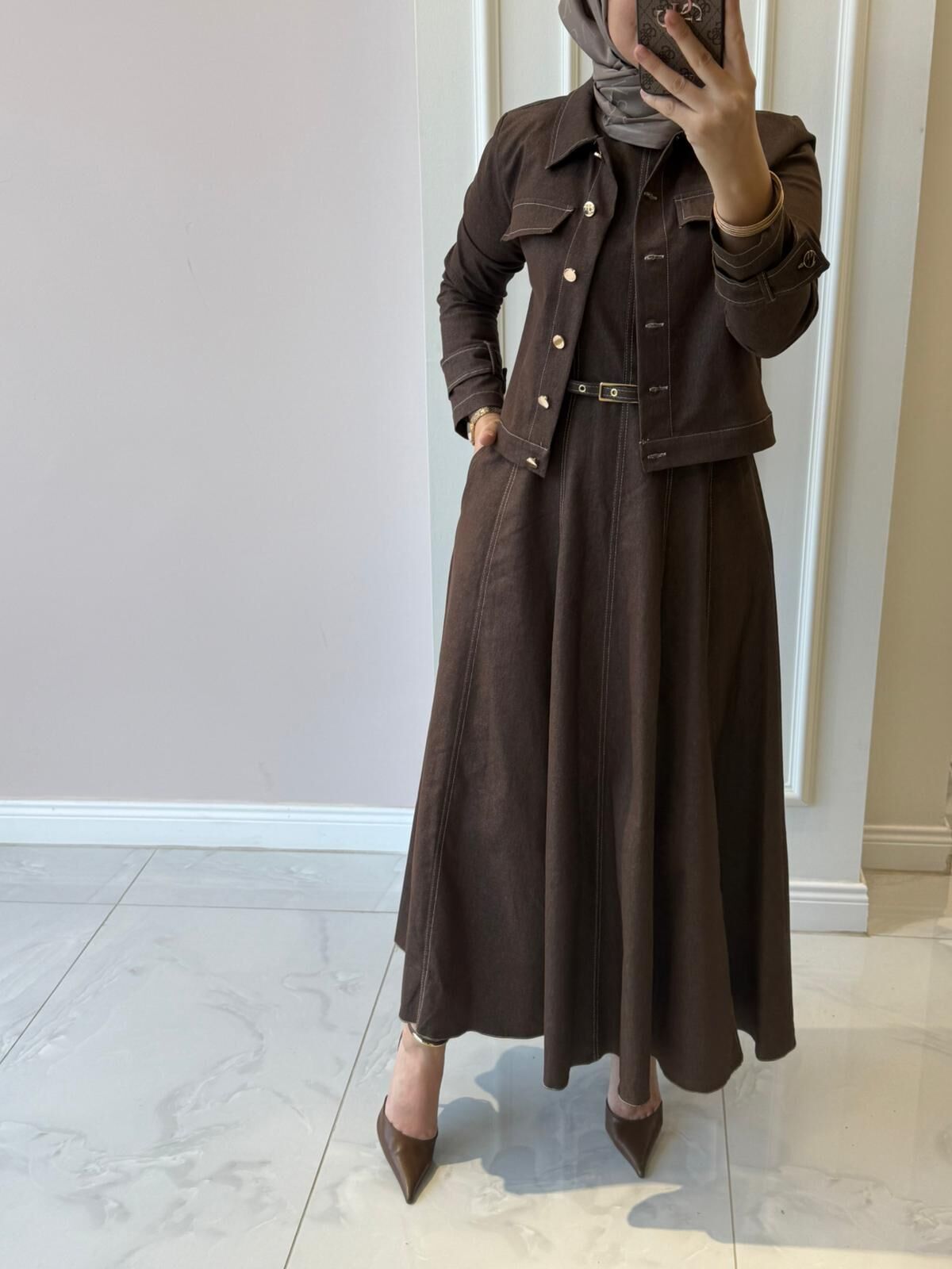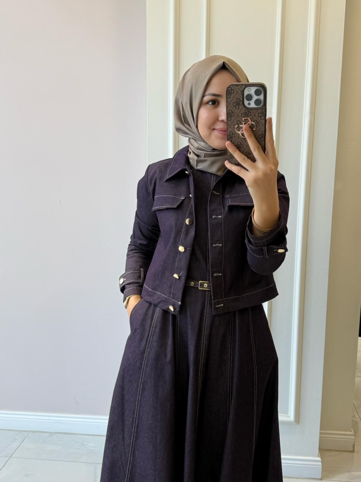 20751 Denim Ceketli Elbise Takım