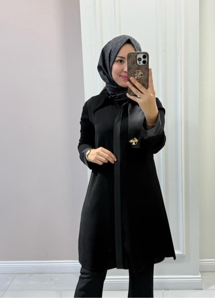 Tunik kumaşı deri ve krep birleşim kumaştır.