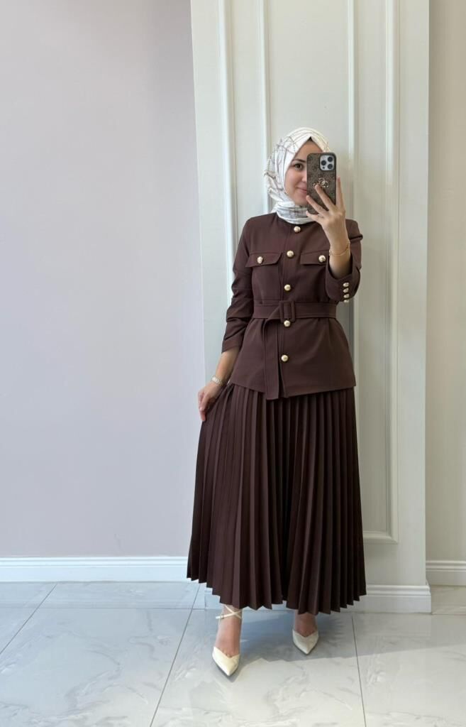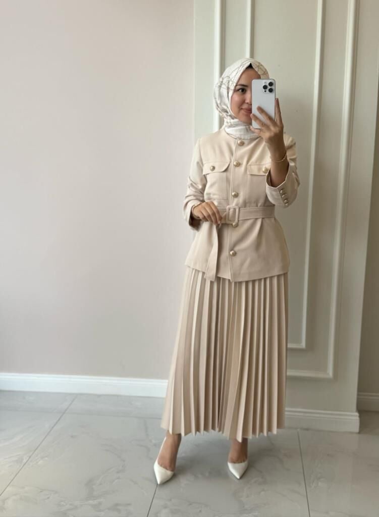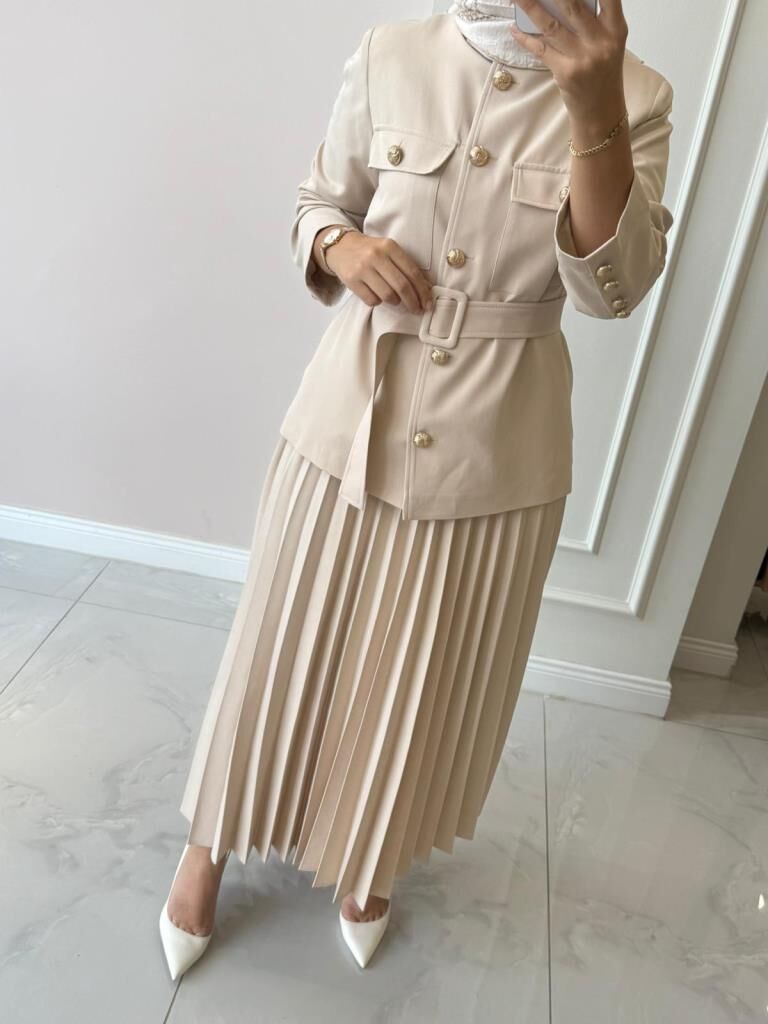 Ceketin içi astarlıdır. Etek beli lastiklidir.