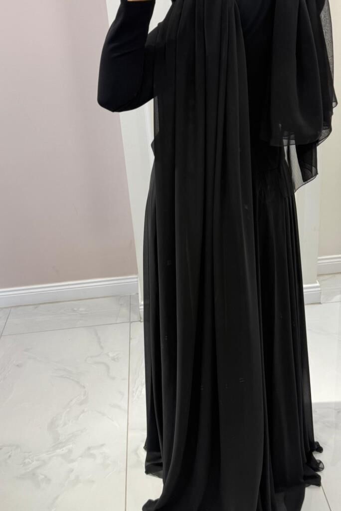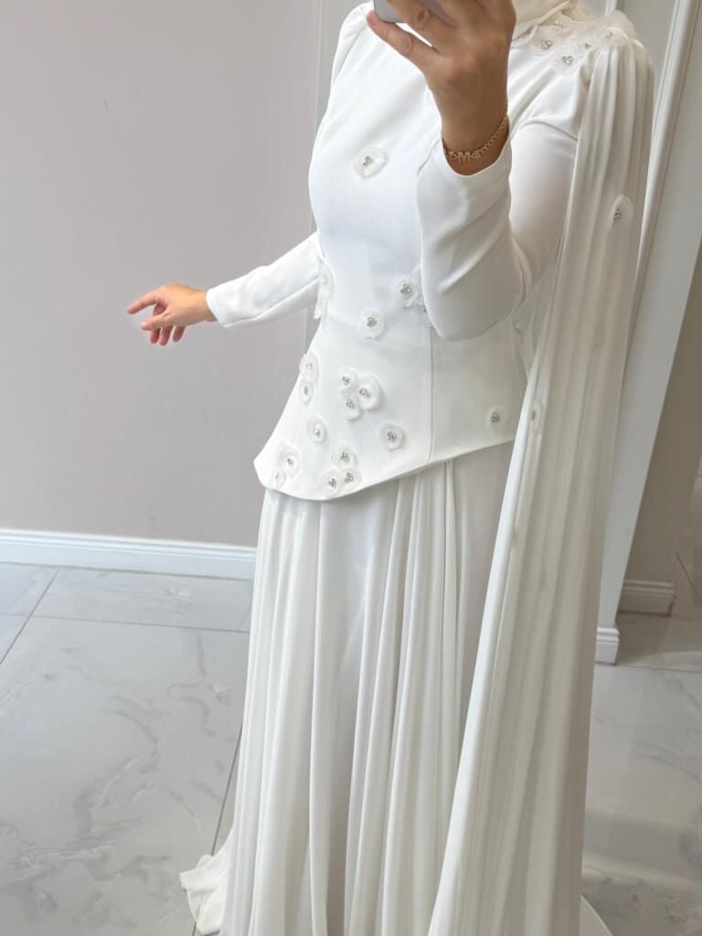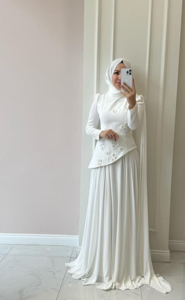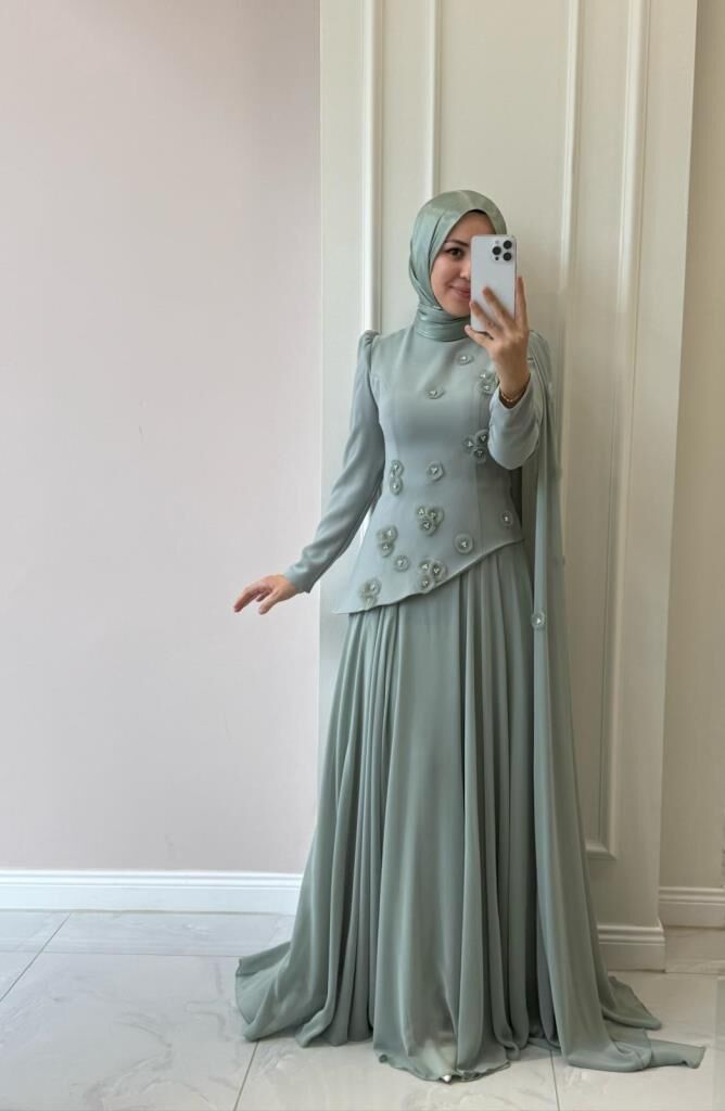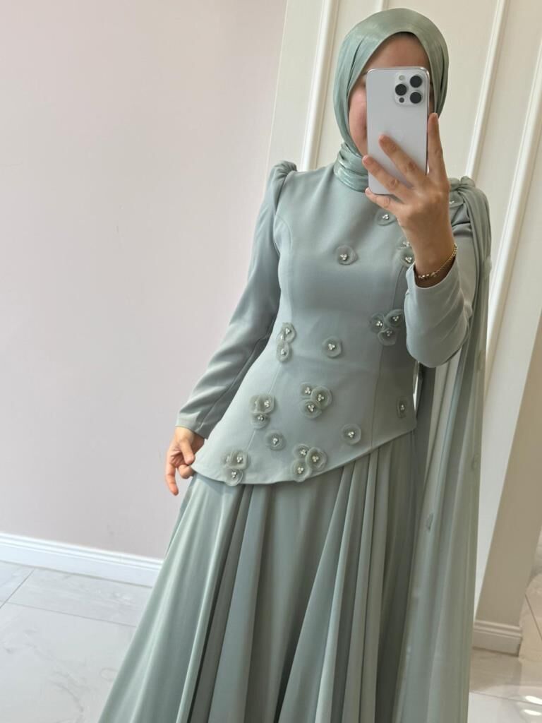 Ürünümüzün üst kısmı krep kumaş, etek kısmı içi astarlı şifon kumaştır.