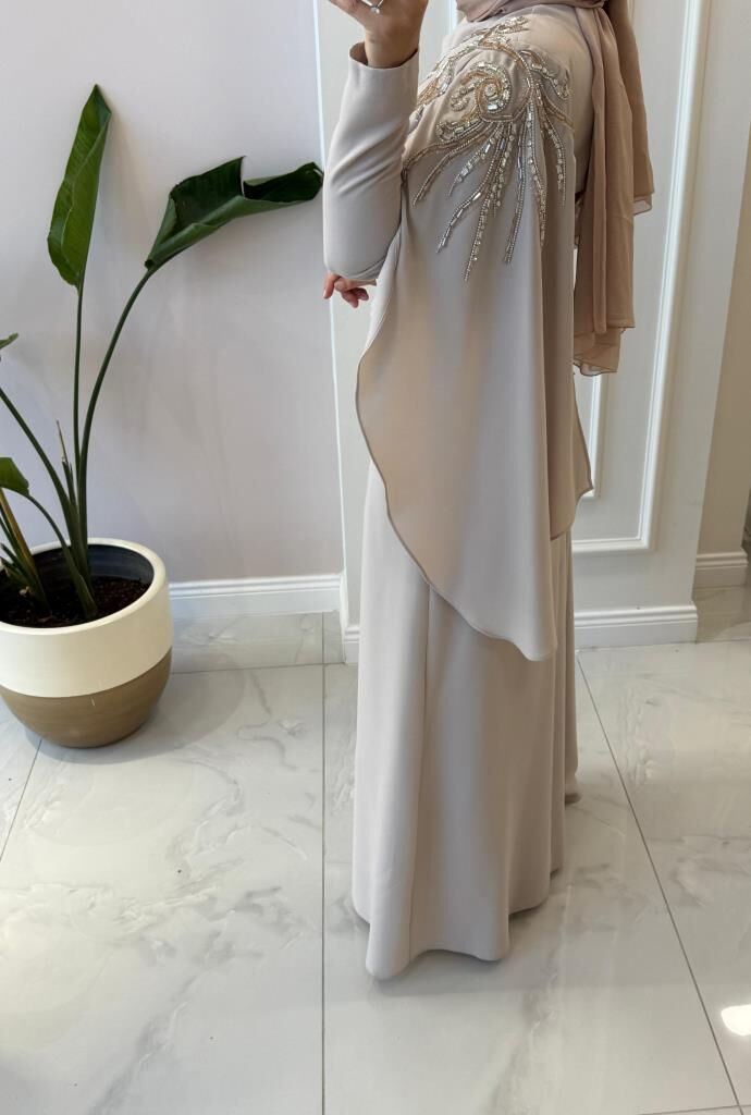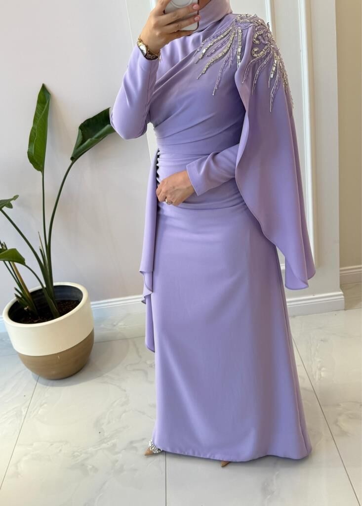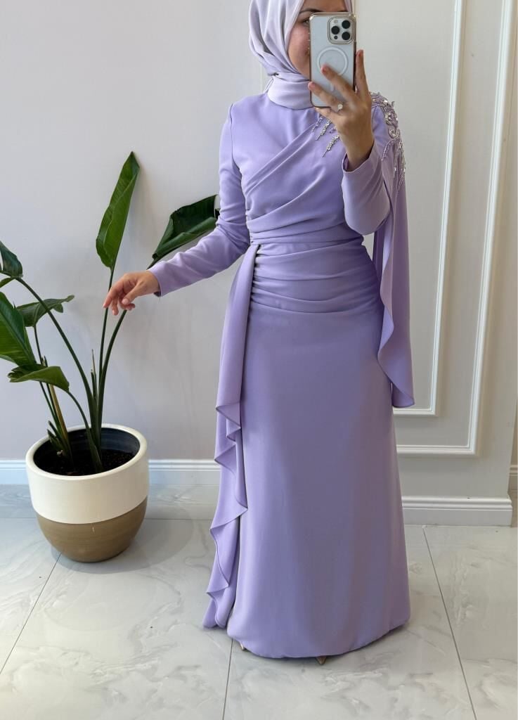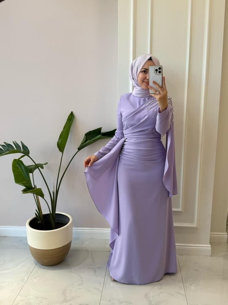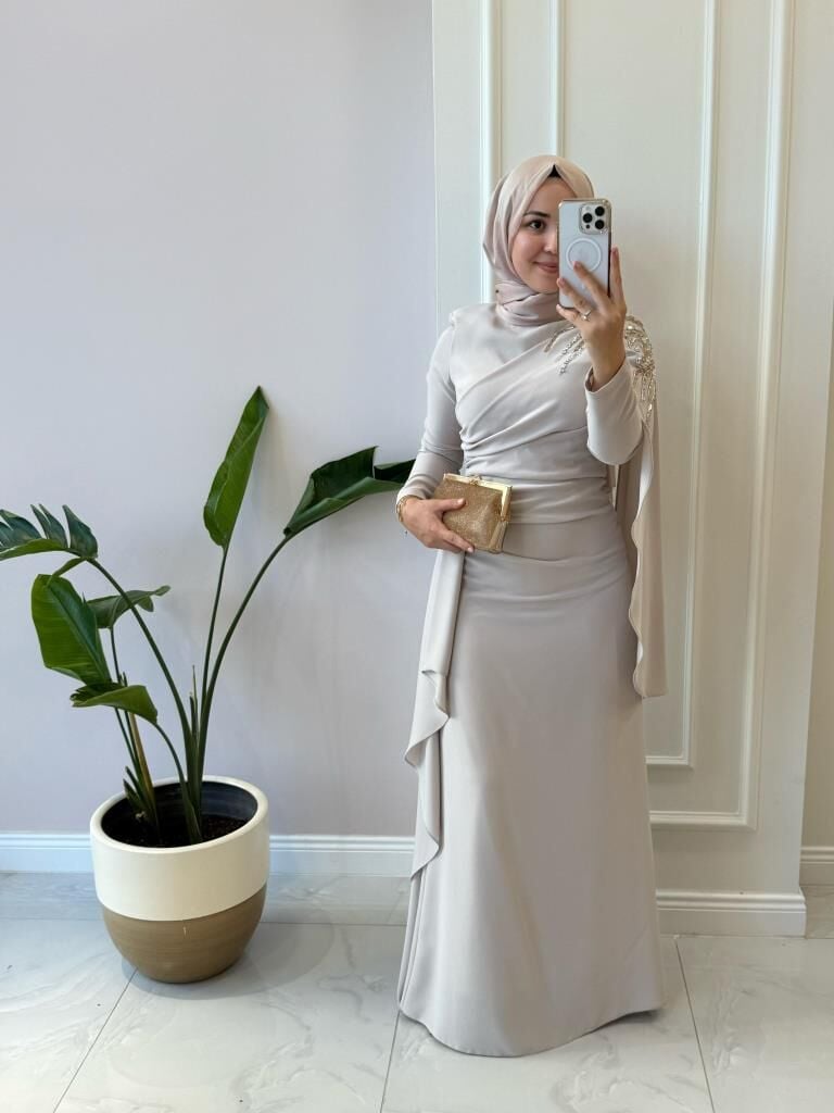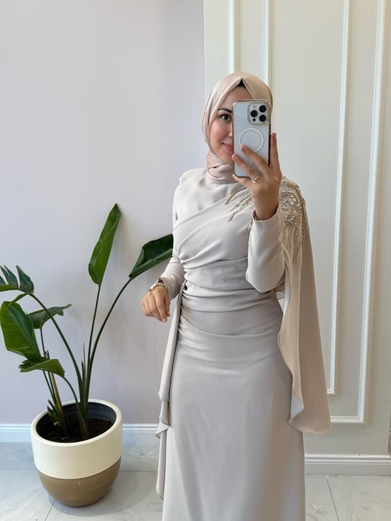 Kadın 4873 Omuzu Detaylı Krep Abiye