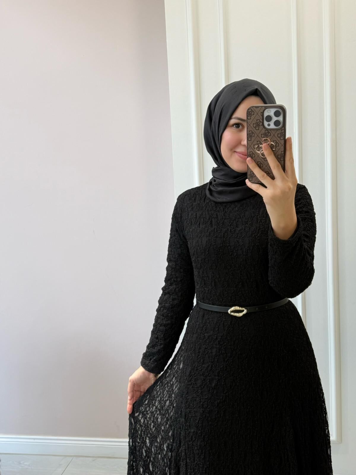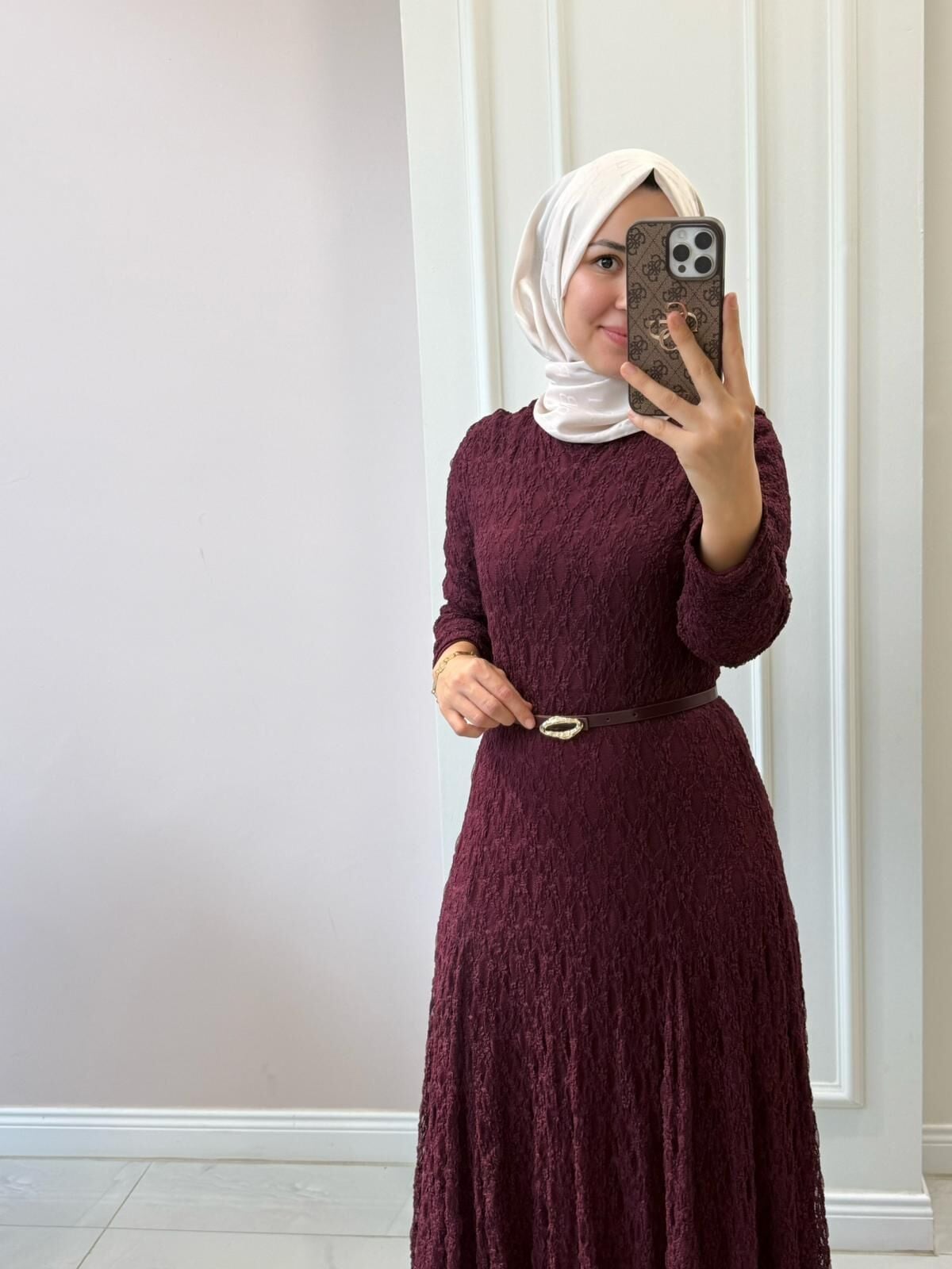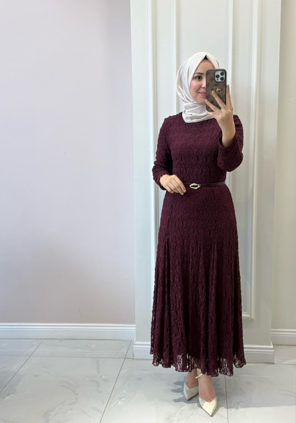 38/46 beden aralığında elbisemiz tam kalıptır. Manken üzerindeki 38 bedendir.