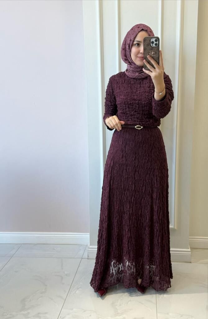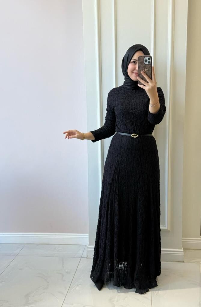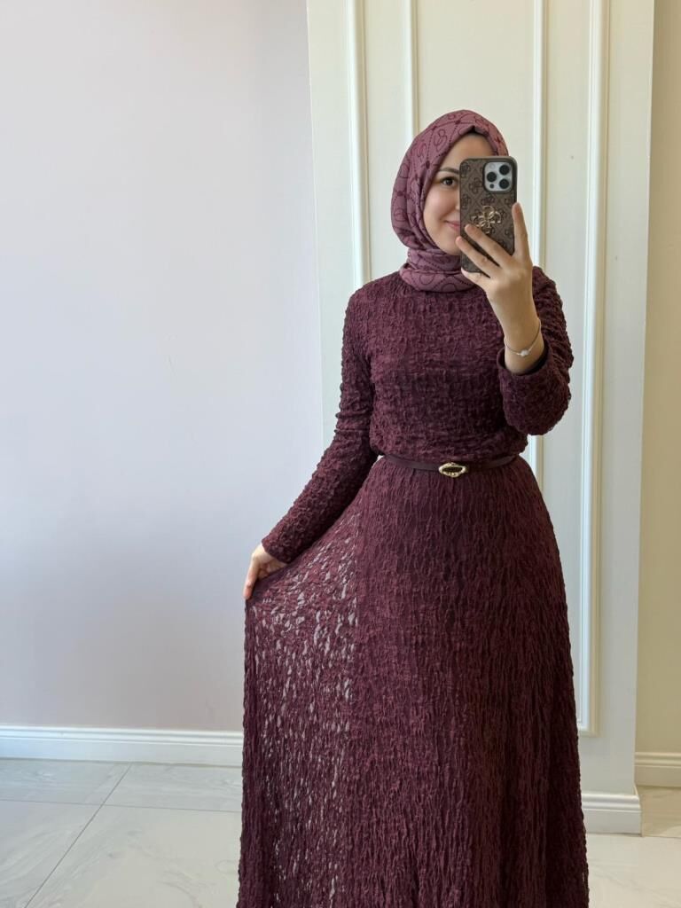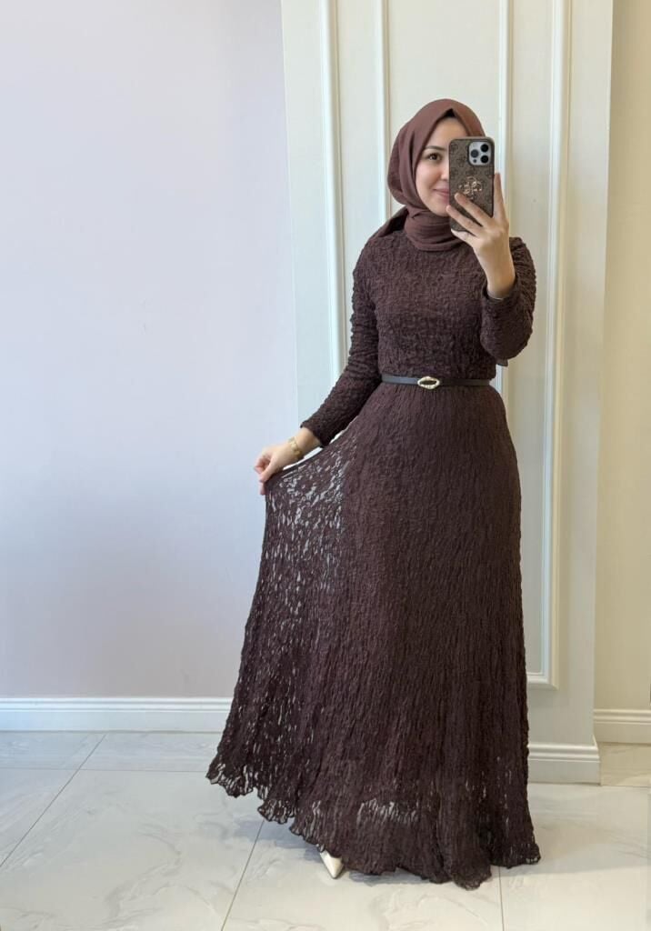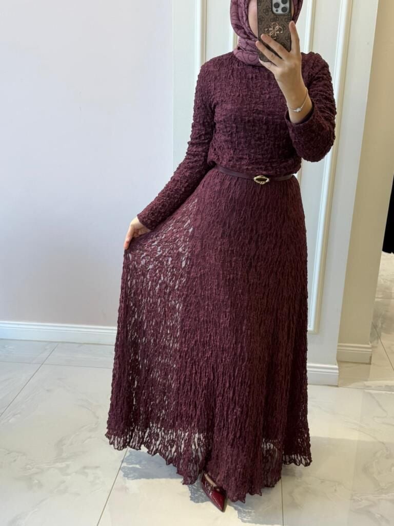 51246 Bürümcük Uzun Dantel Elbise