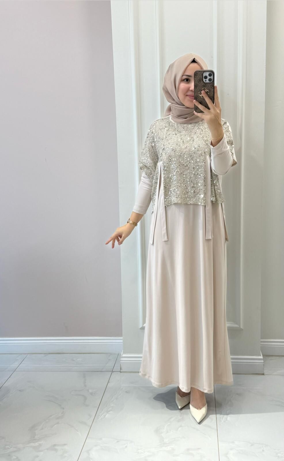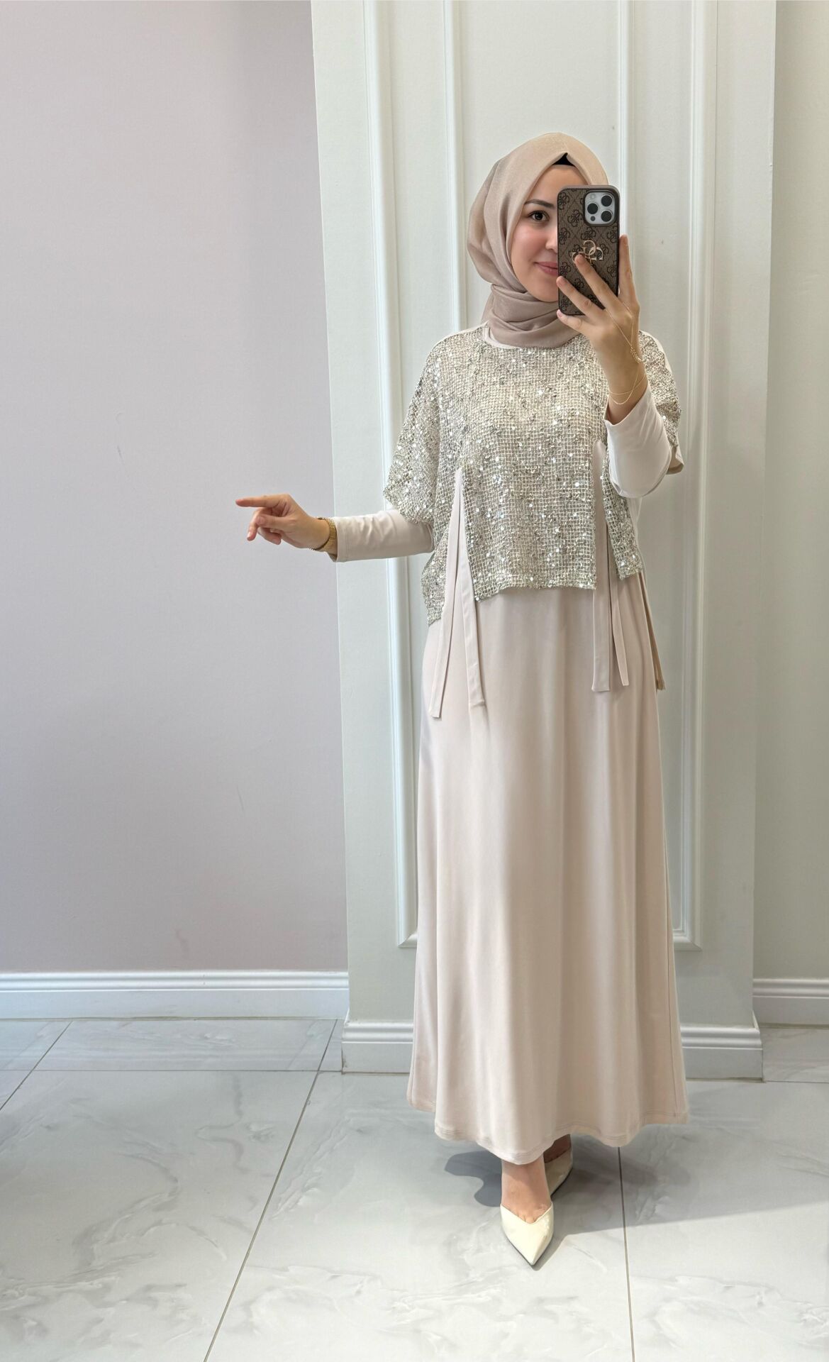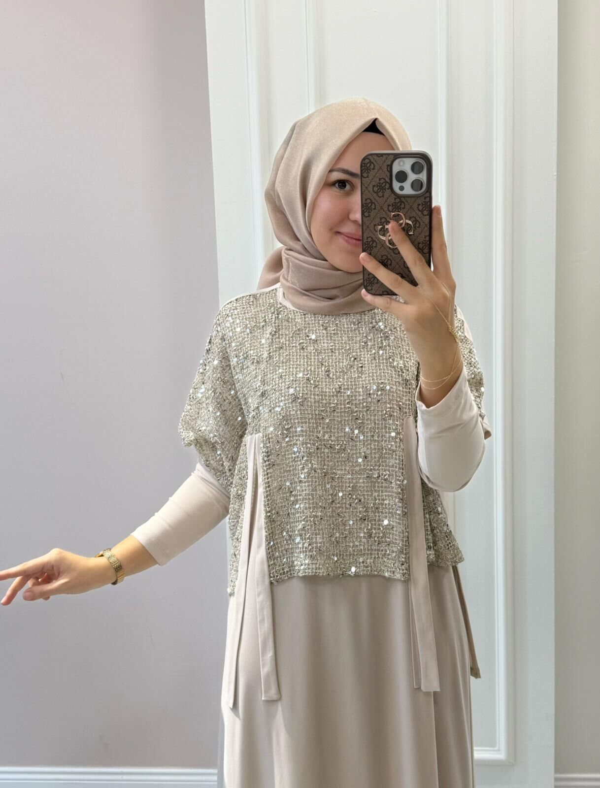 Hırkası pul payetli file kumaştır.