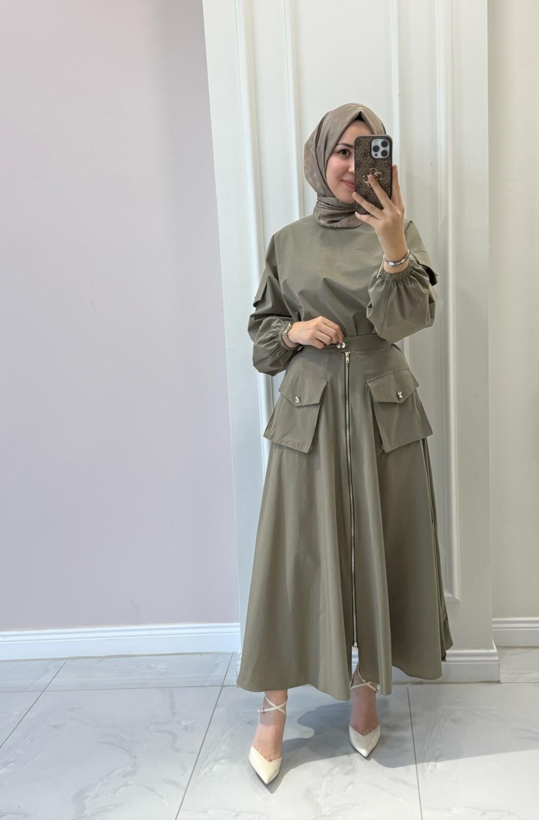 Mikro paraşüt kumaştır. (Tok duruşlu, sportif ve kırışmaya dayanıklıdır)