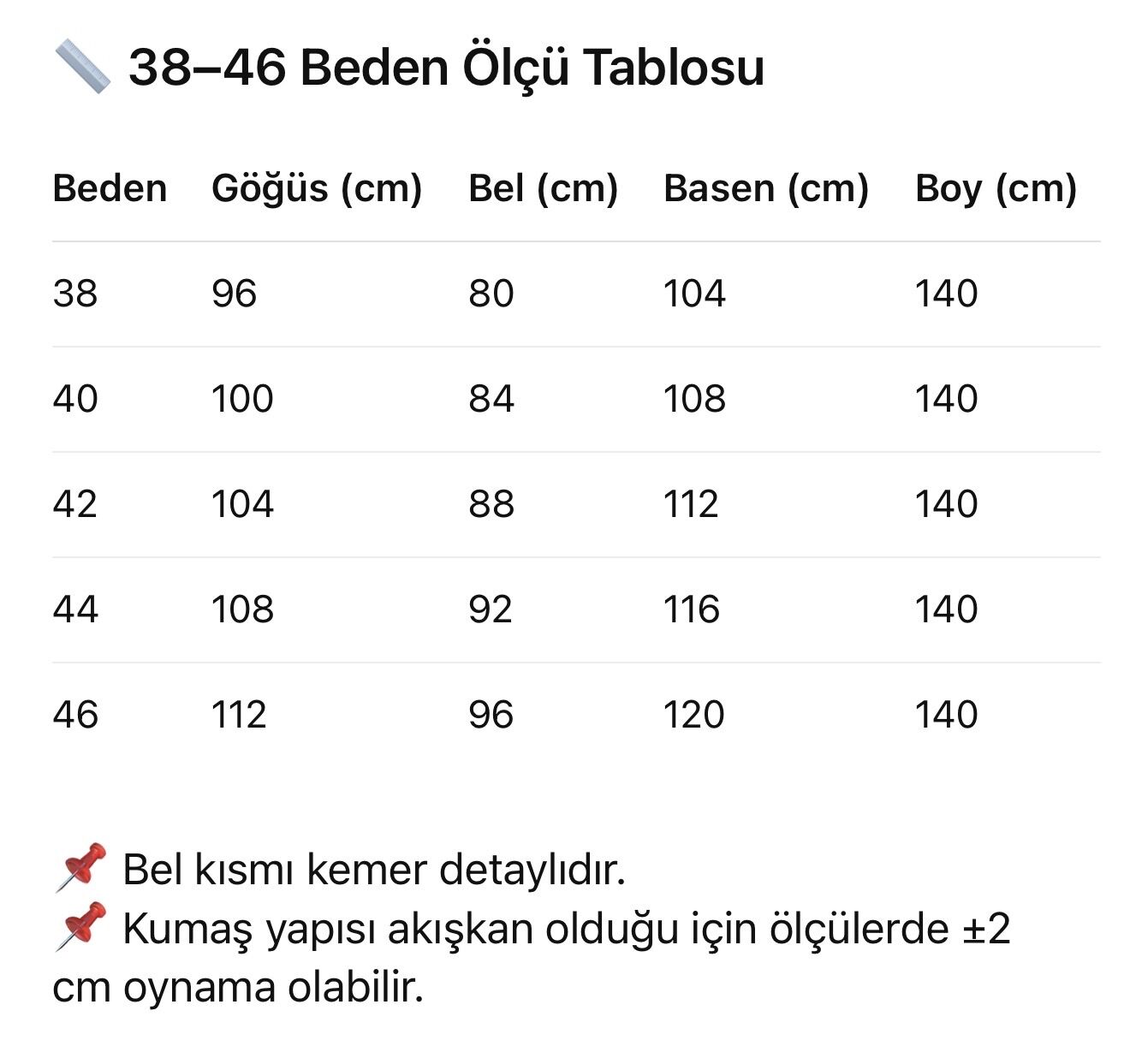 Elbisemiz tam kalıptır. Manken üzerindeki 38 bedendir.