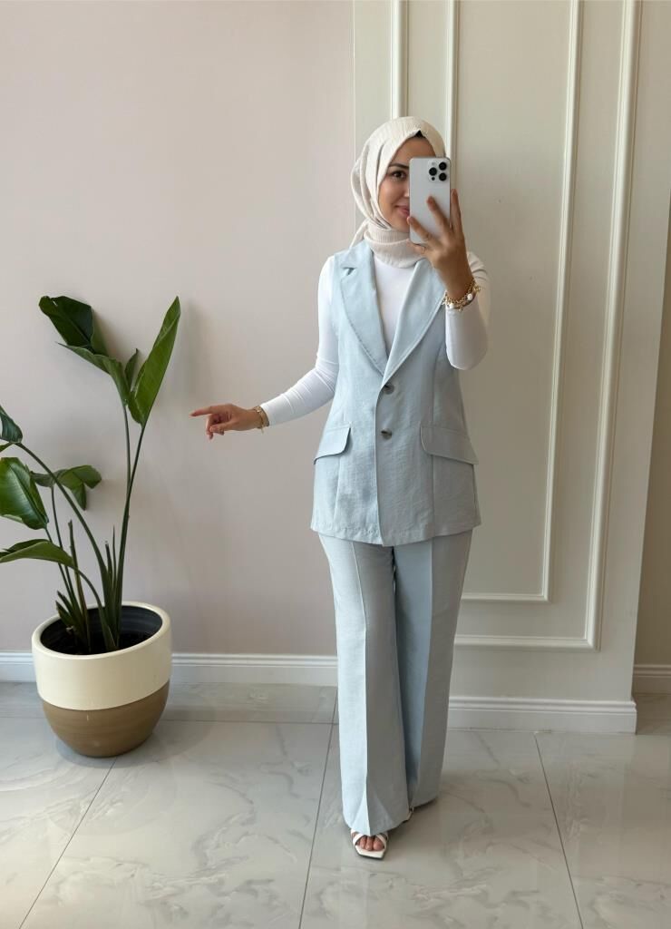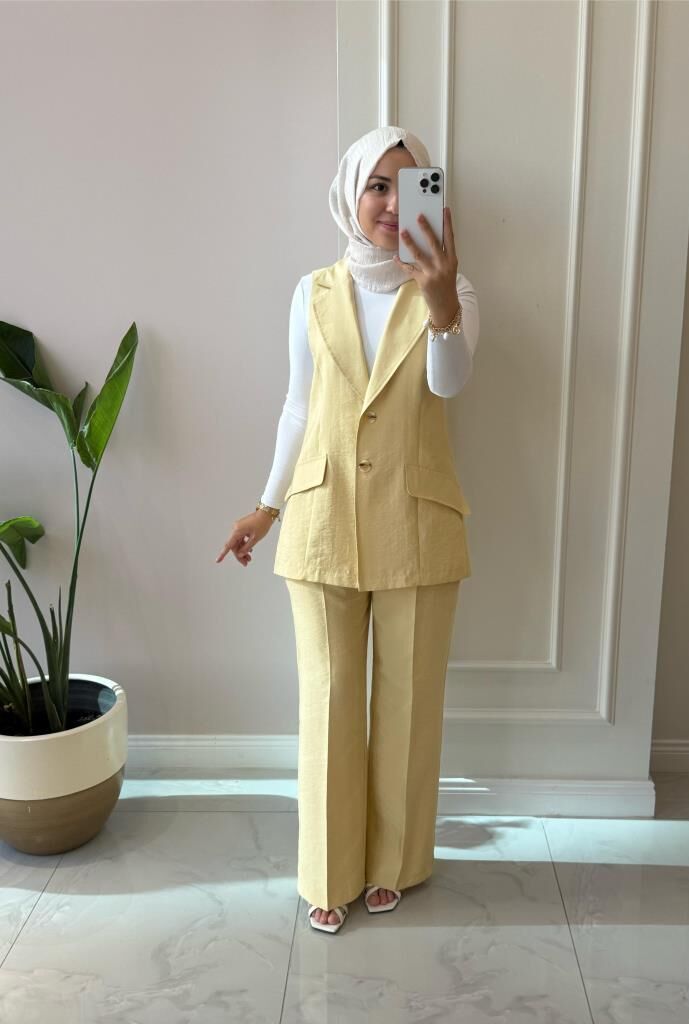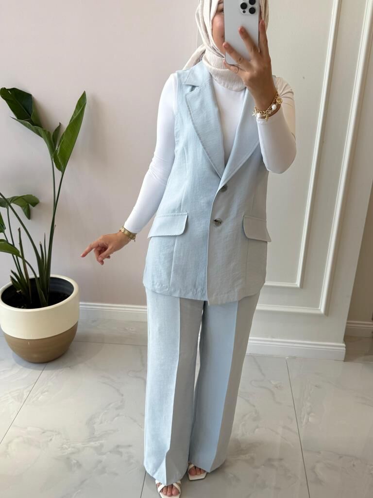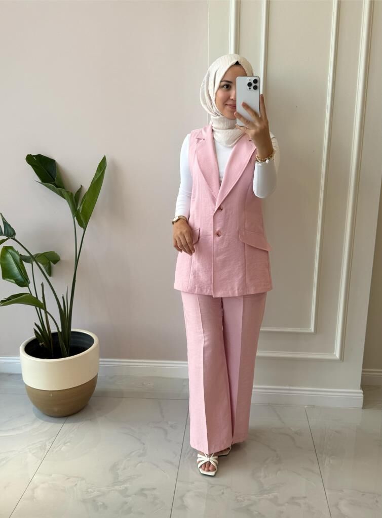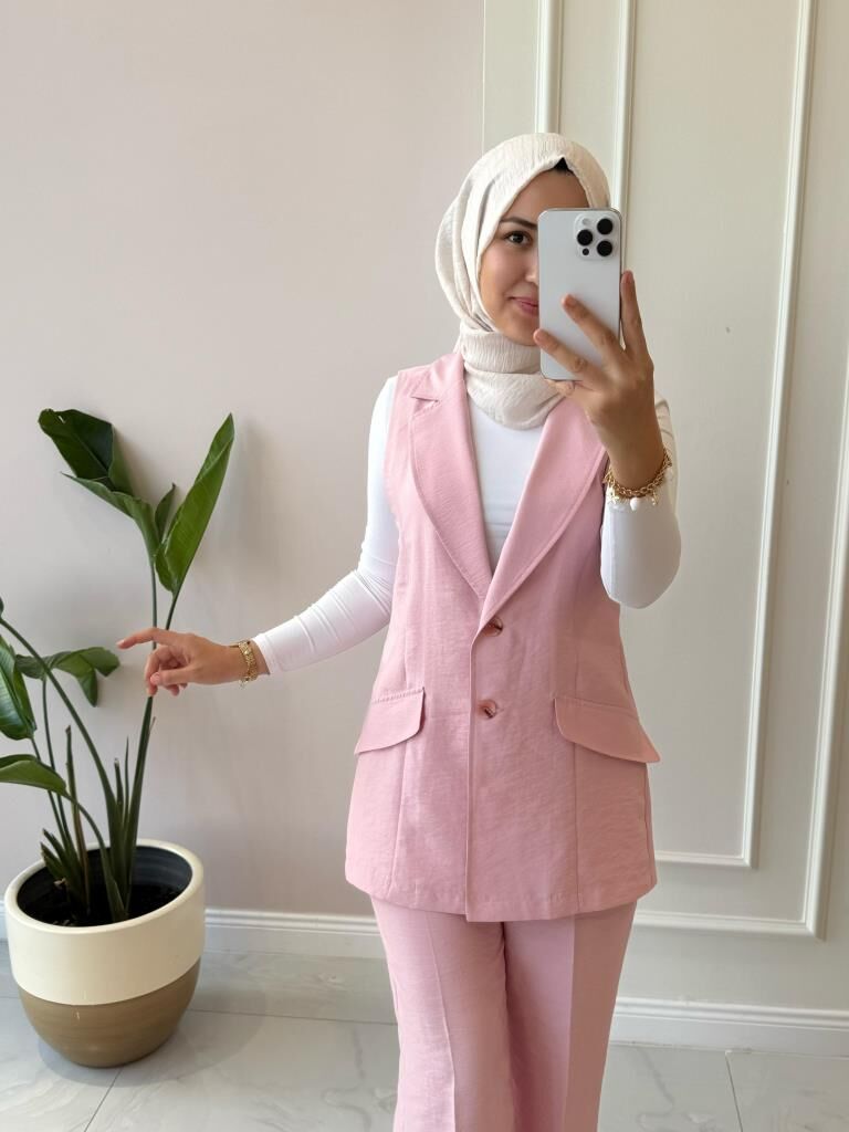 Kadın 8546 Yelekli Pantolonlu Takım