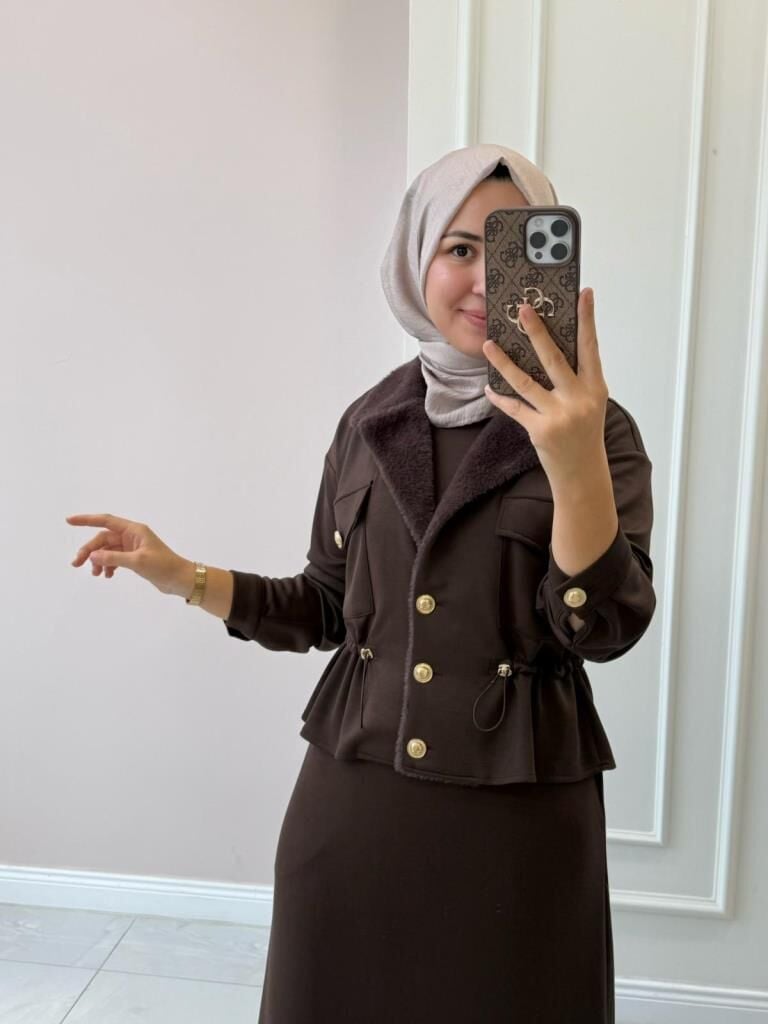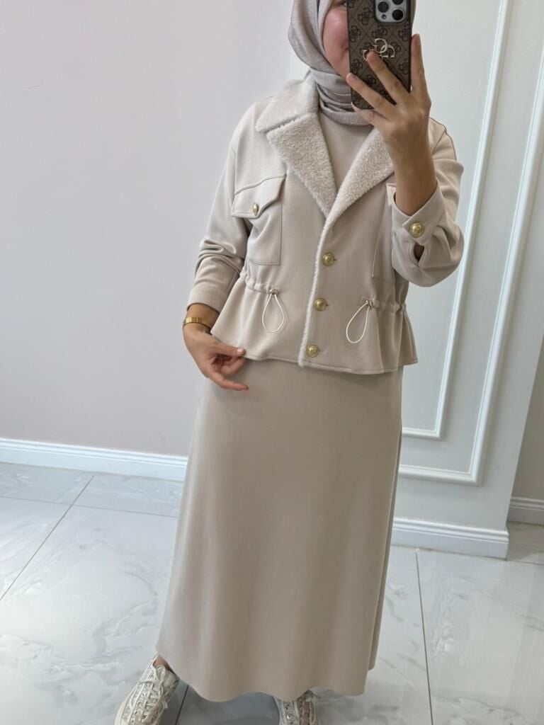 Kadın Jupe 7262 Kürk Detaylı Ceketli Takım