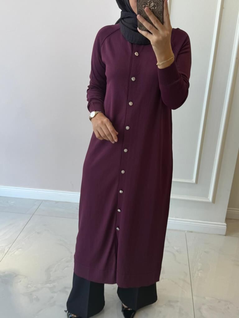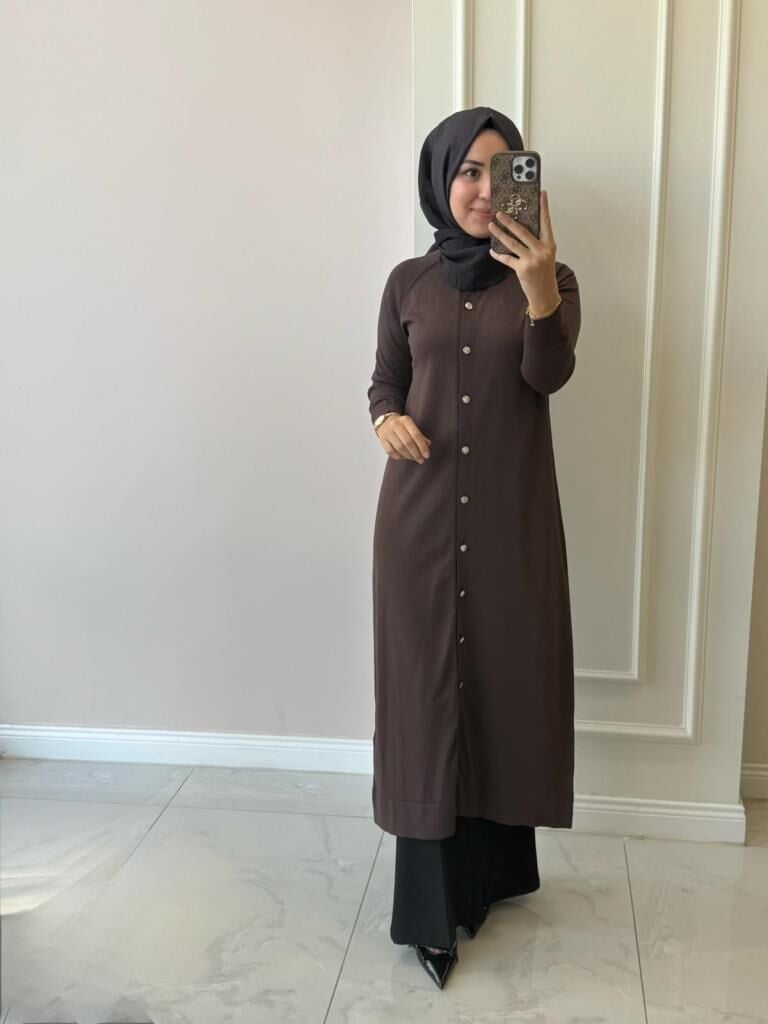 Kadın Nuss 512 Düz Düğmeli Triko Hırka